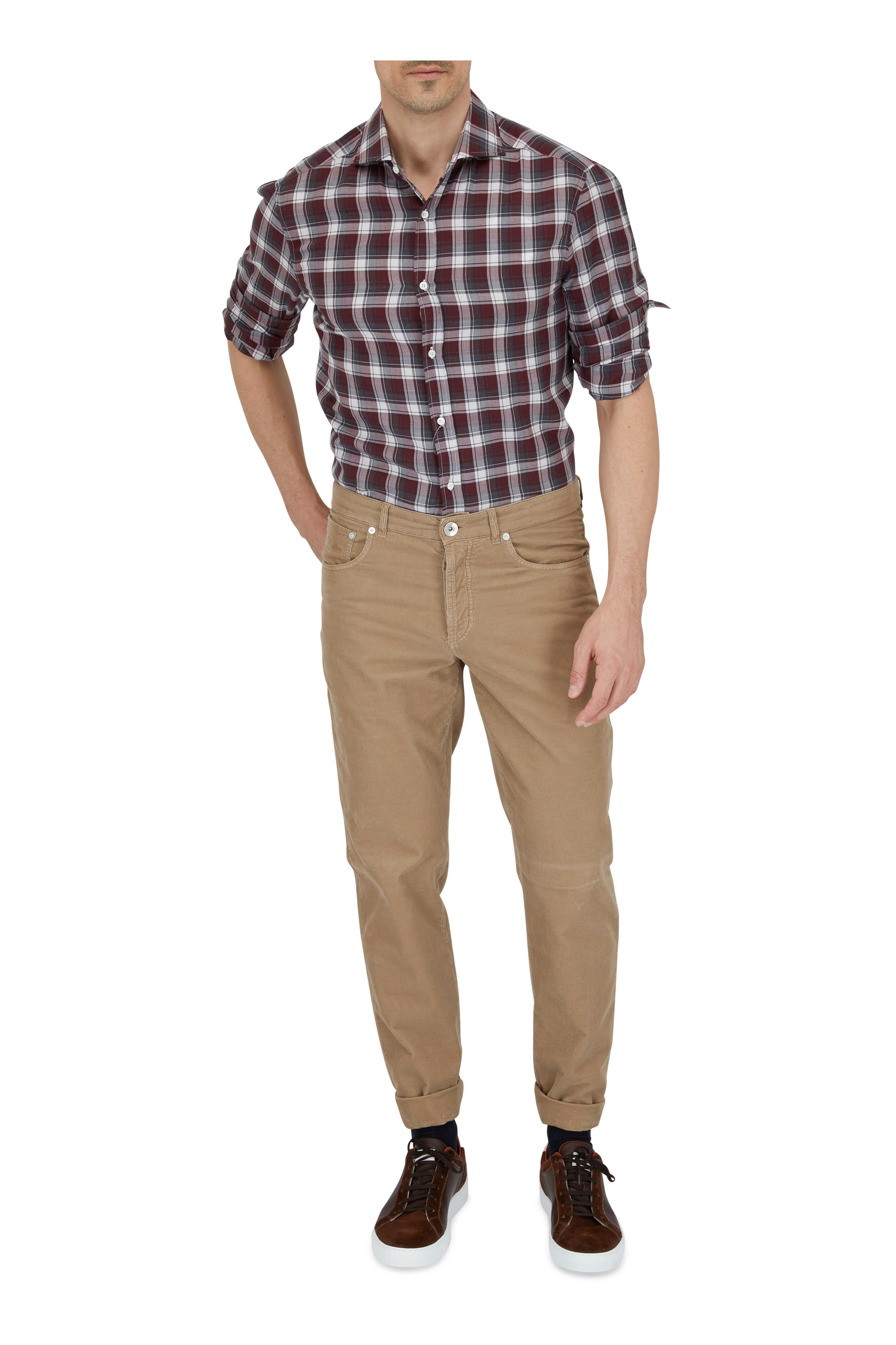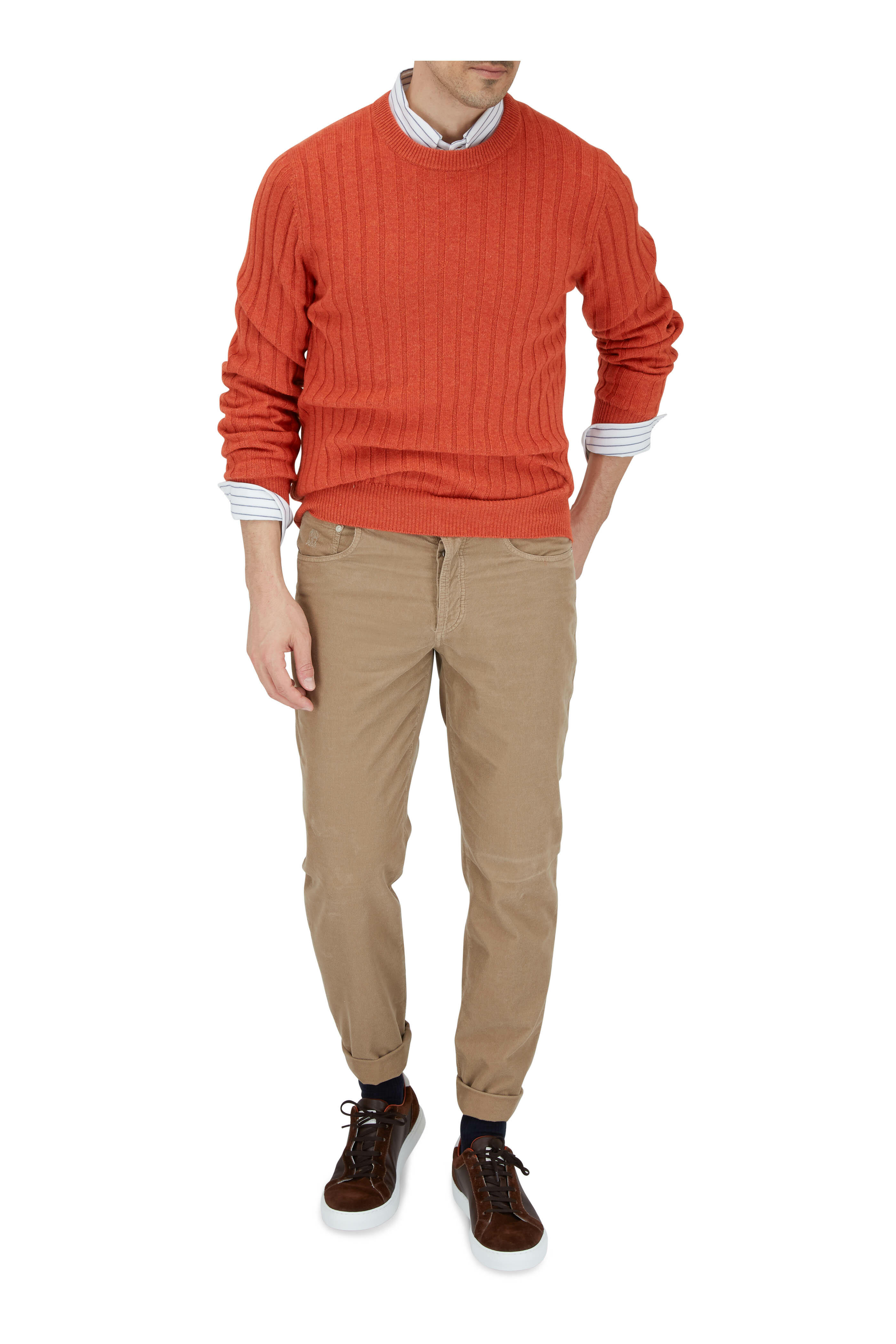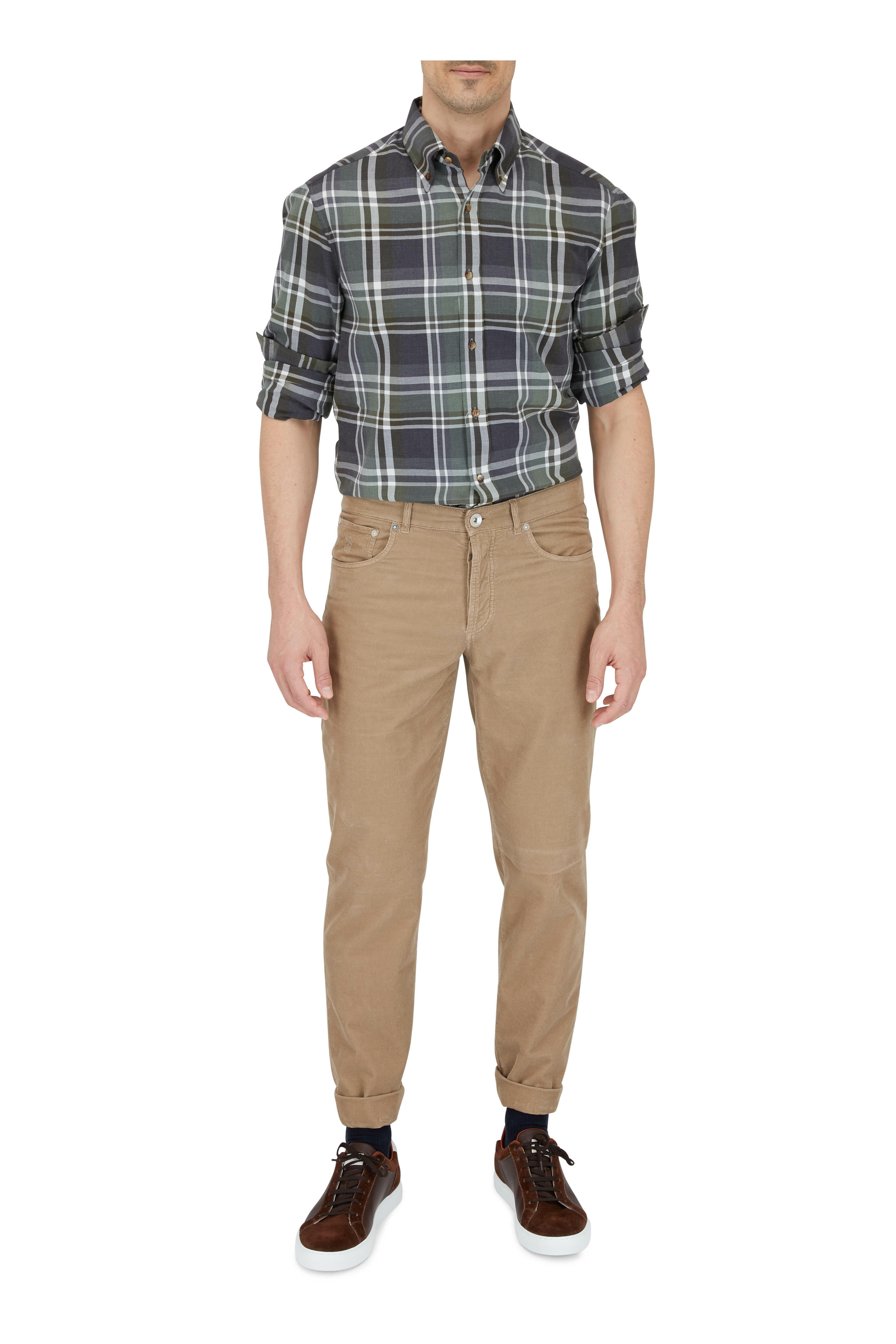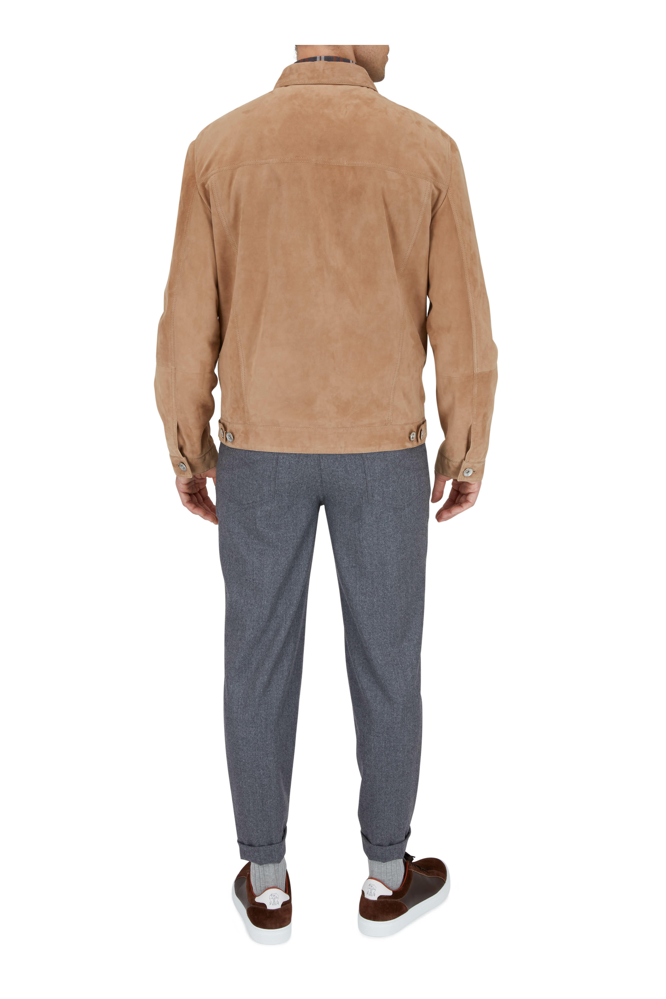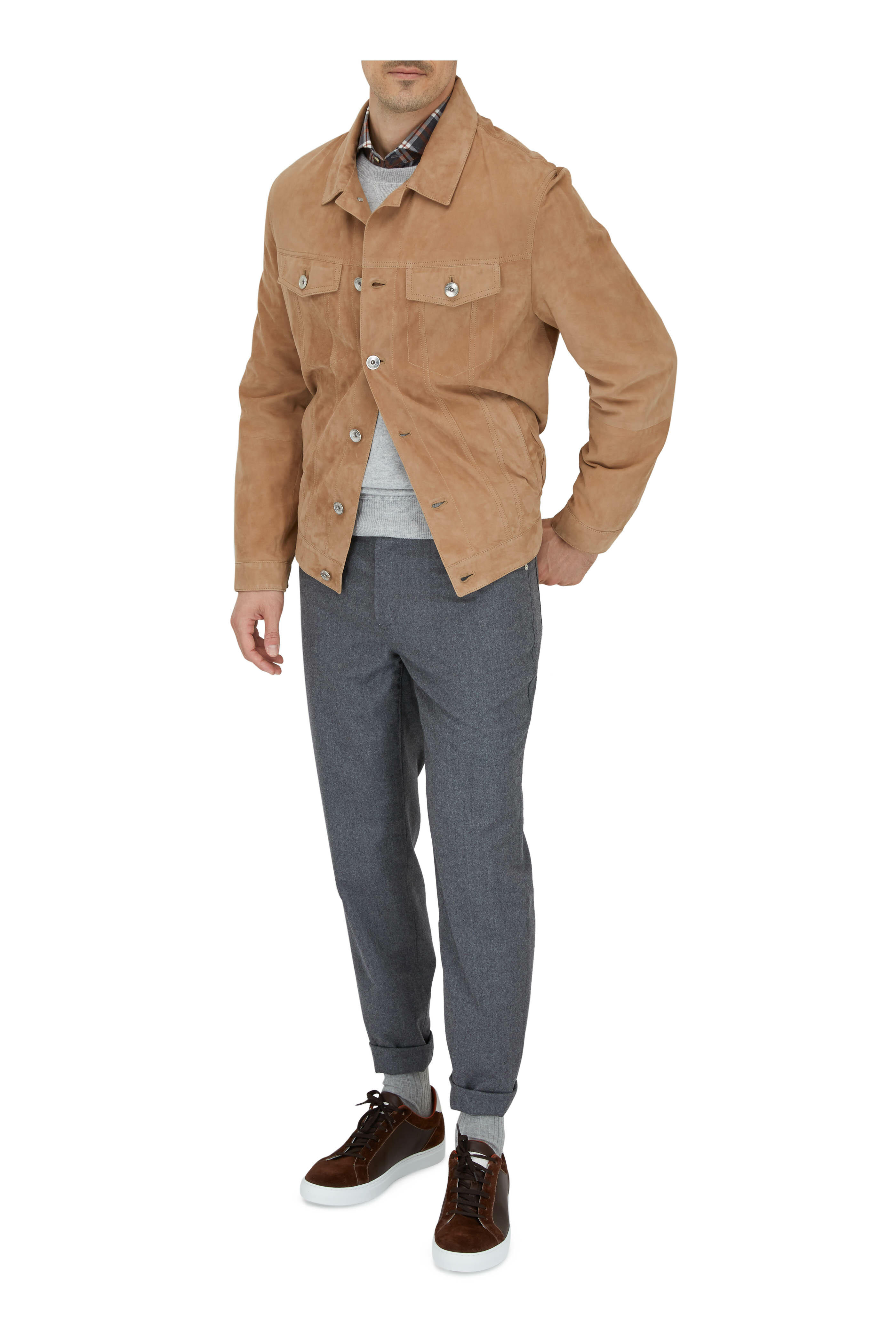 Suede and leather upper. Round toe. Lace up closure. Leather lining and insole. Rubber air sole. Made in Italy.