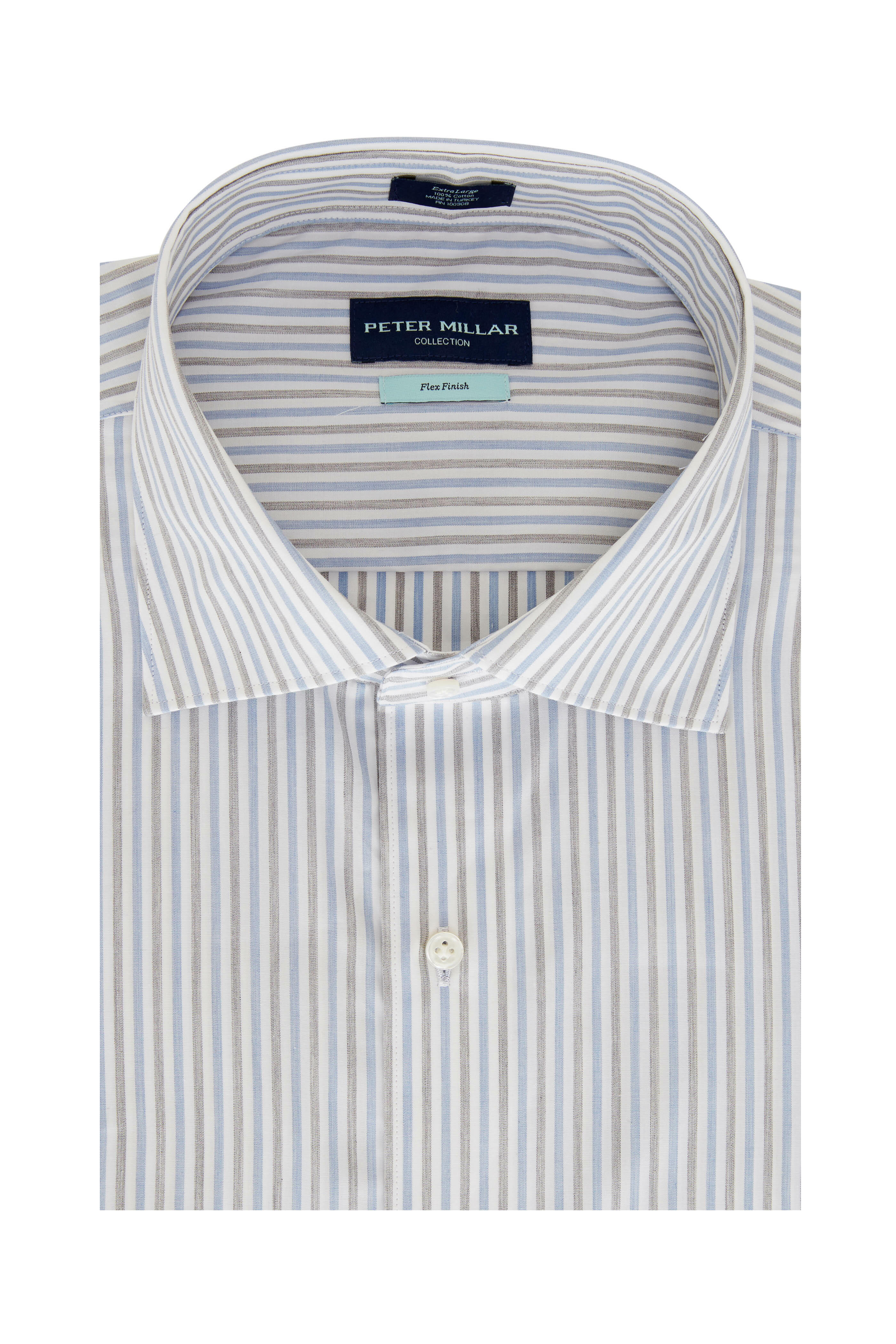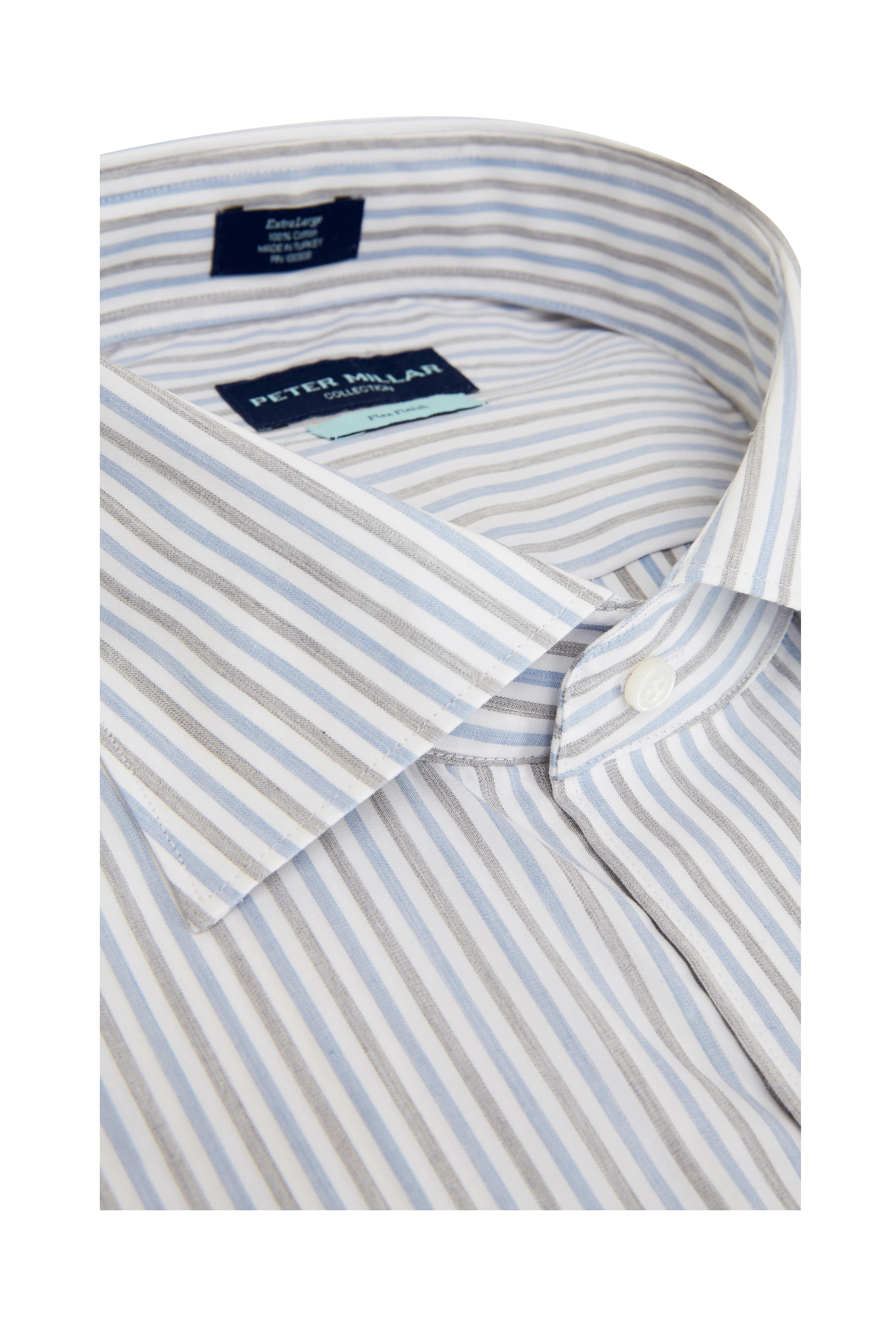 Spread collar. Single button mitered cuffs. Imported. 100% cotton. Machine wash.