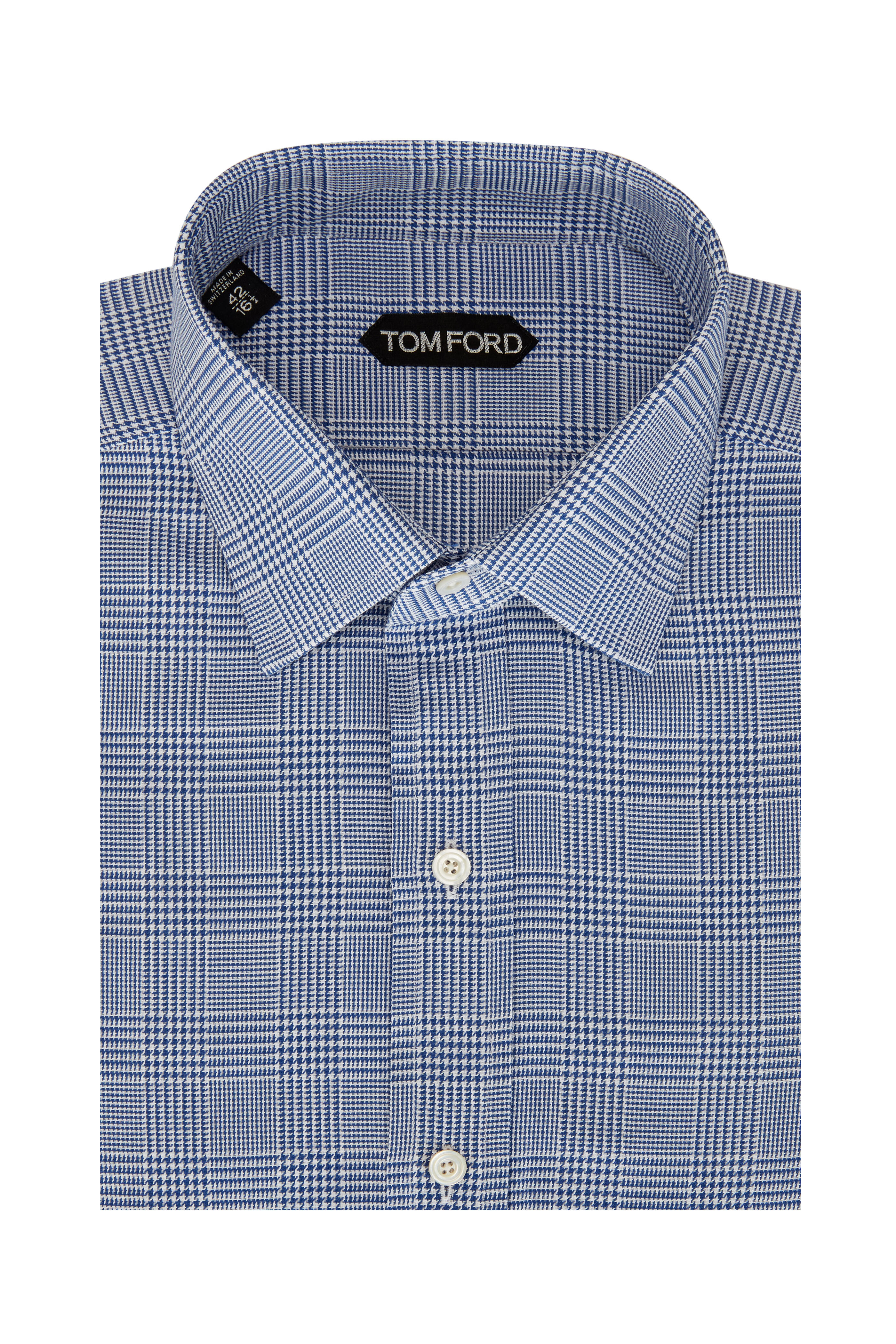 Navy Blue Prince Of Wales Plaid Dress Shirt