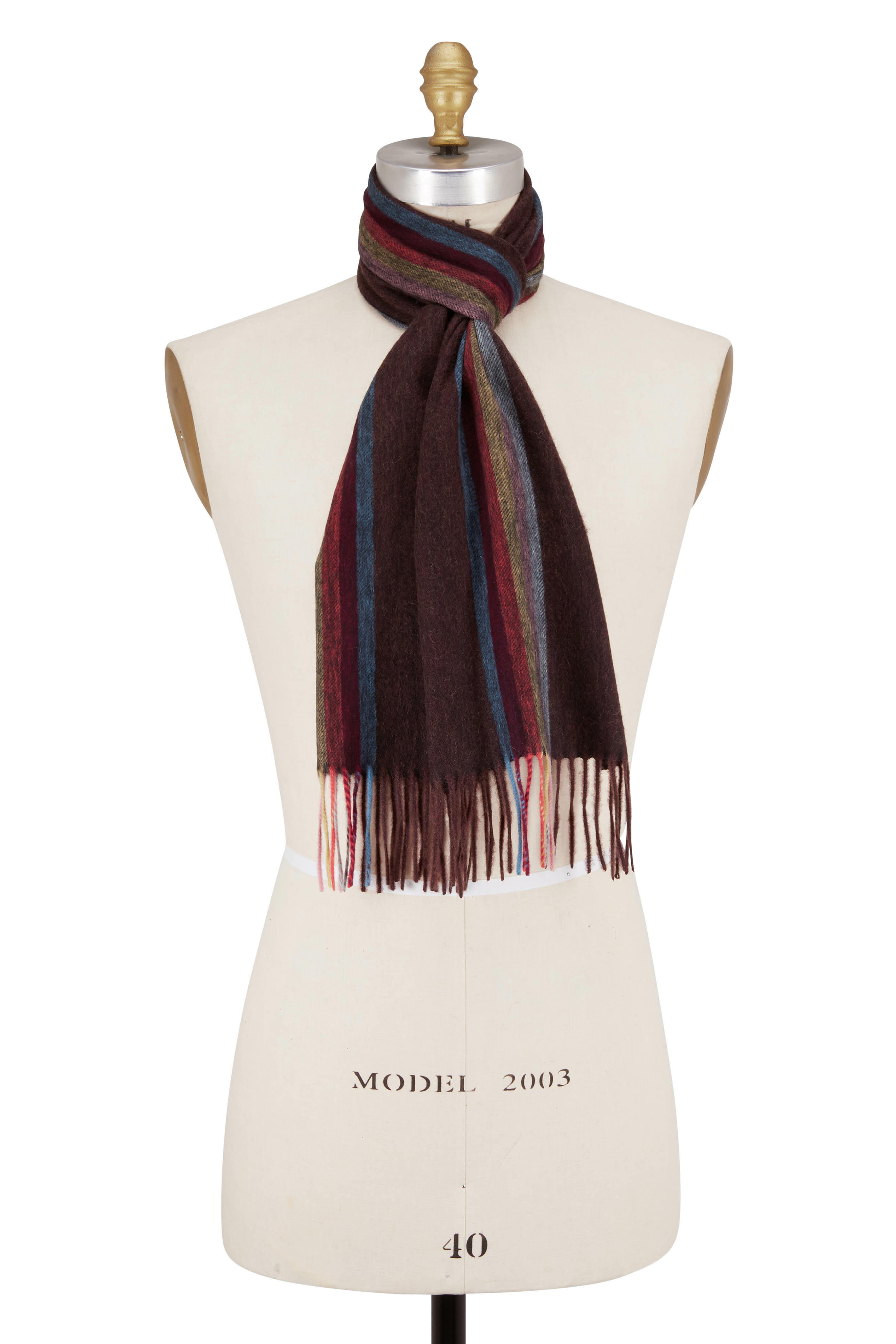 Fringe trim. Made in England. 100% cashmere. Dry clean.