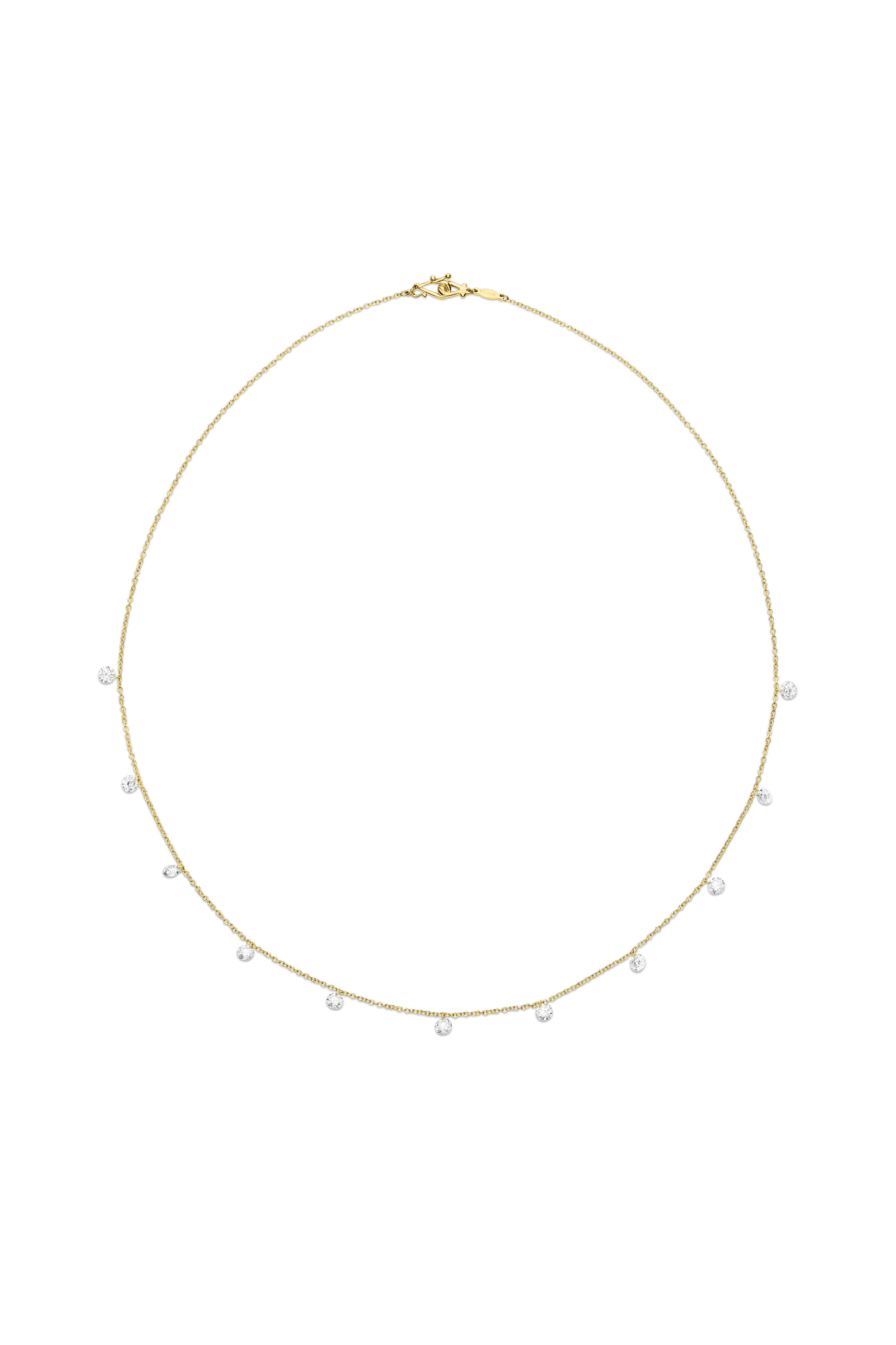 18K Yellow Gold. 11 Brilliant Cut White Diamonds: 1.63 tcw. Measures: 18″ Long. Secure Hook Clasp with Security Latch.