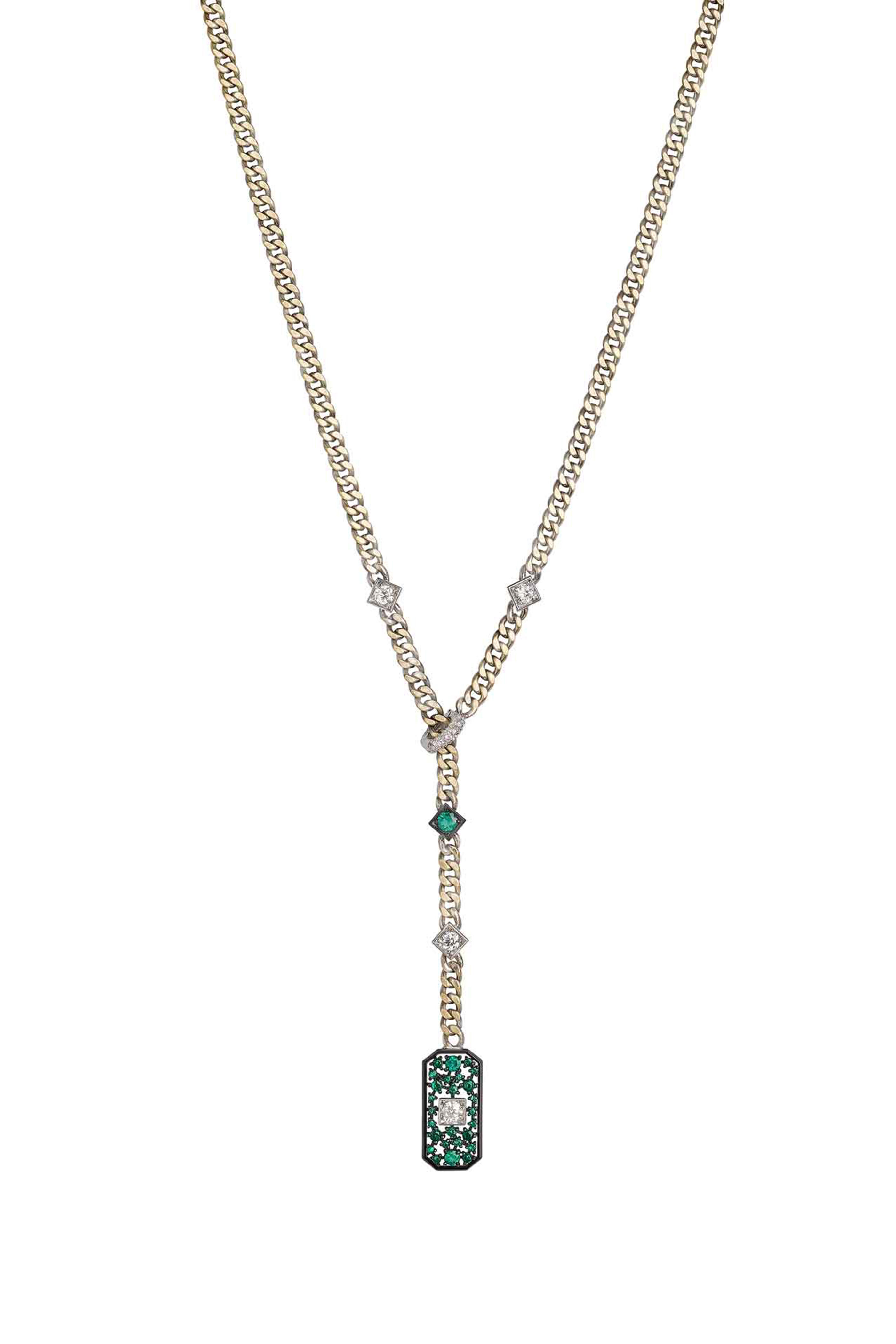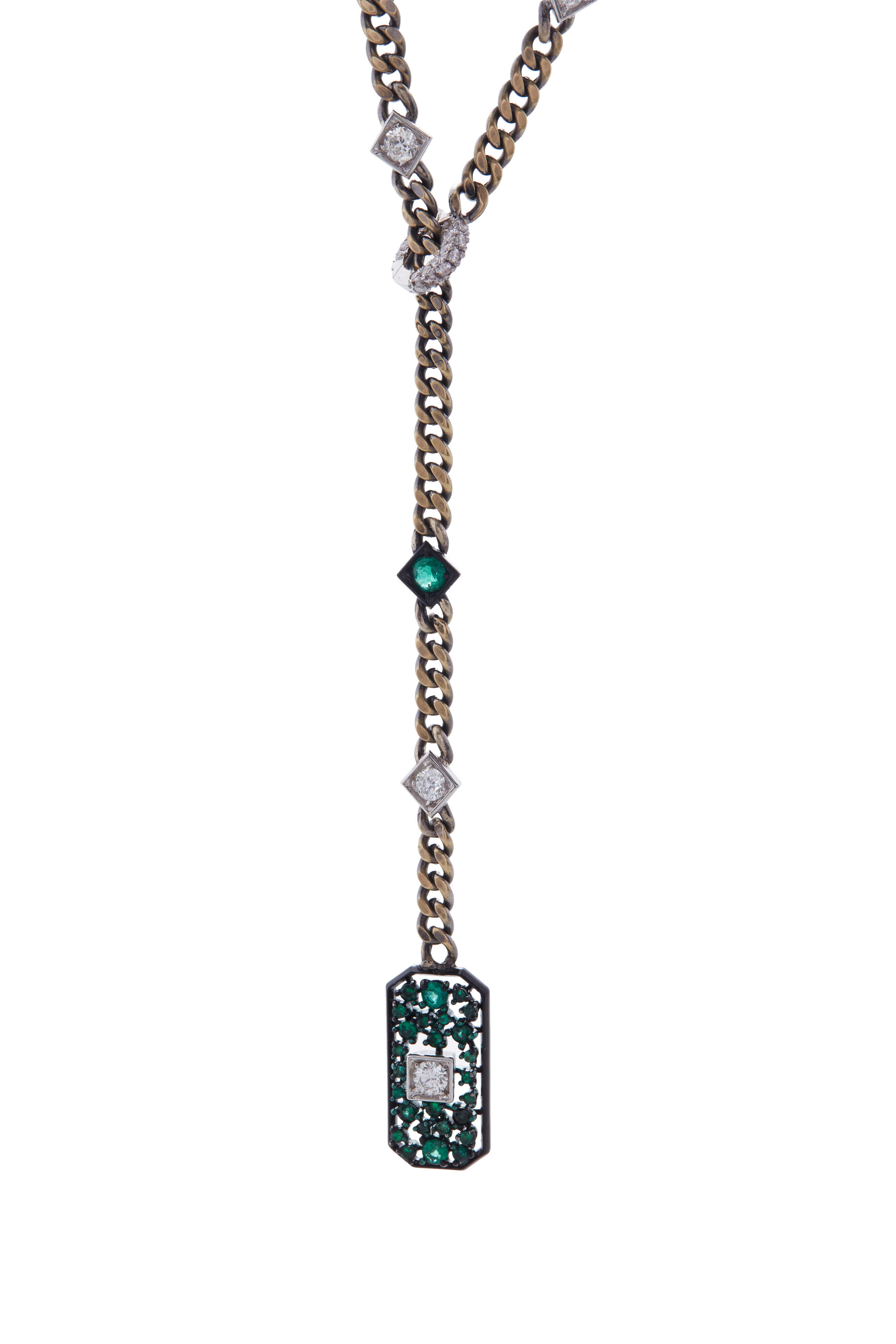 Yellow Gold Art Deco Diamond & Emerald Necklace
