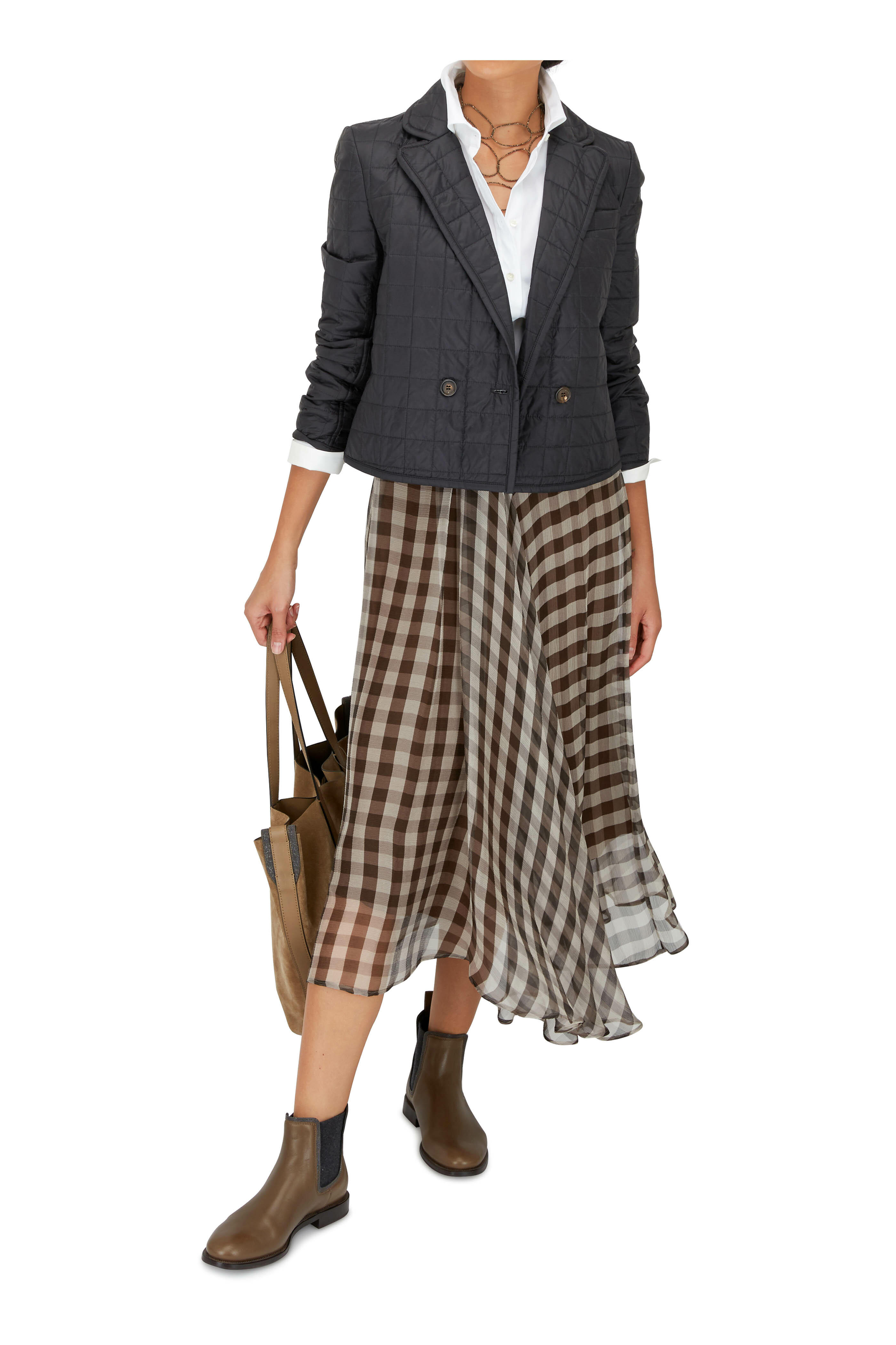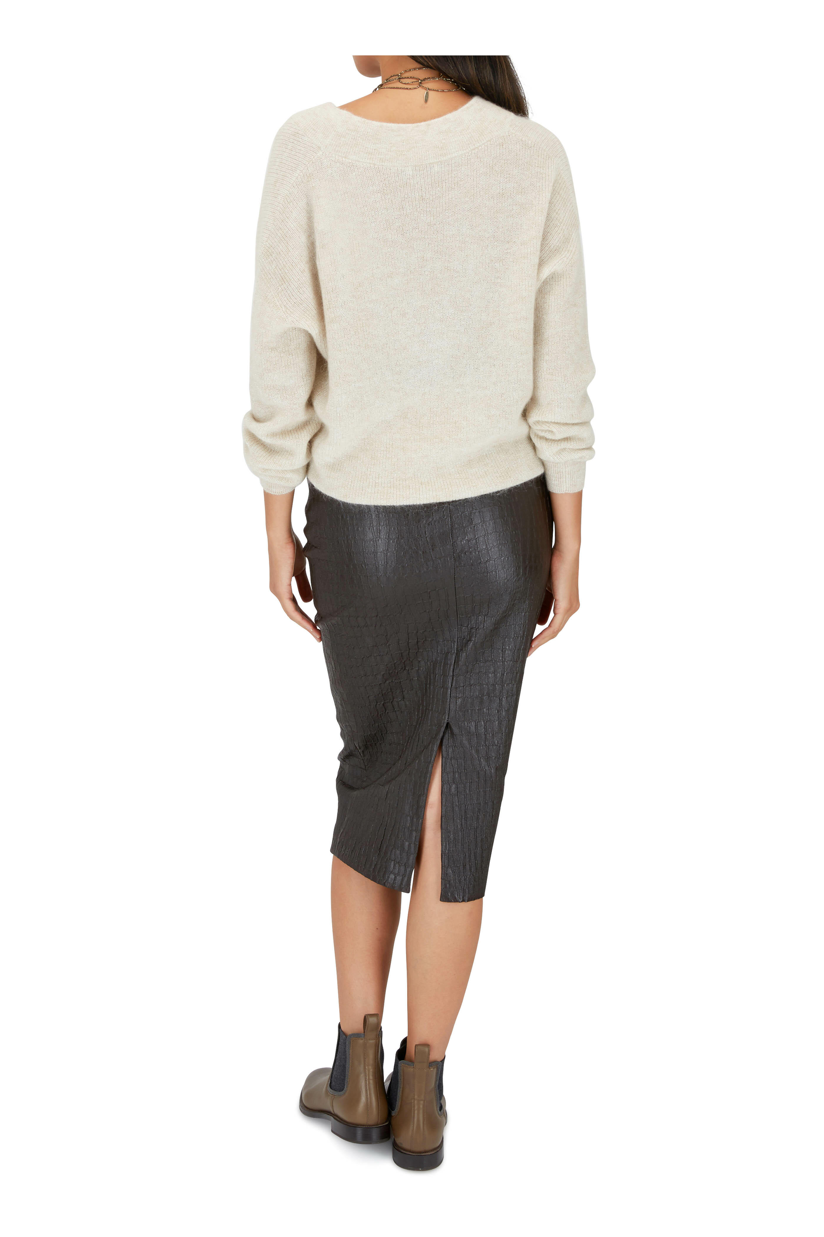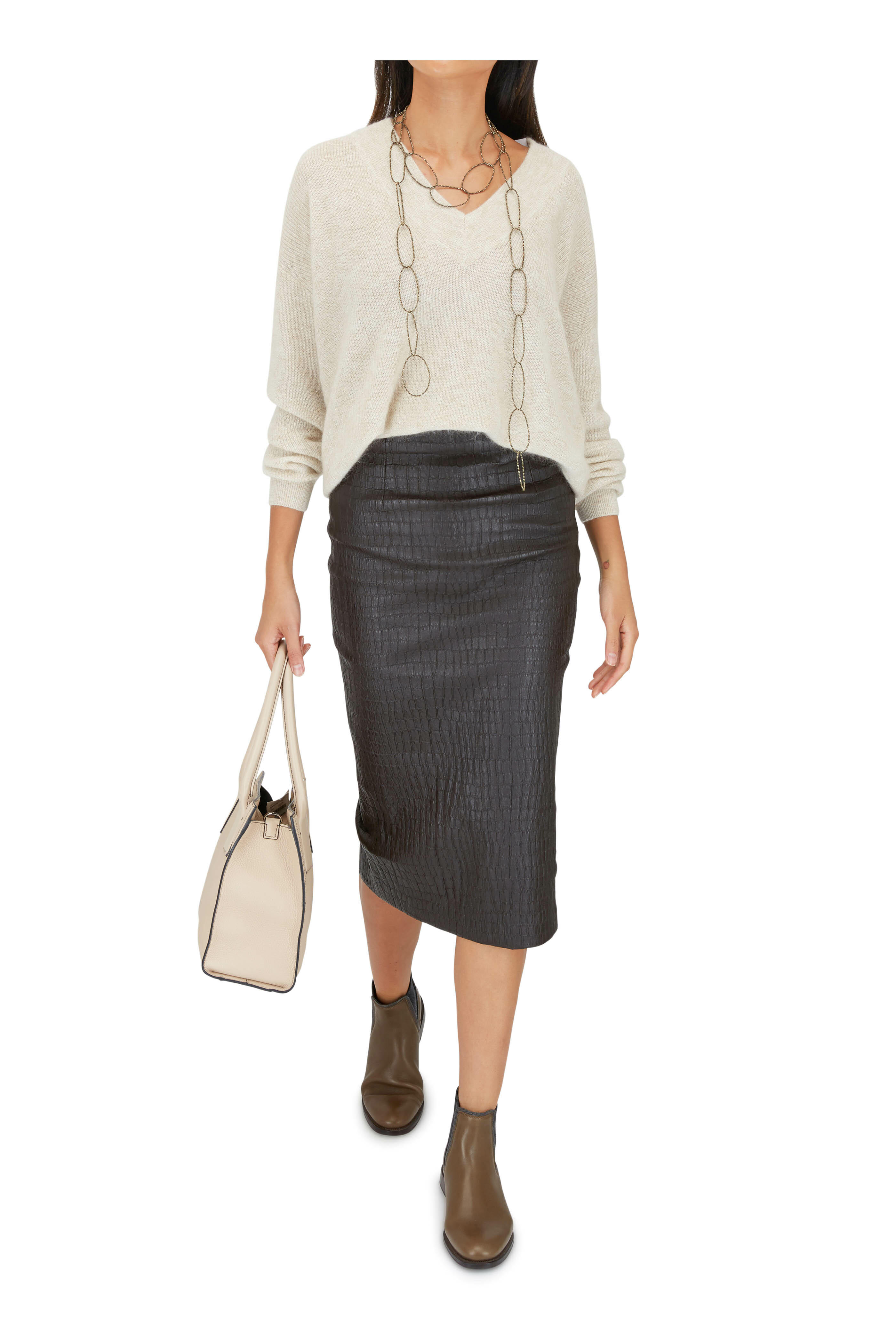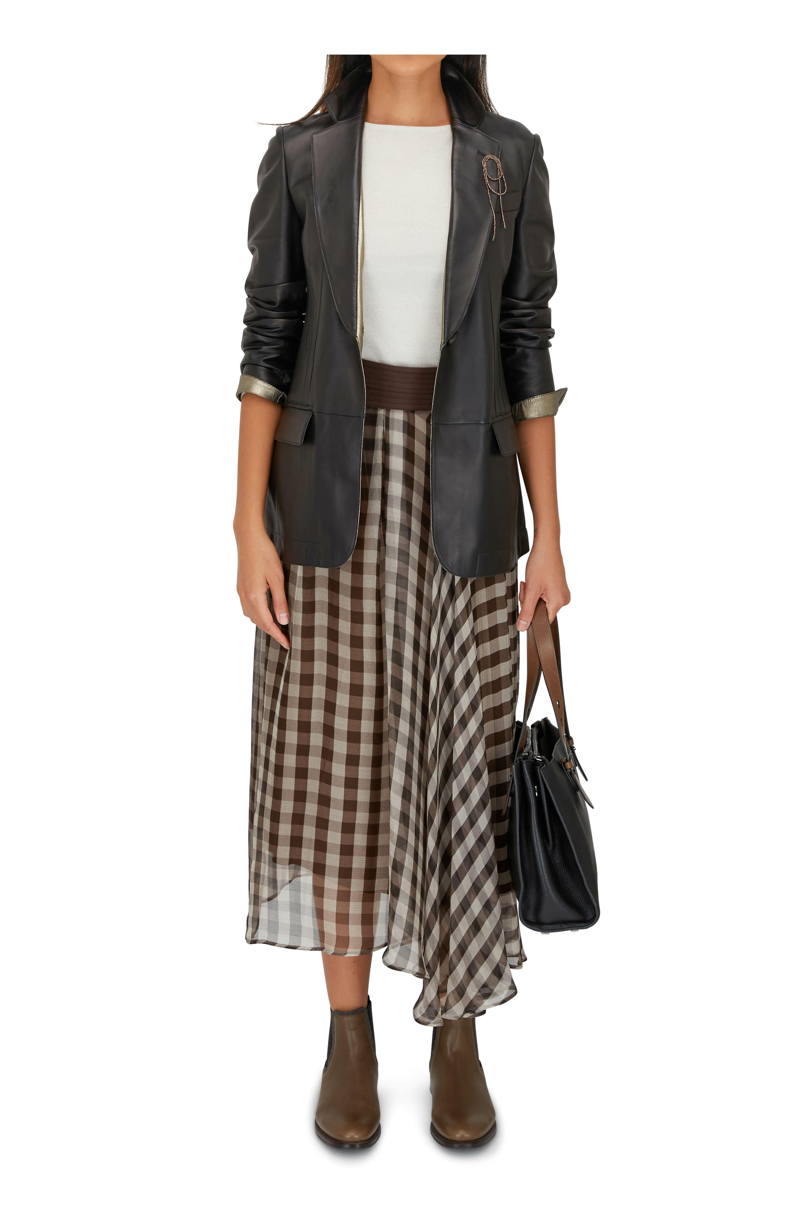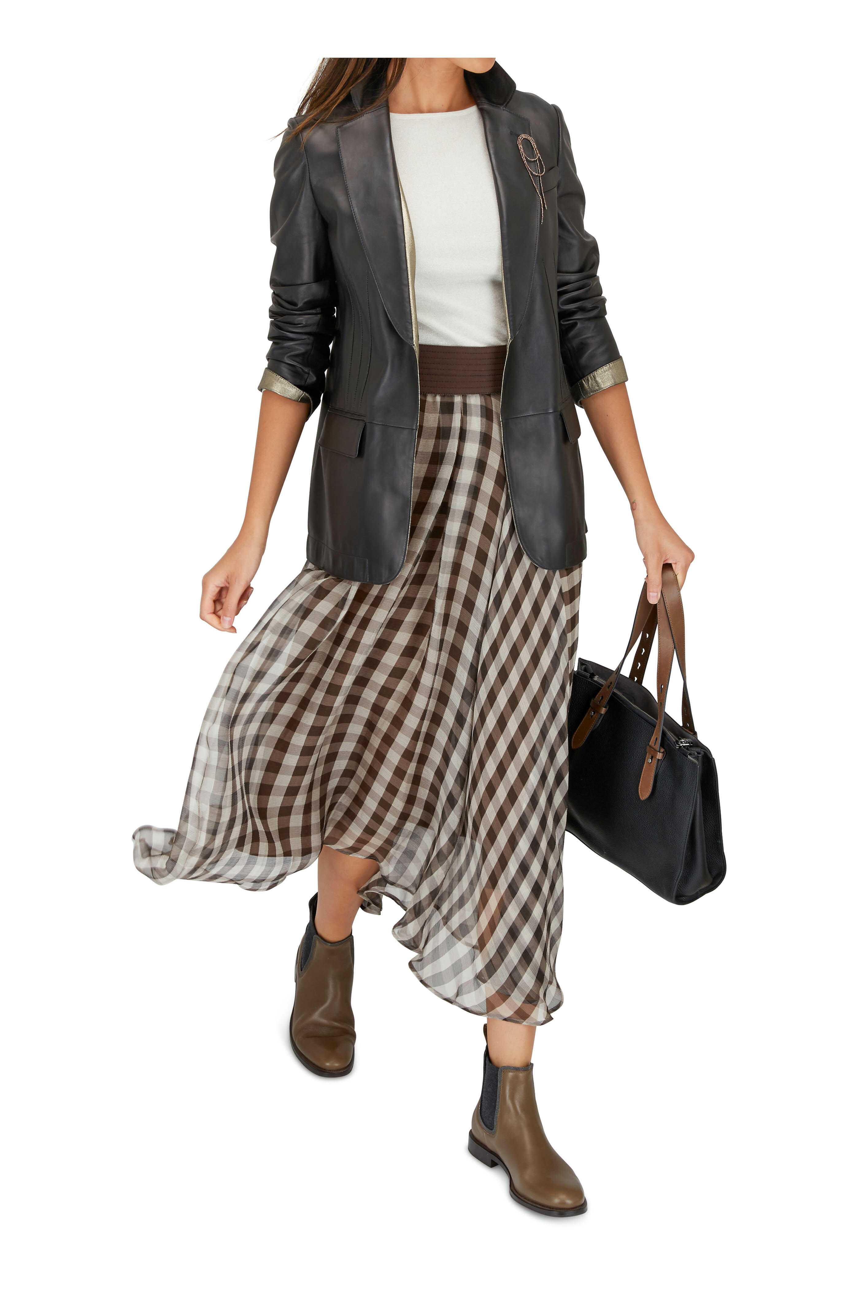 Calfskin leather upper. Almond toe. Elastic side gores. Monili trim. Pull-tab at back heel. Leather lining and insole. Stacked wooden heel. Leather sole. Made in Italy.