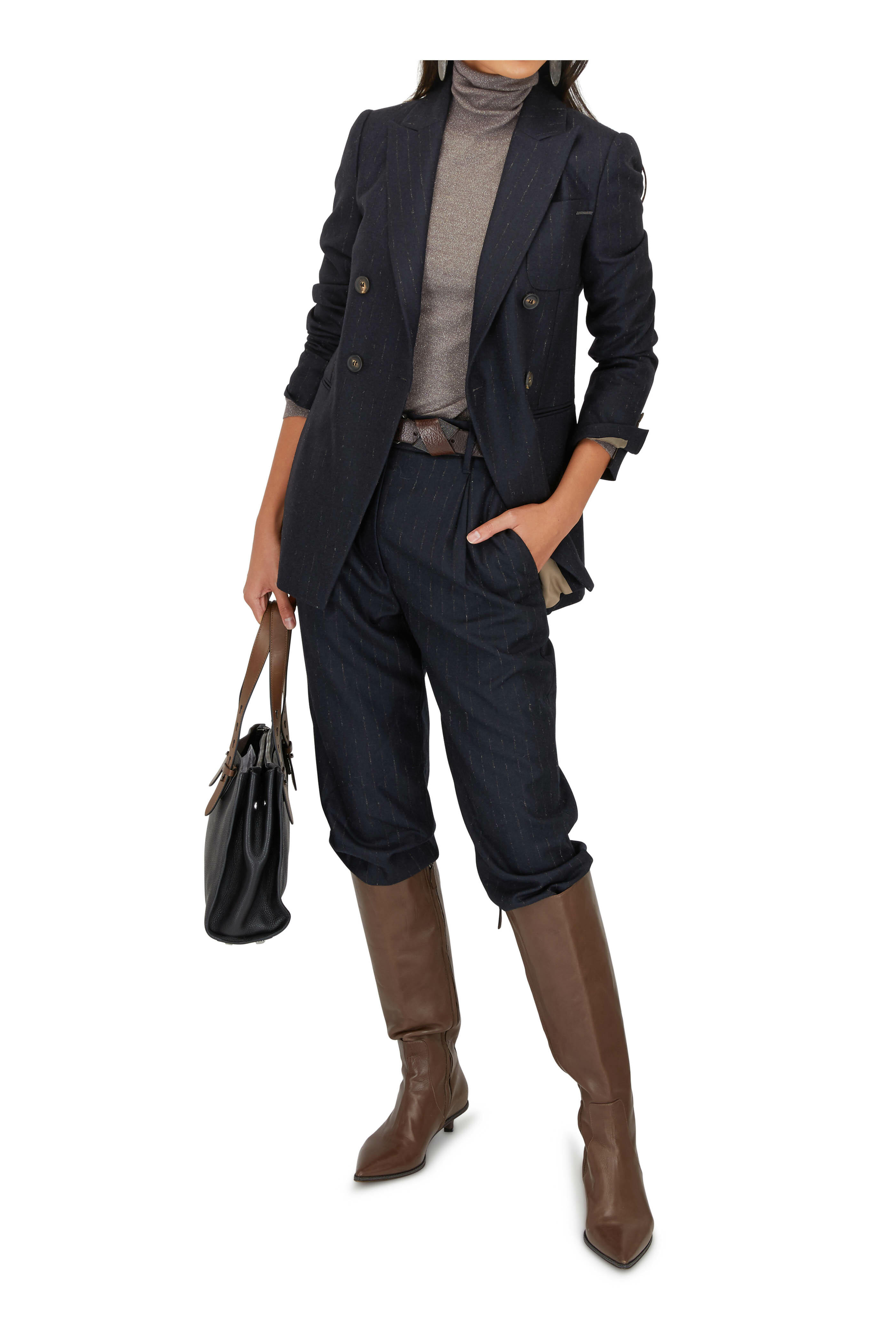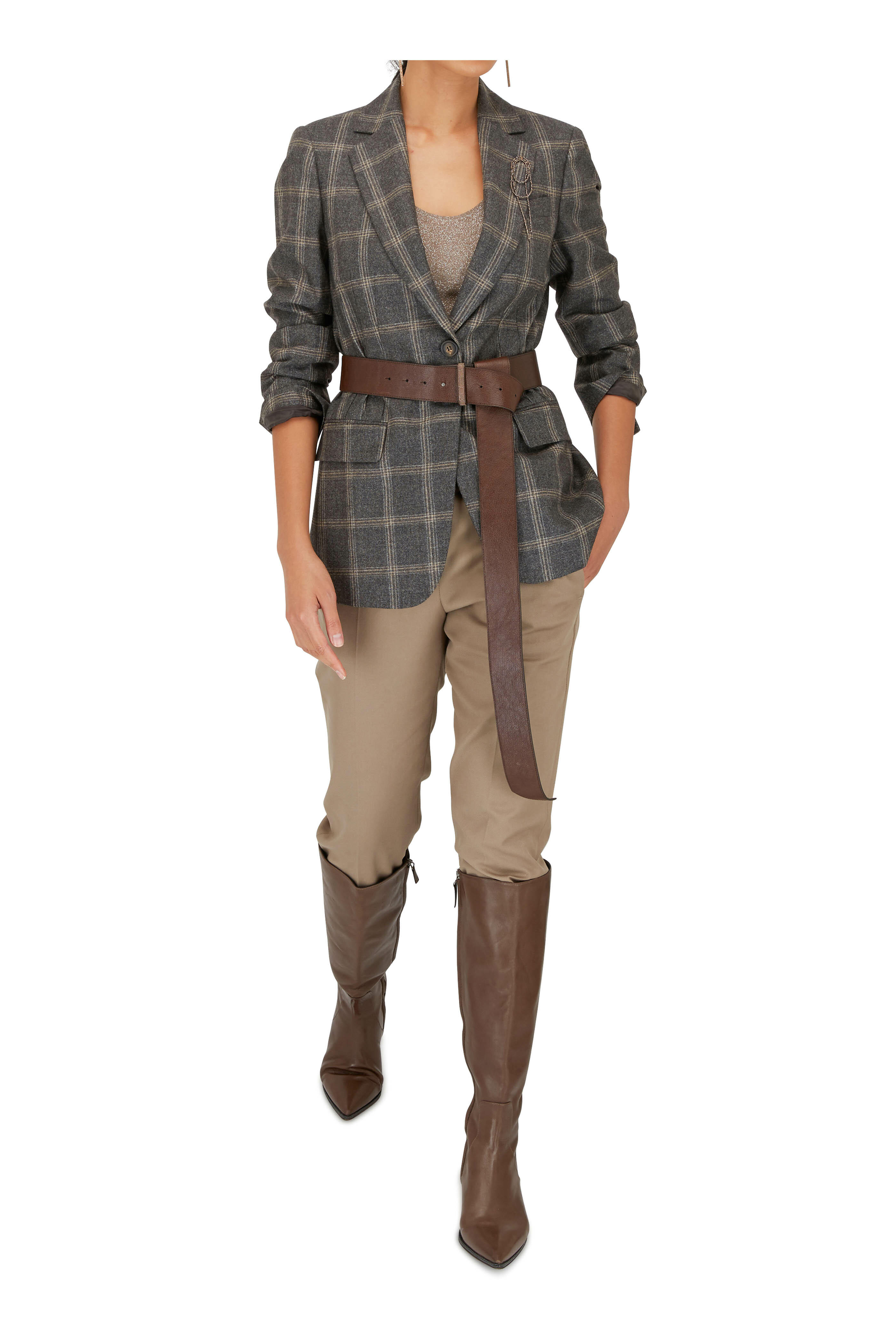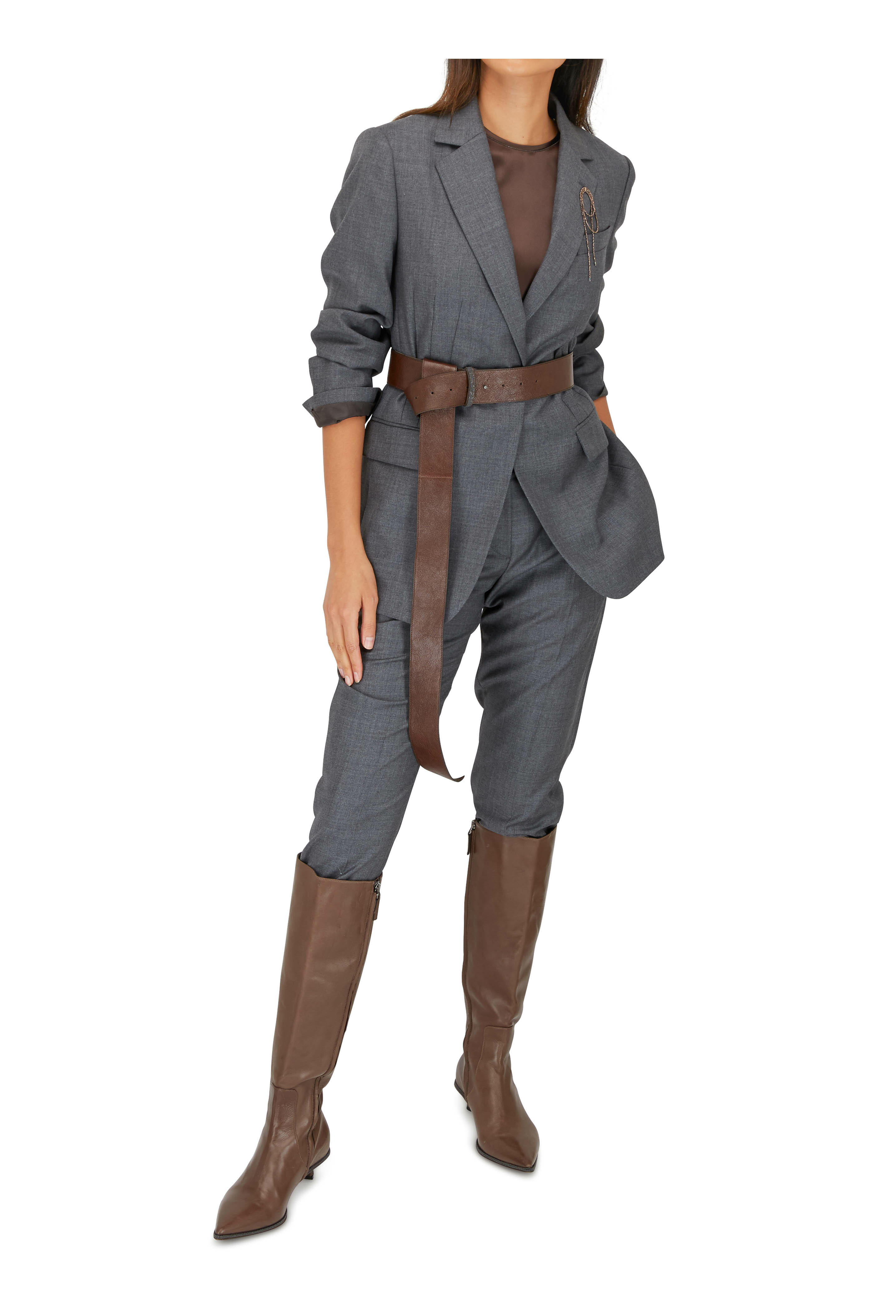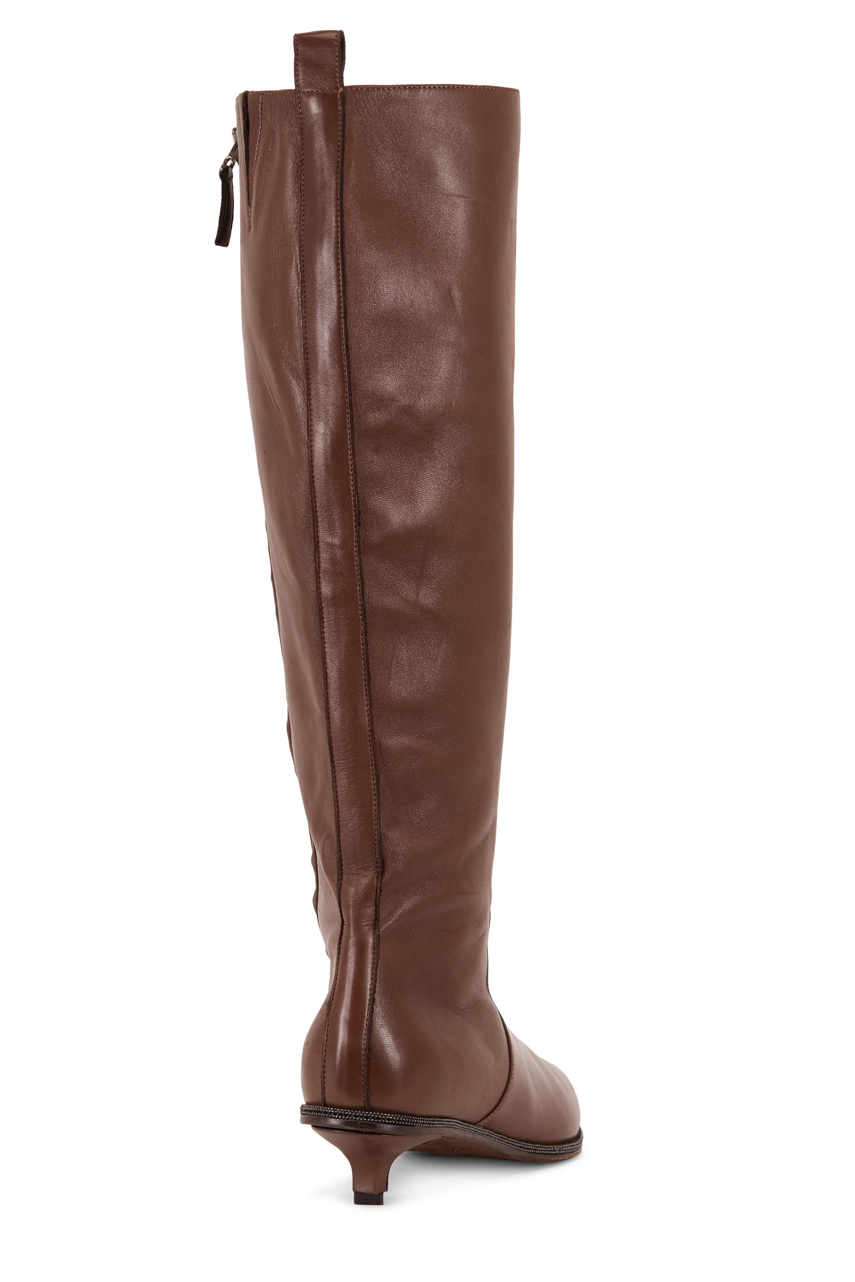 Nappa leather upper. Pointed toe. Side zip closure. Leather lining and insole. Monili trim at mid-heel. Self covered kitten heel. Leather sole. Made in Italy. Heel measurement: 30mm (1 ¼"). Shaft: 17".