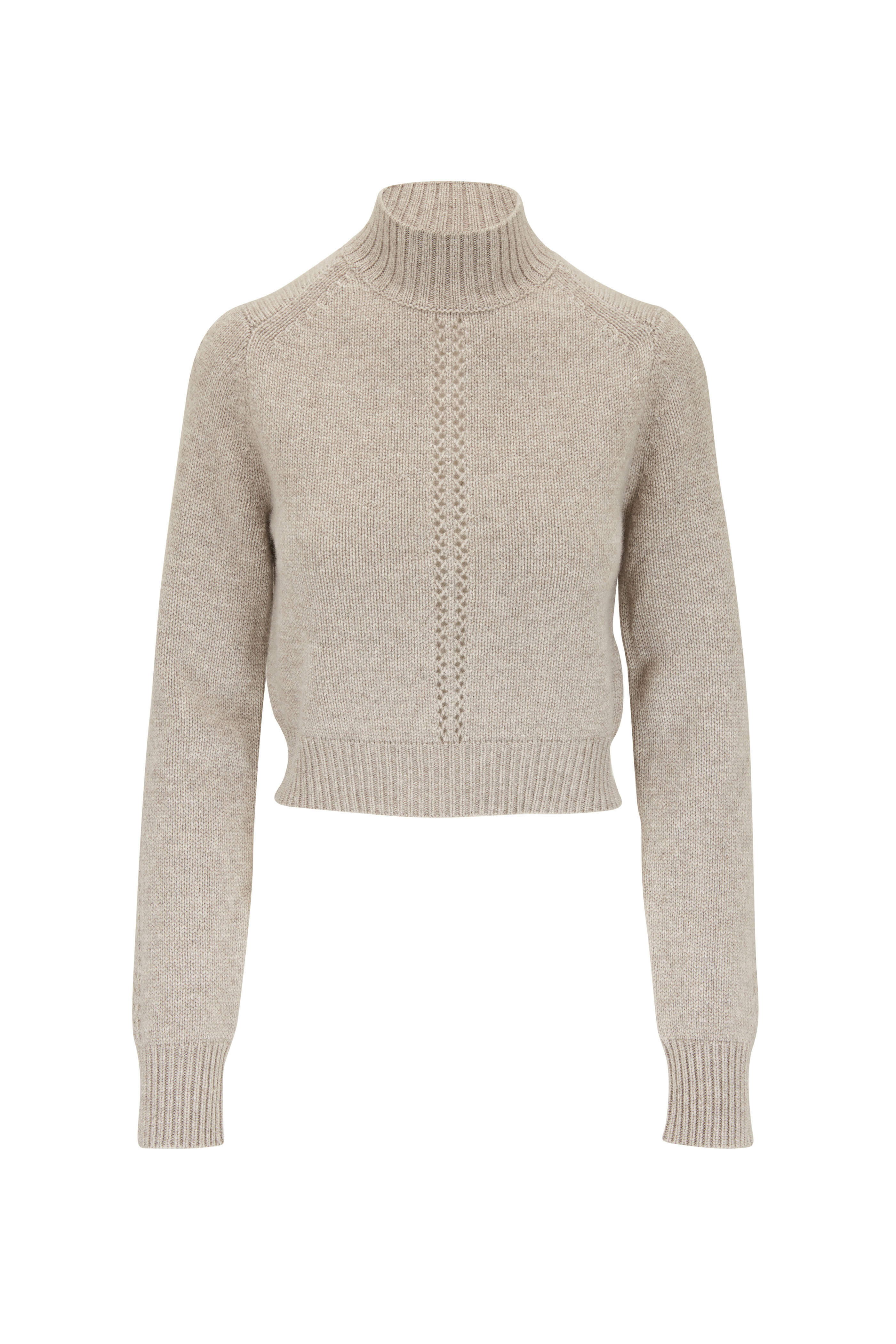 Mock neckline. Ribbed trim. Imported. 100% cashmere. Hand wash.