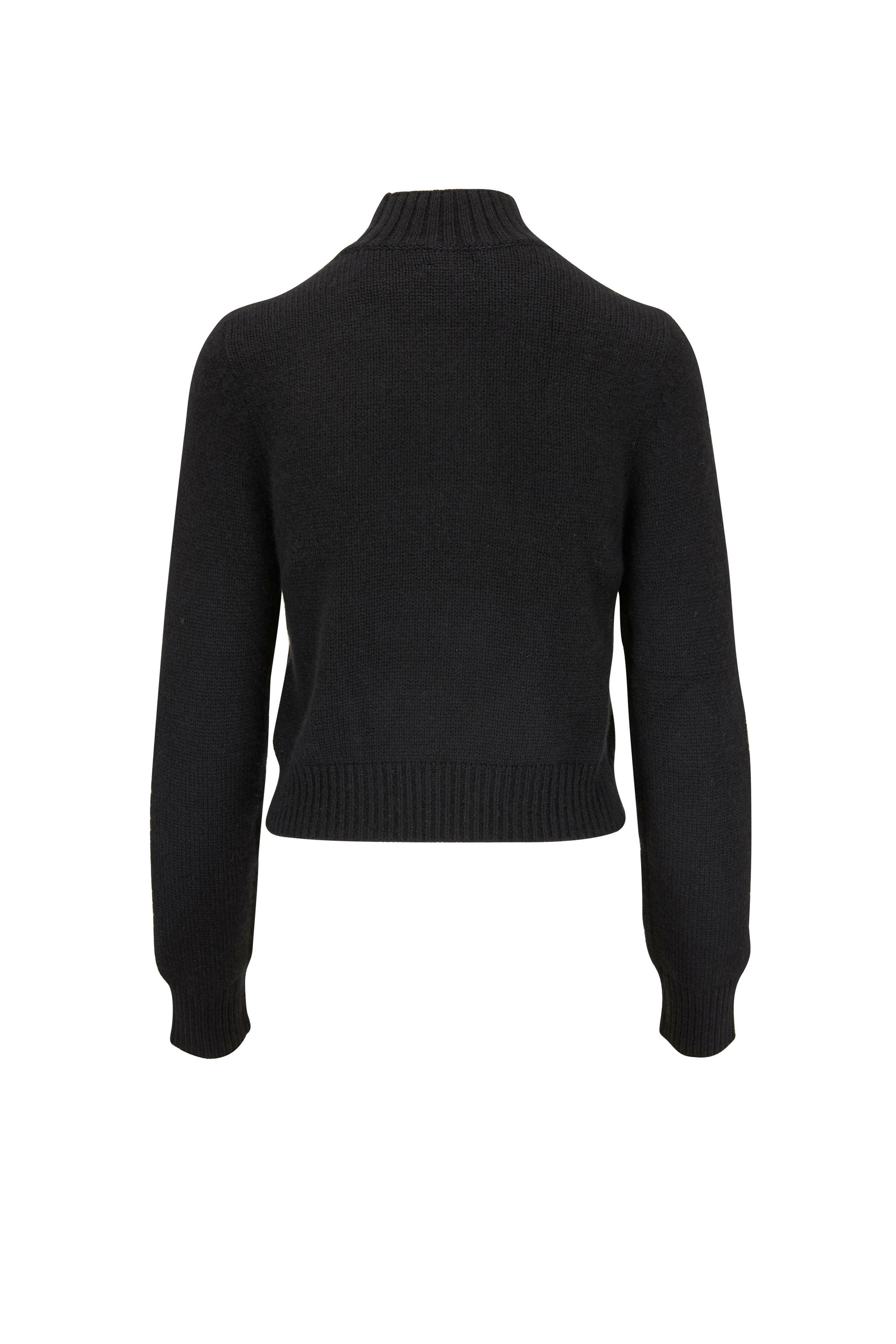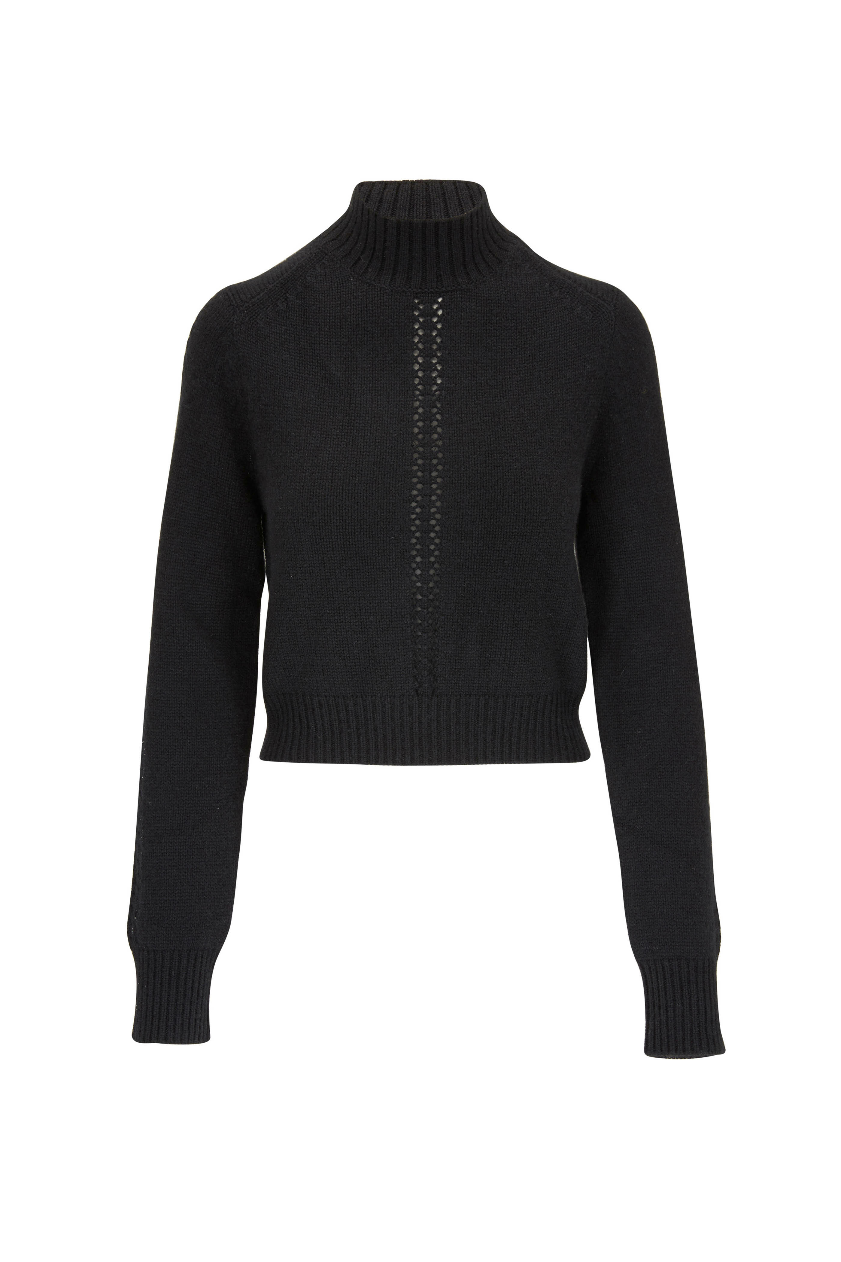 Mock neckline. Ribbed trim. Imported. 100% cashmere. Hand wash.
