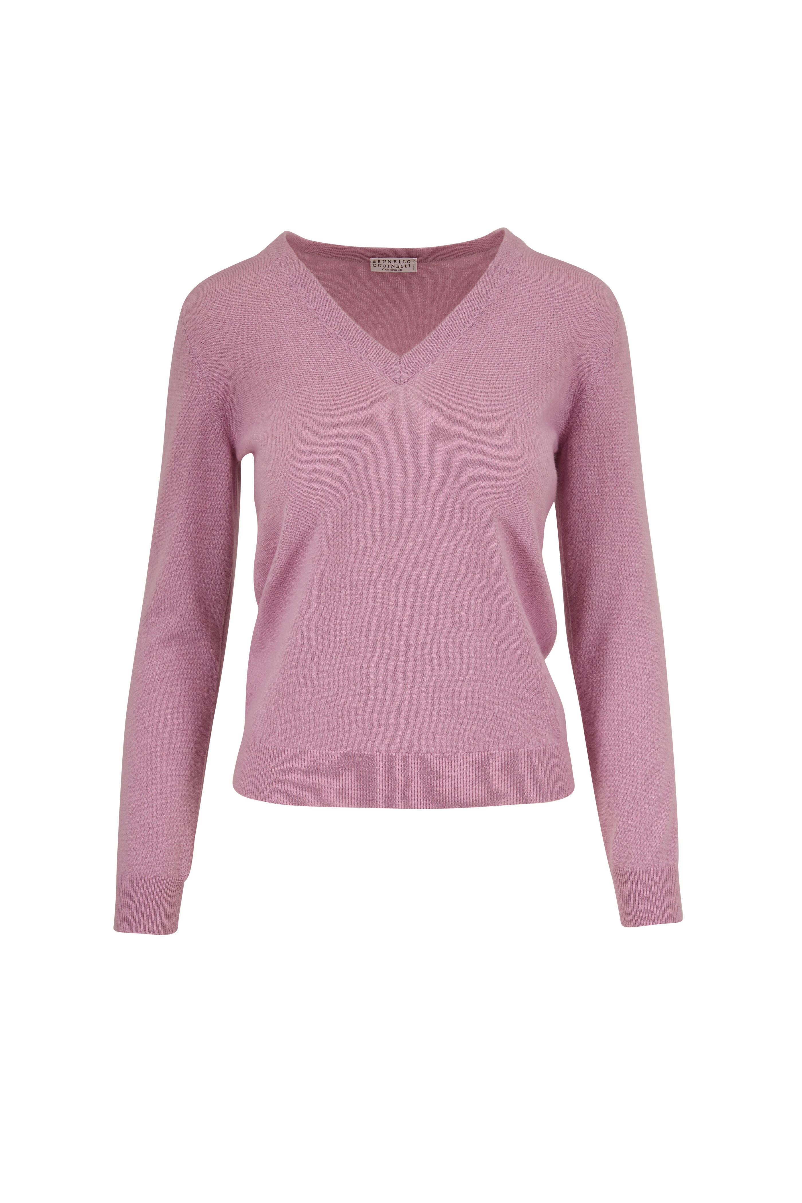 V-neckline. Ribbed trim. Made in Italy. 100% cashmere. Dry clean.