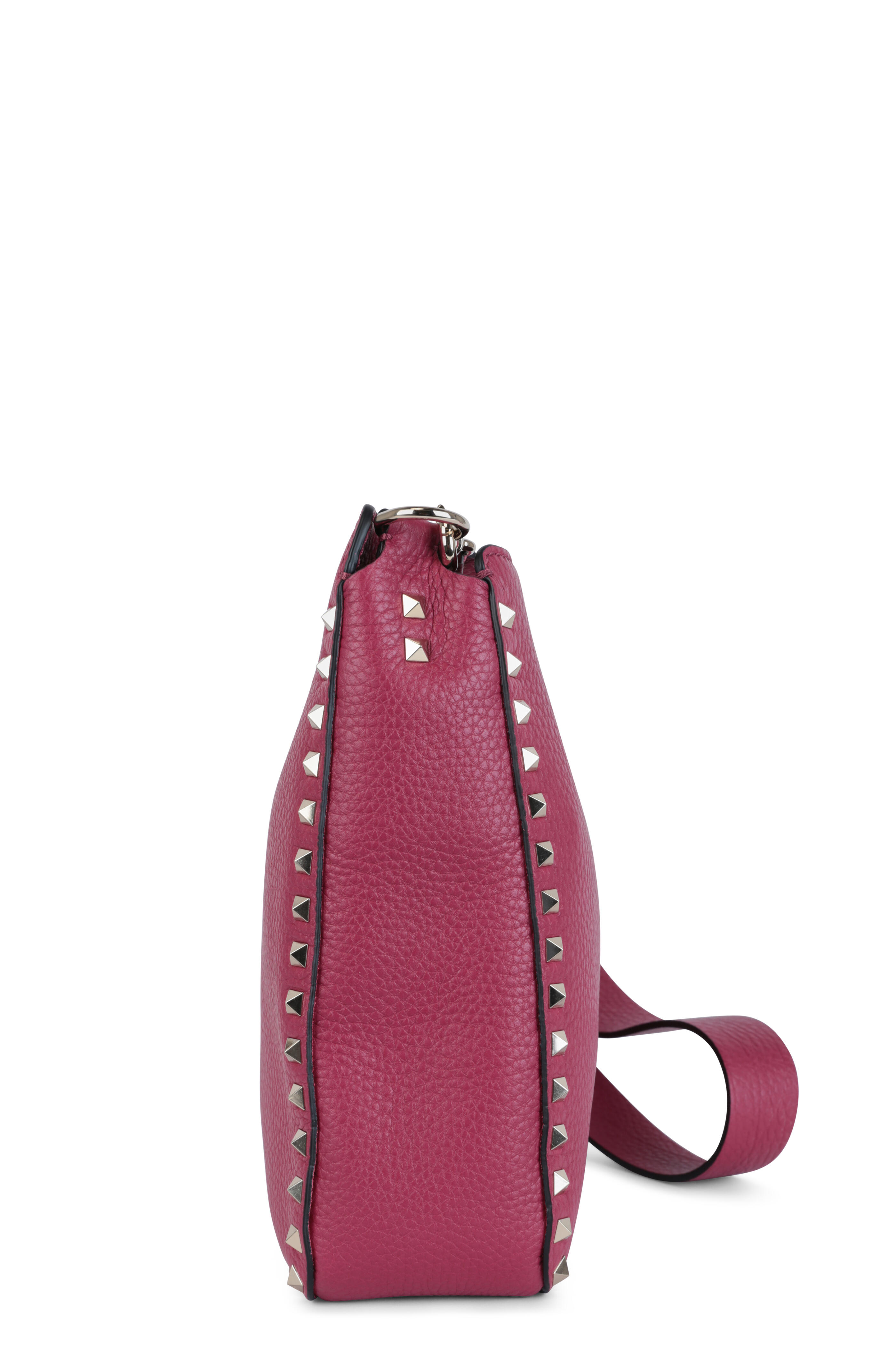 Rockstud Raspberry Leather Small Hobo Crossbody