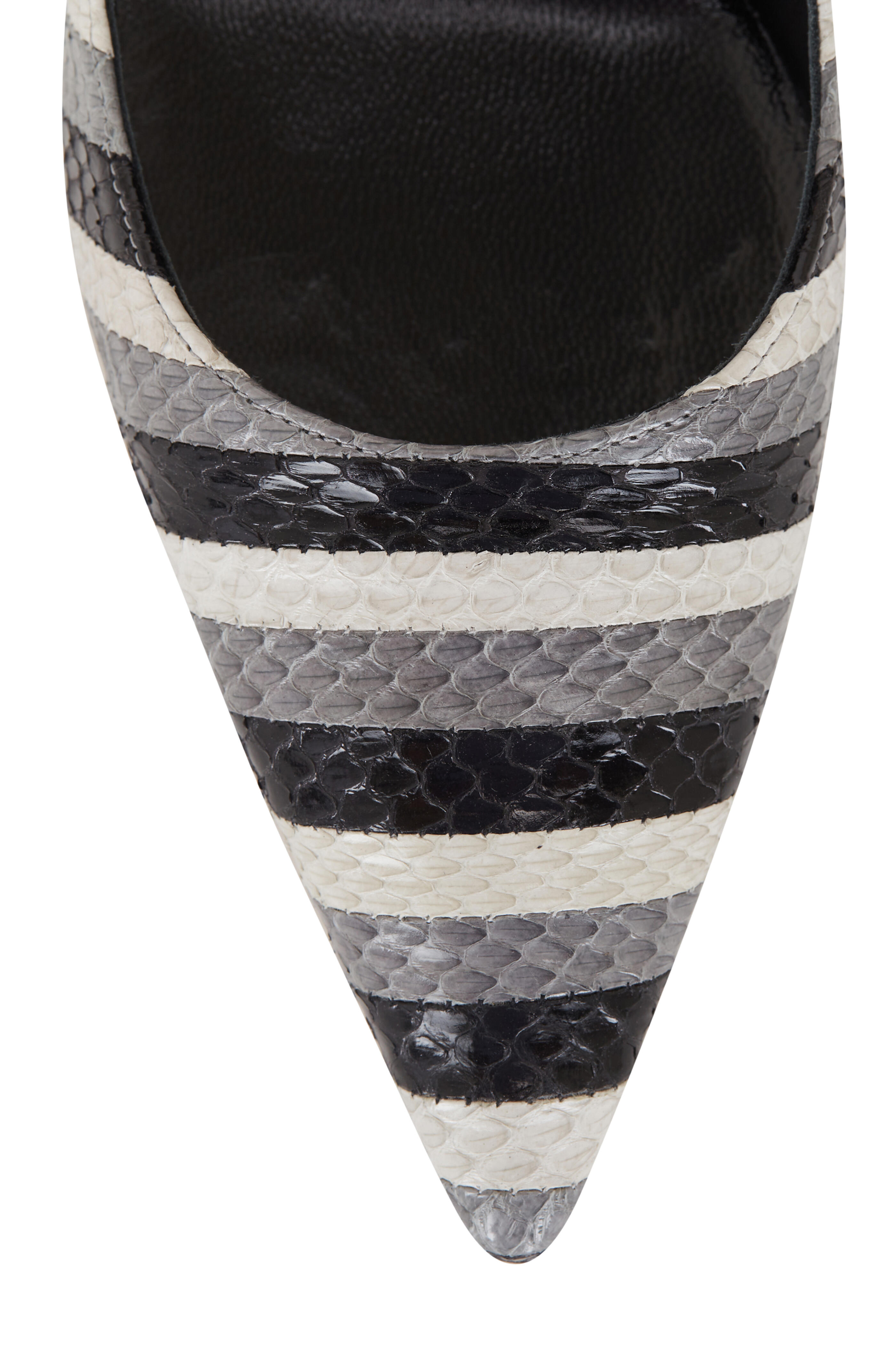 Snakeskin upper. Pointed toe. Leather lining and insole. Self-covered heel. Leather sole. Made in Italy. Heel measurement: 90mm (approx. 3.5").