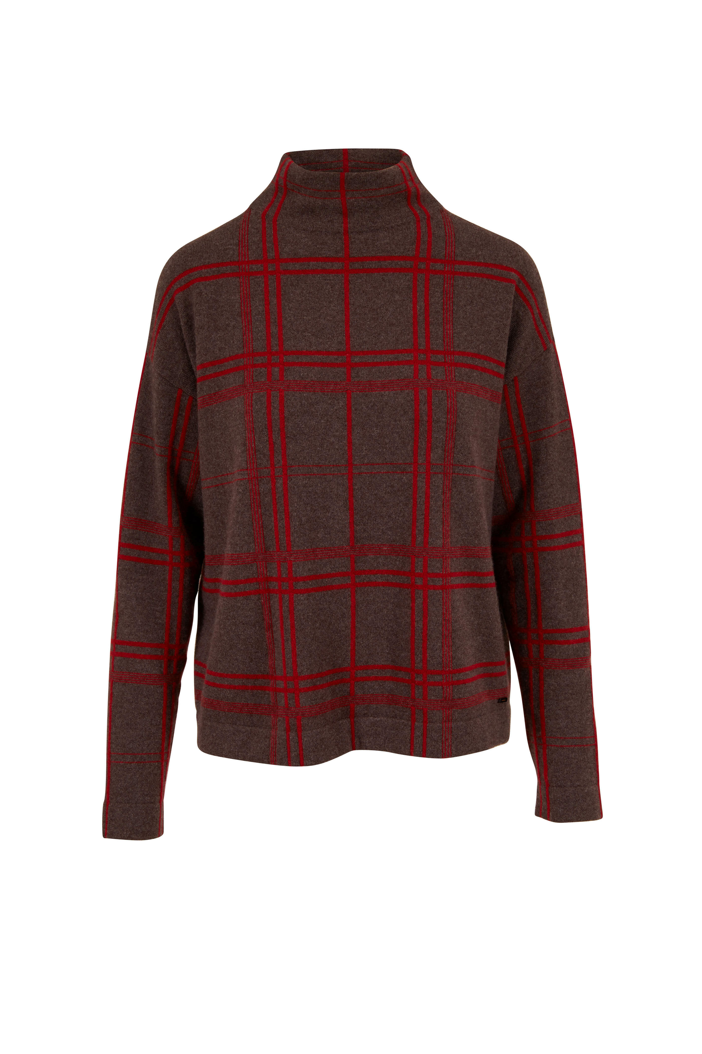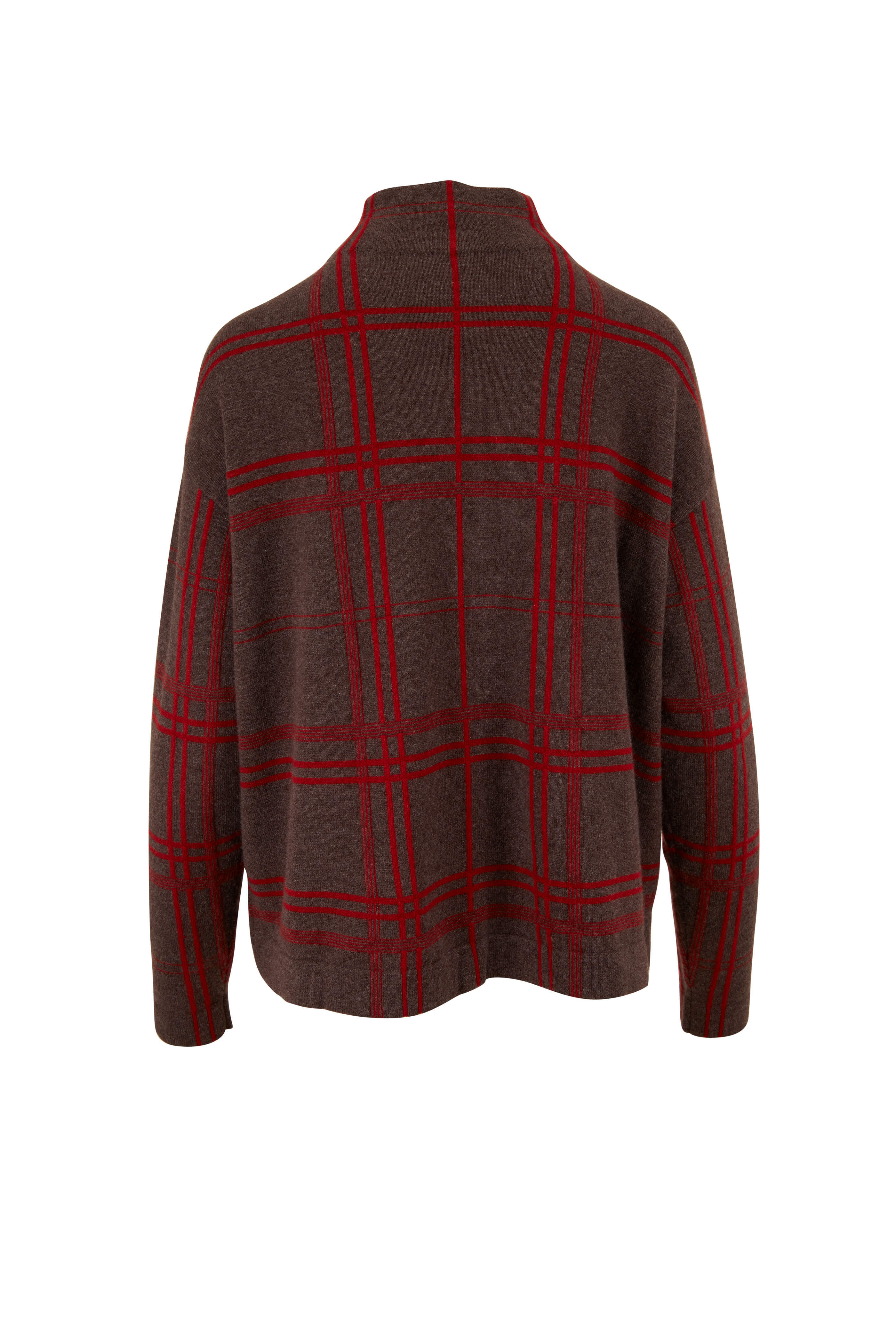 Beige & Red Cashmere Window Pane Intarsia Sweater