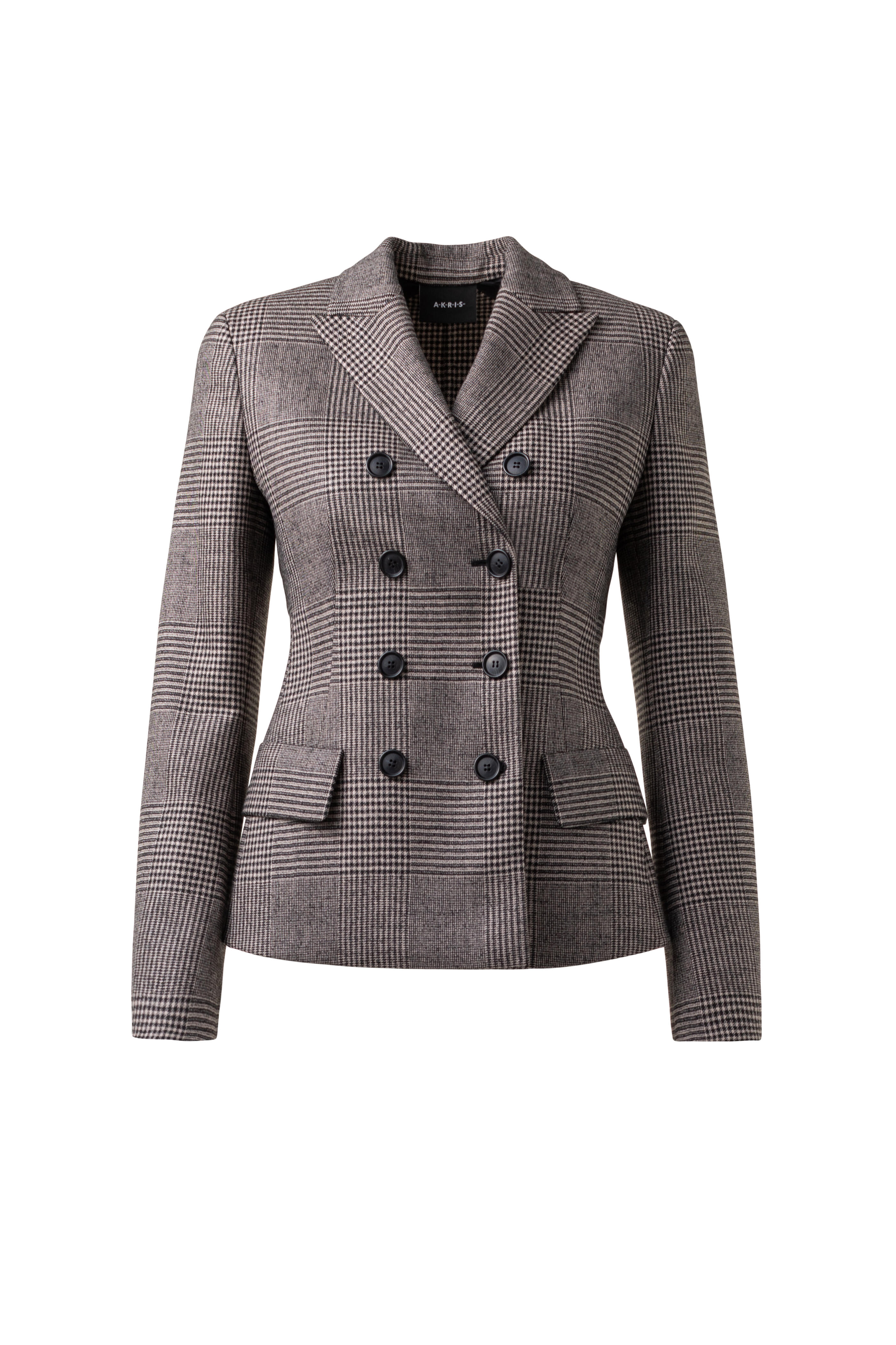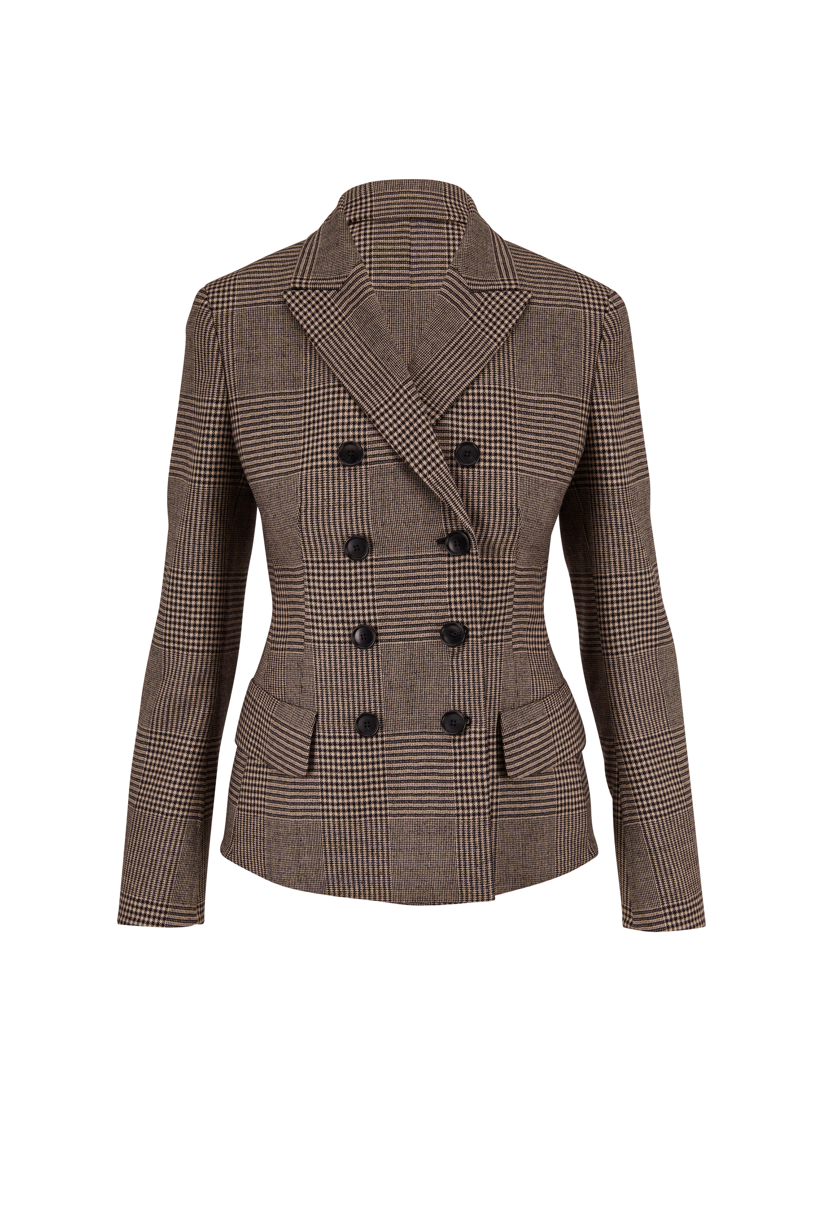 Black & Taupe Glen Plaid Double-Breasted Jacket