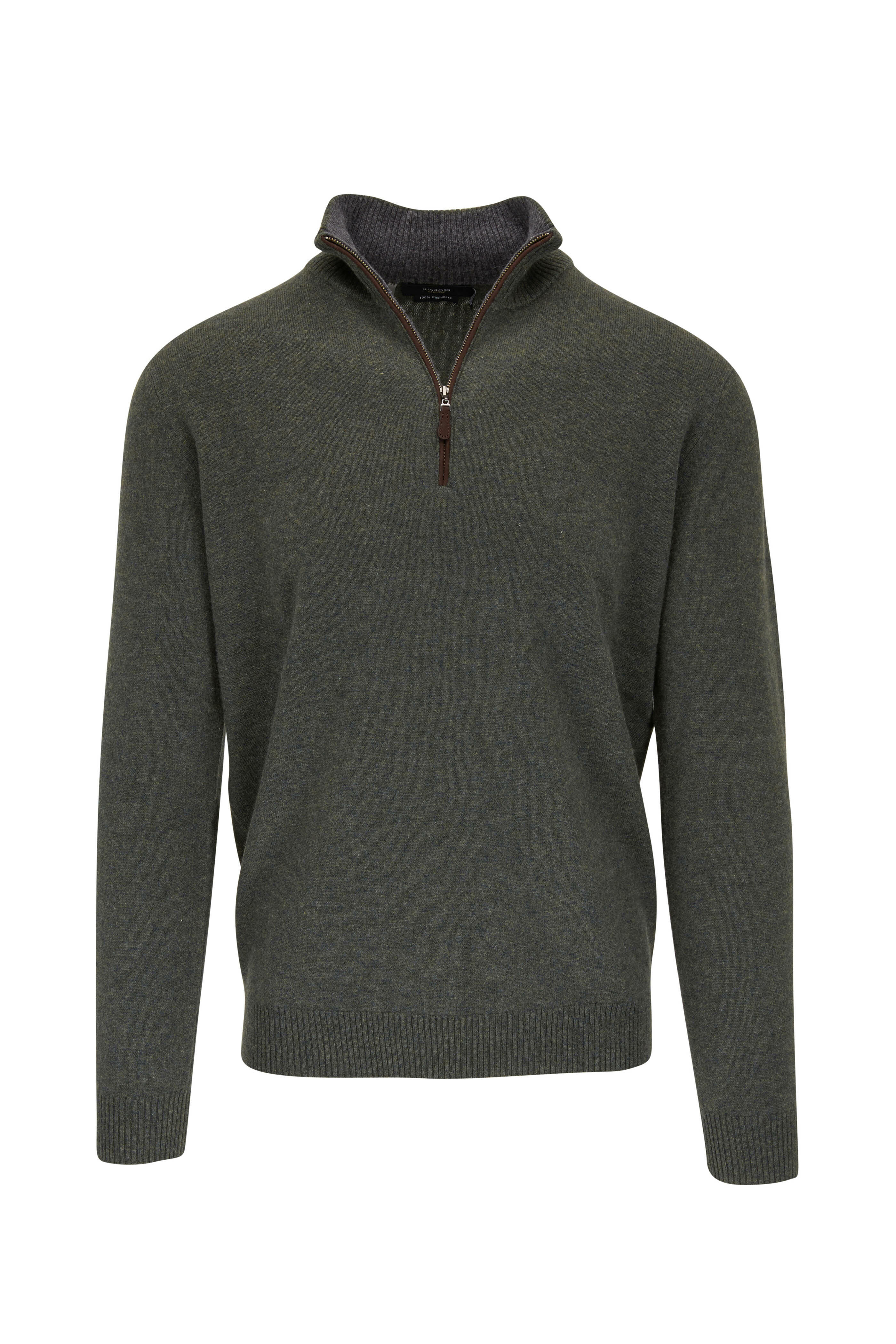 • Kinross - Forest Green Cashmere Quarter Zip Pullover