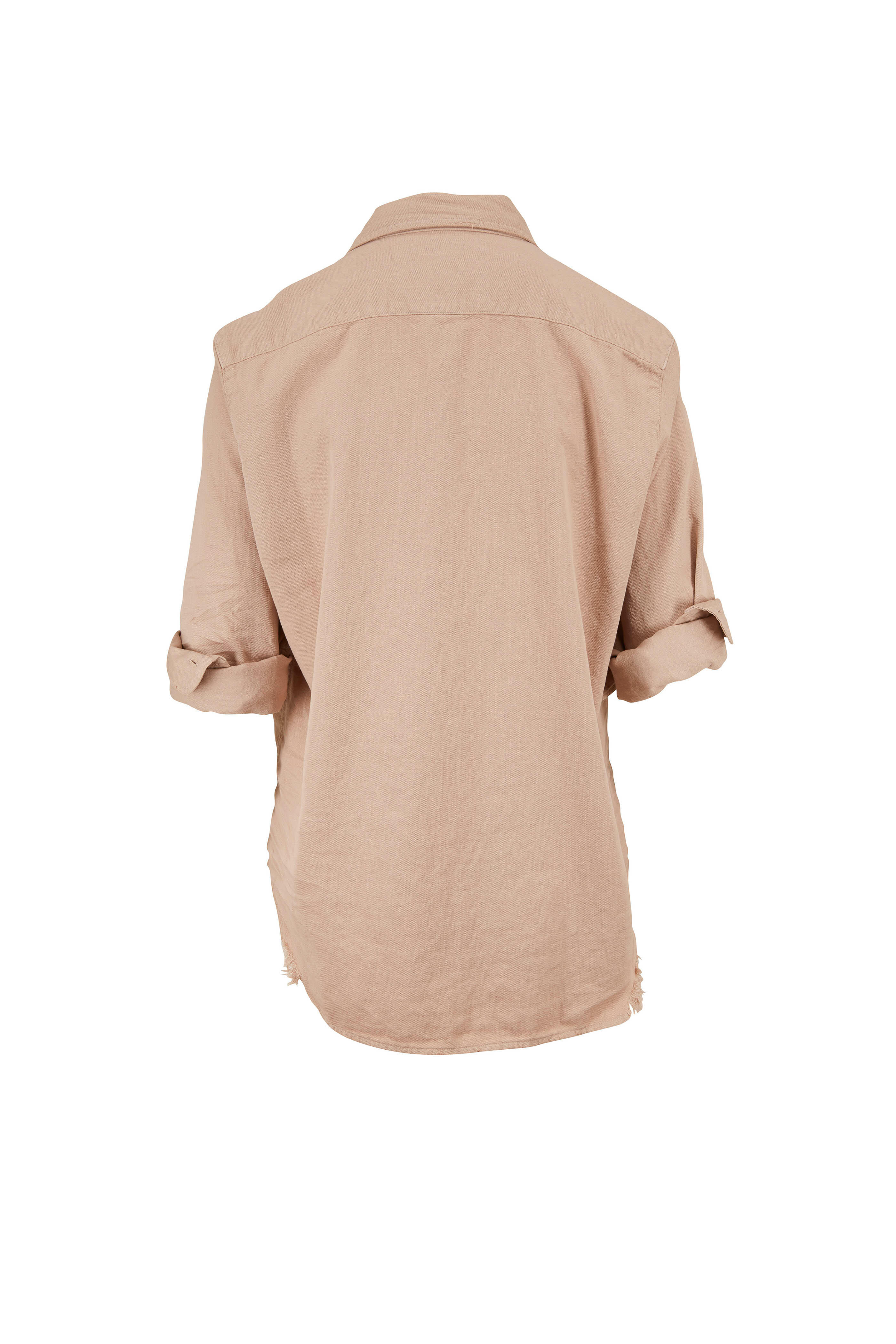 Eileen Sand Raw Edge Hem Button Down
