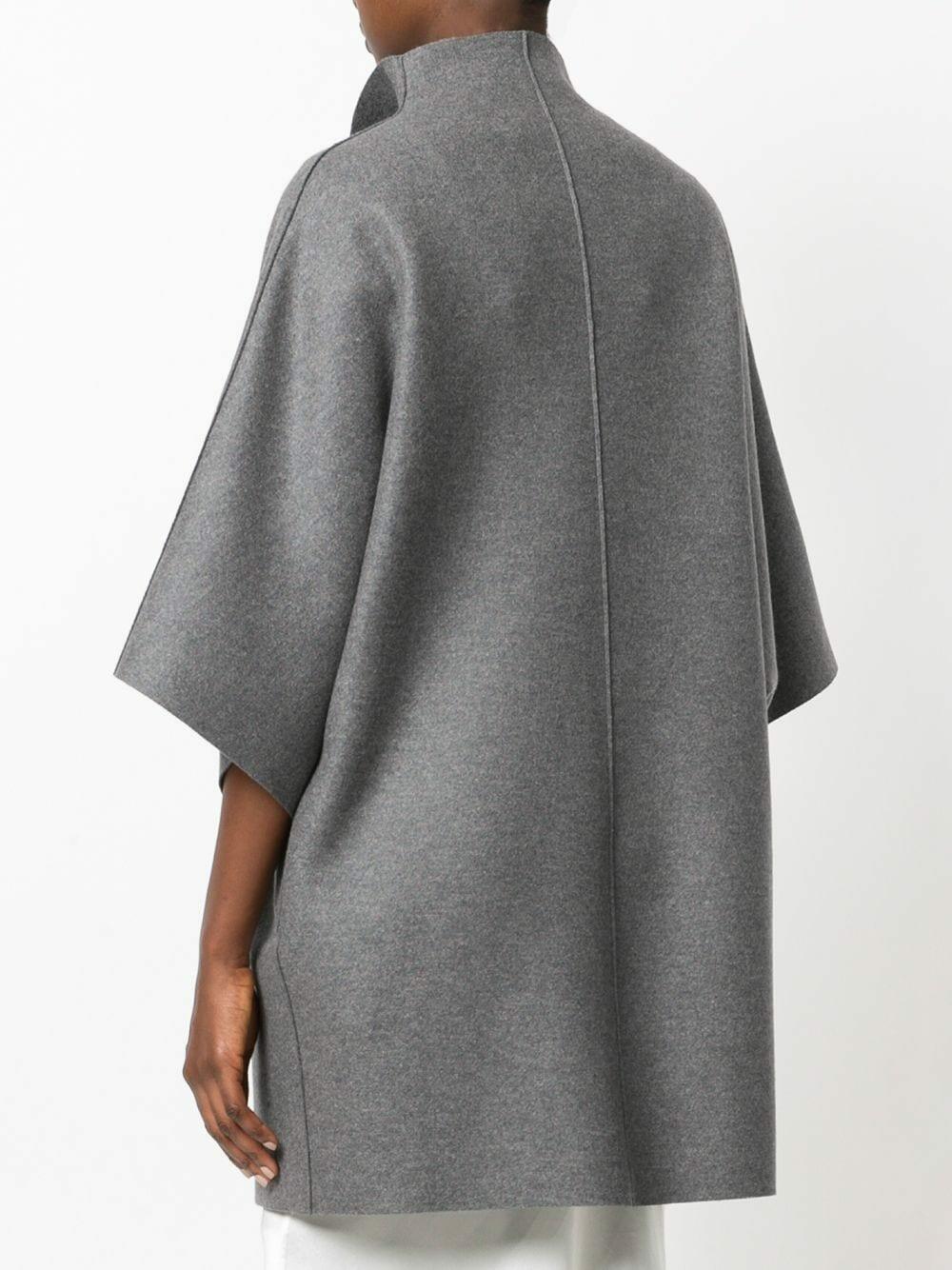 Folded collar. Concealed stud fastening. Three-quarter sleeves. Made in Italy. 100% virgin wool. Dry clean.