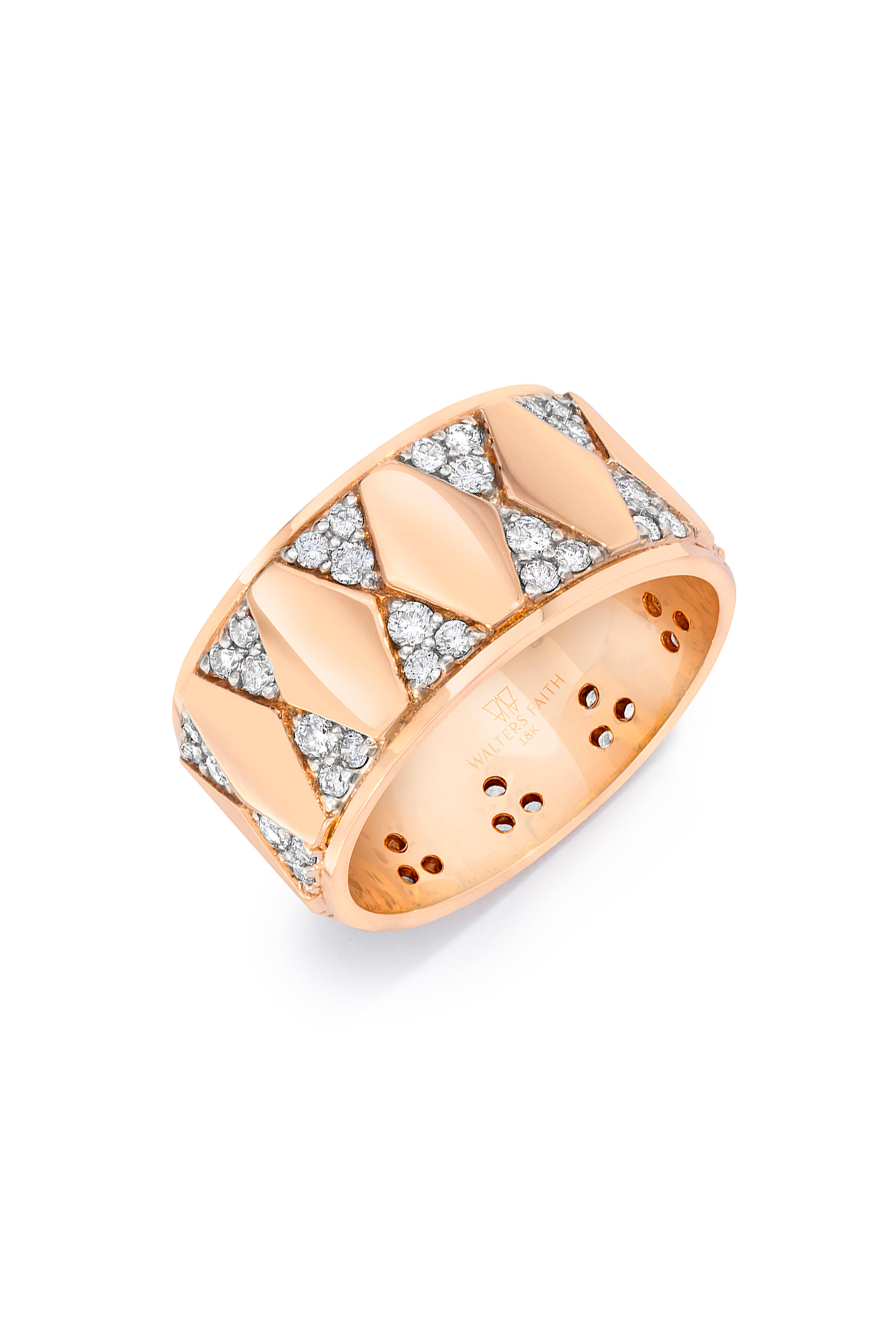 18K Rose Gold Hexagon Pattern Diamond Ring