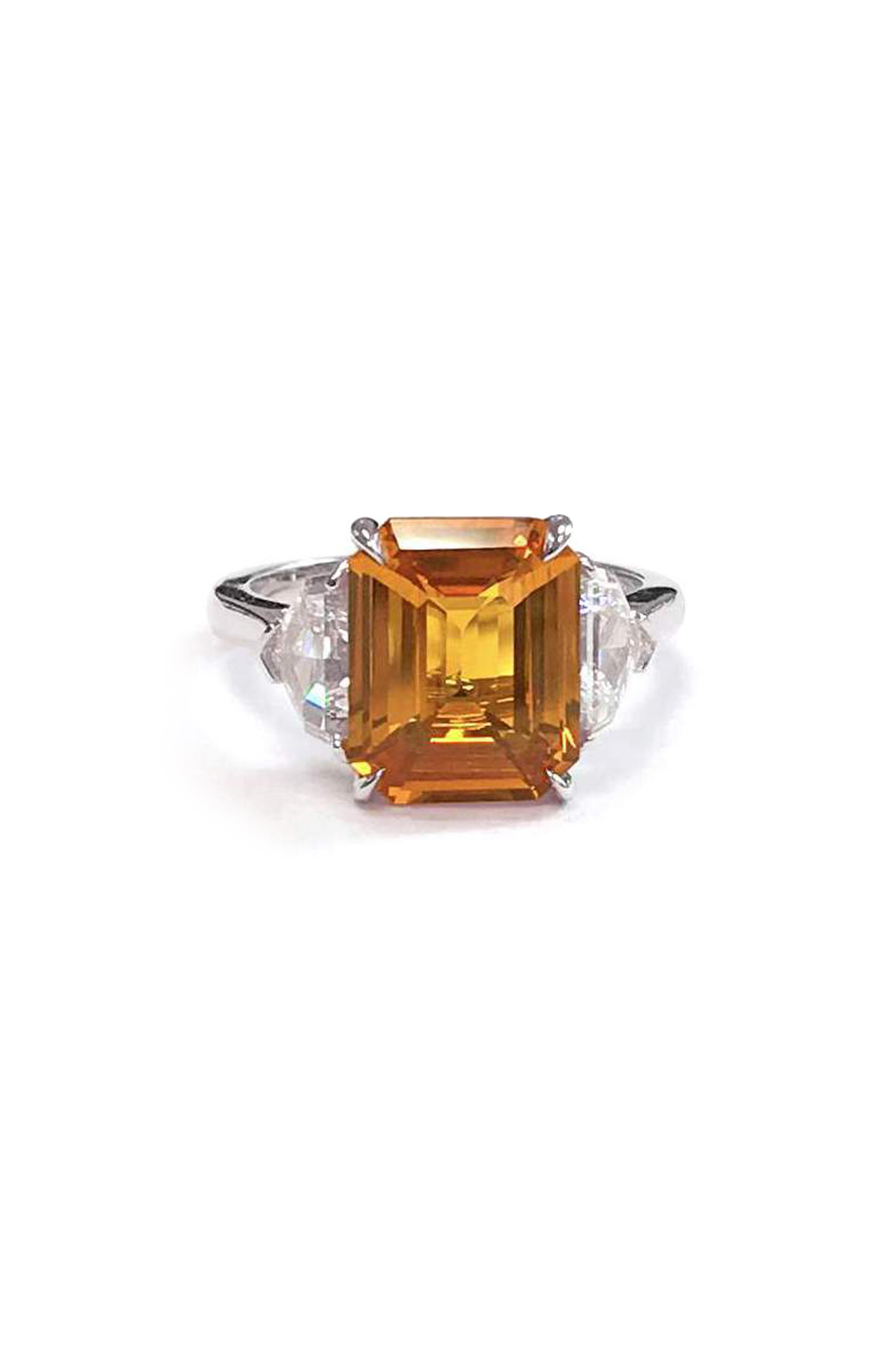 Platinum Orange Sapphire & Diamond Cocktail Ring