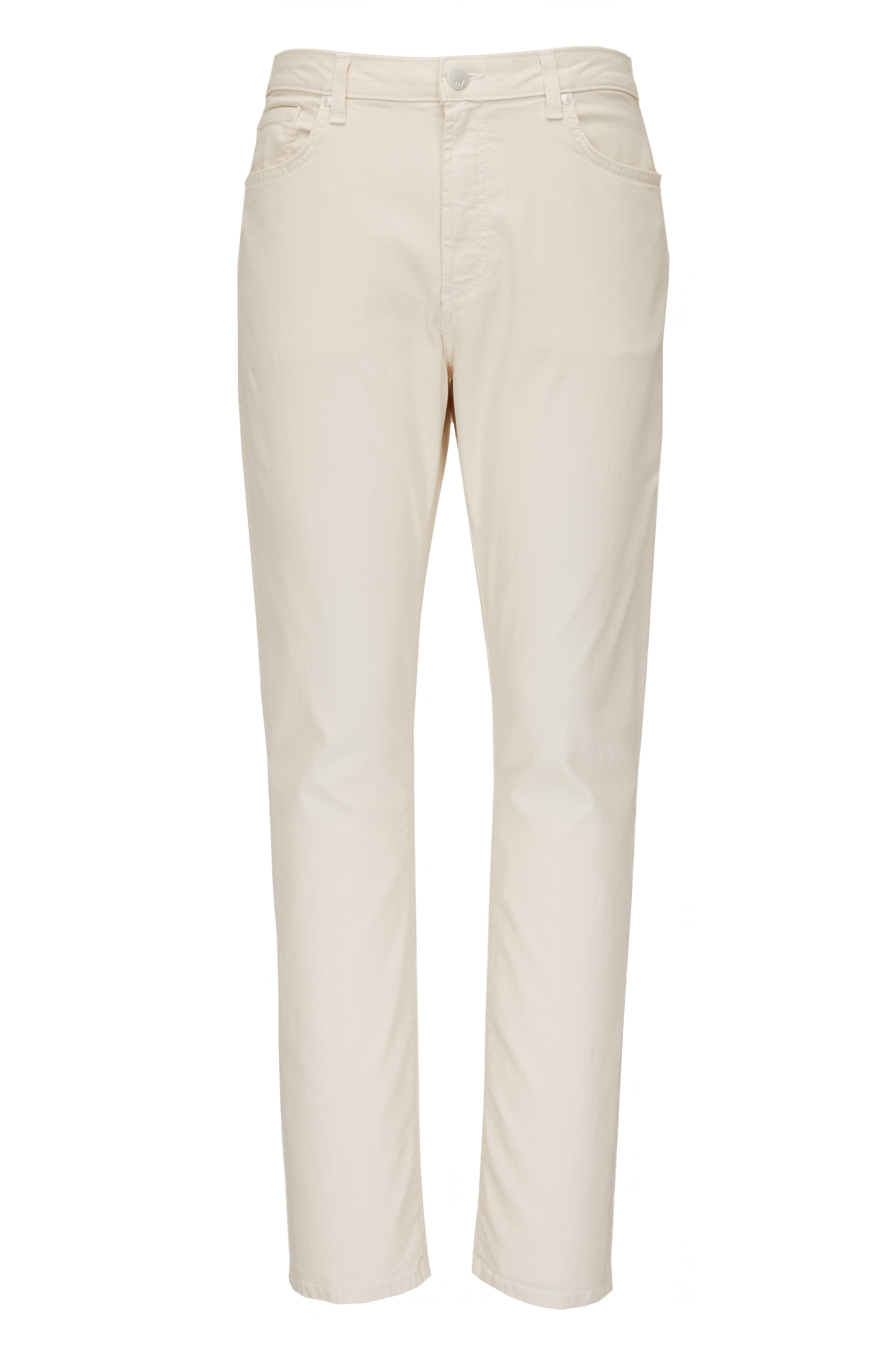 Five pocket styling. Tonal stitching. Made in the USA. 32" inseam. 72% cotton, 24% polyethylene, 4% polyurethane. Machine wash.