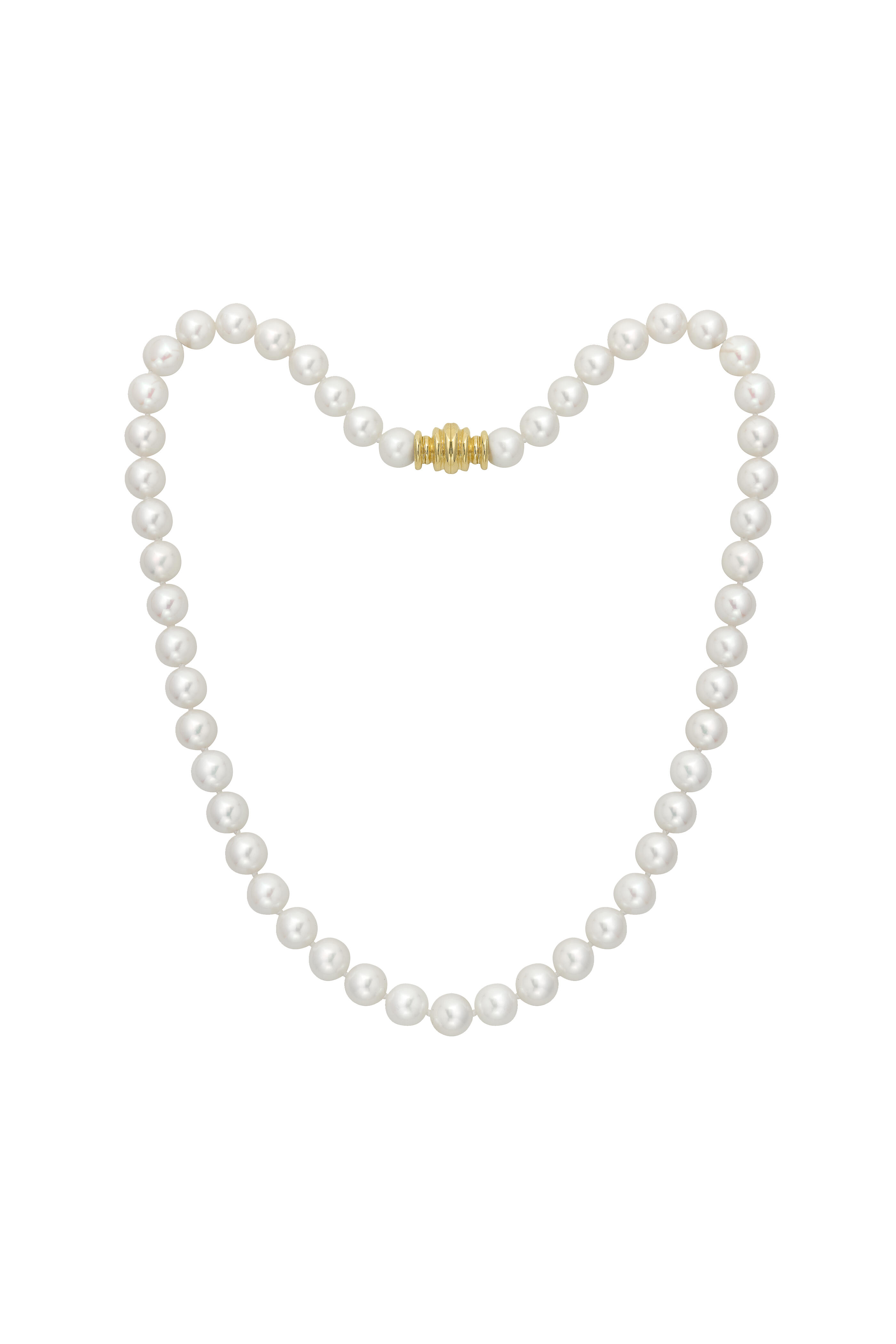 18KY. 9.0-9.5MM Akoya pearls. 18" length.
