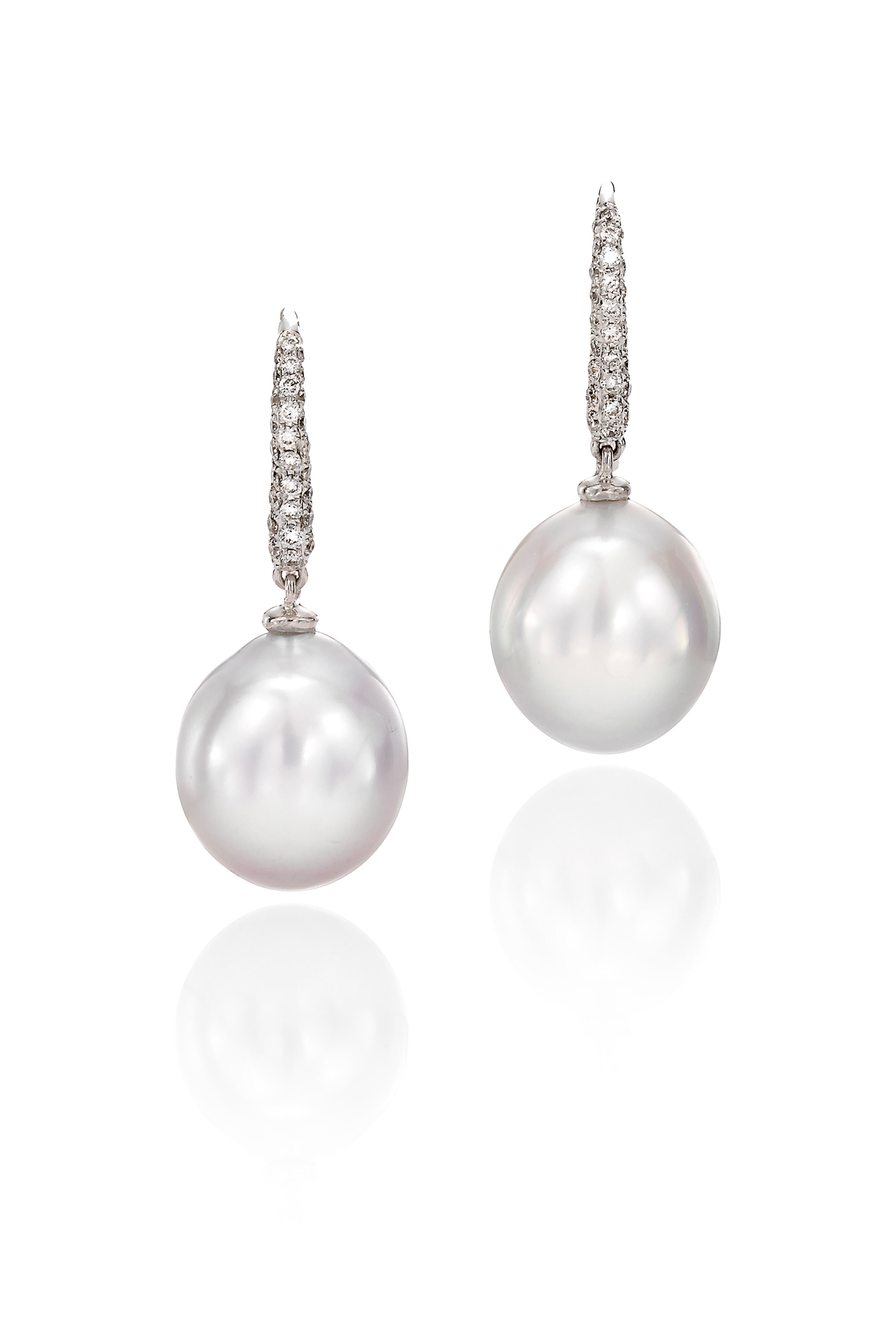 18KW. 14.7 X 14.0 X 13.7mm South Sea pearls. .21CT white diamonds.