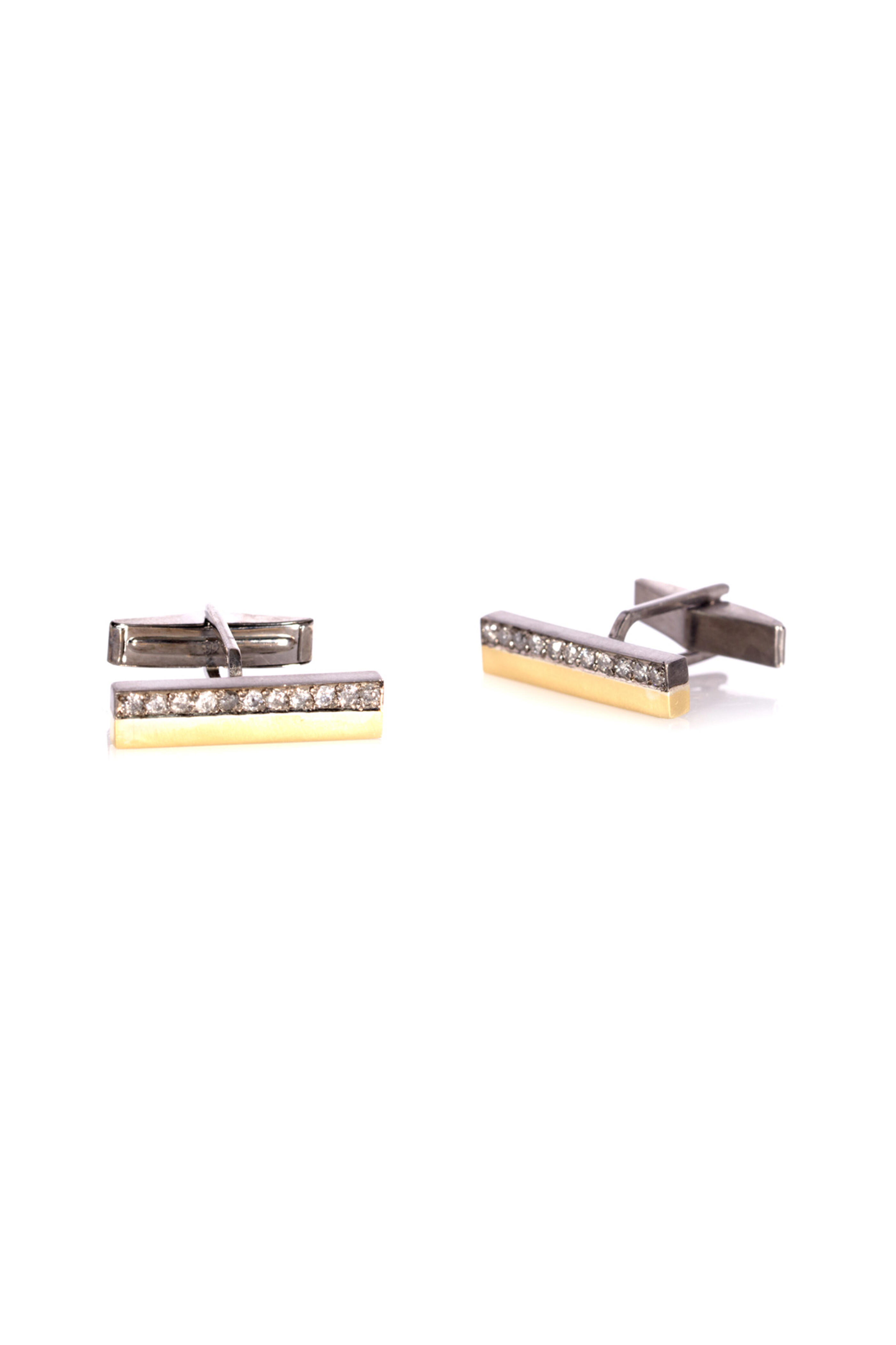 18k Yellow Gold Gray Diamond Bar Cufflinks