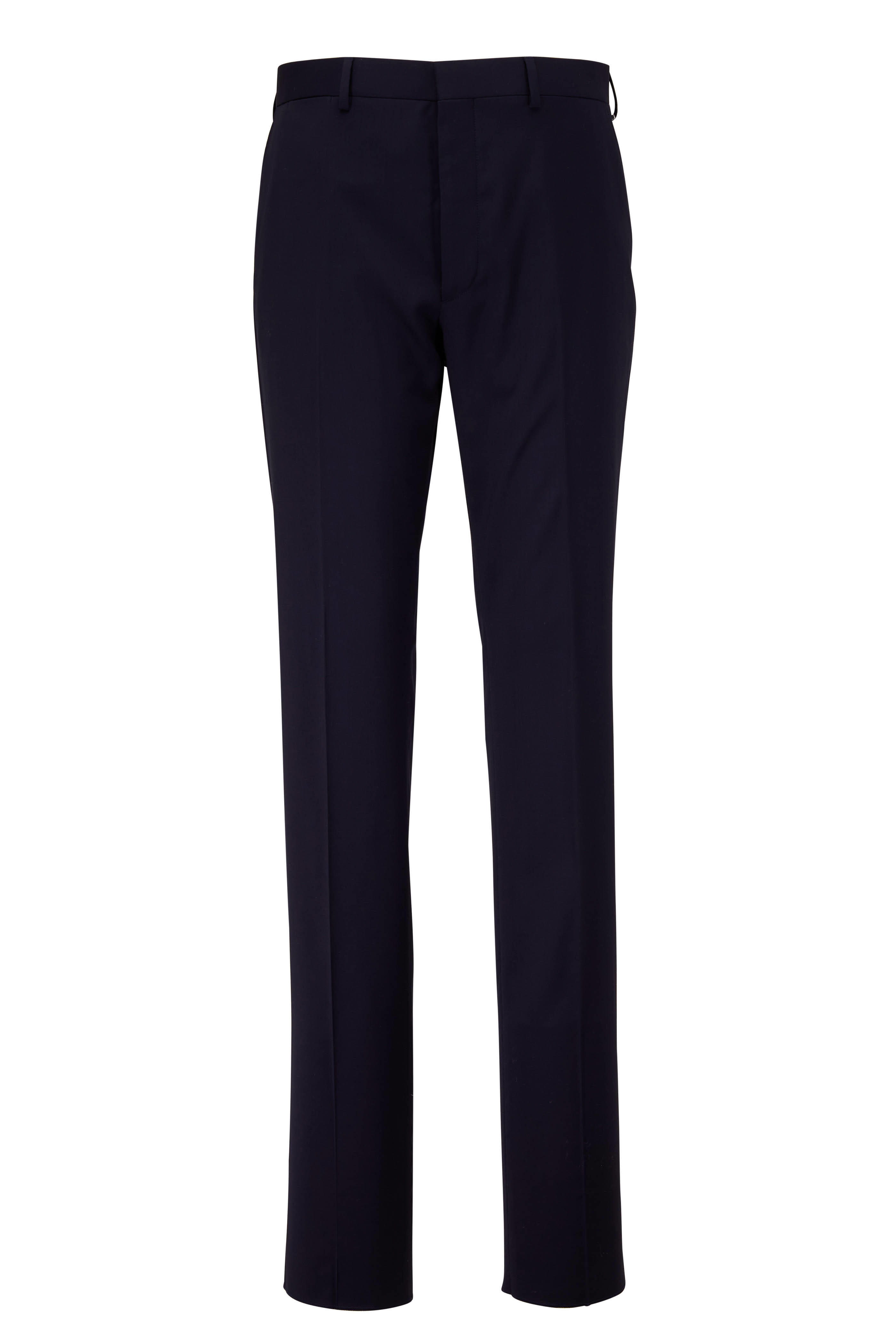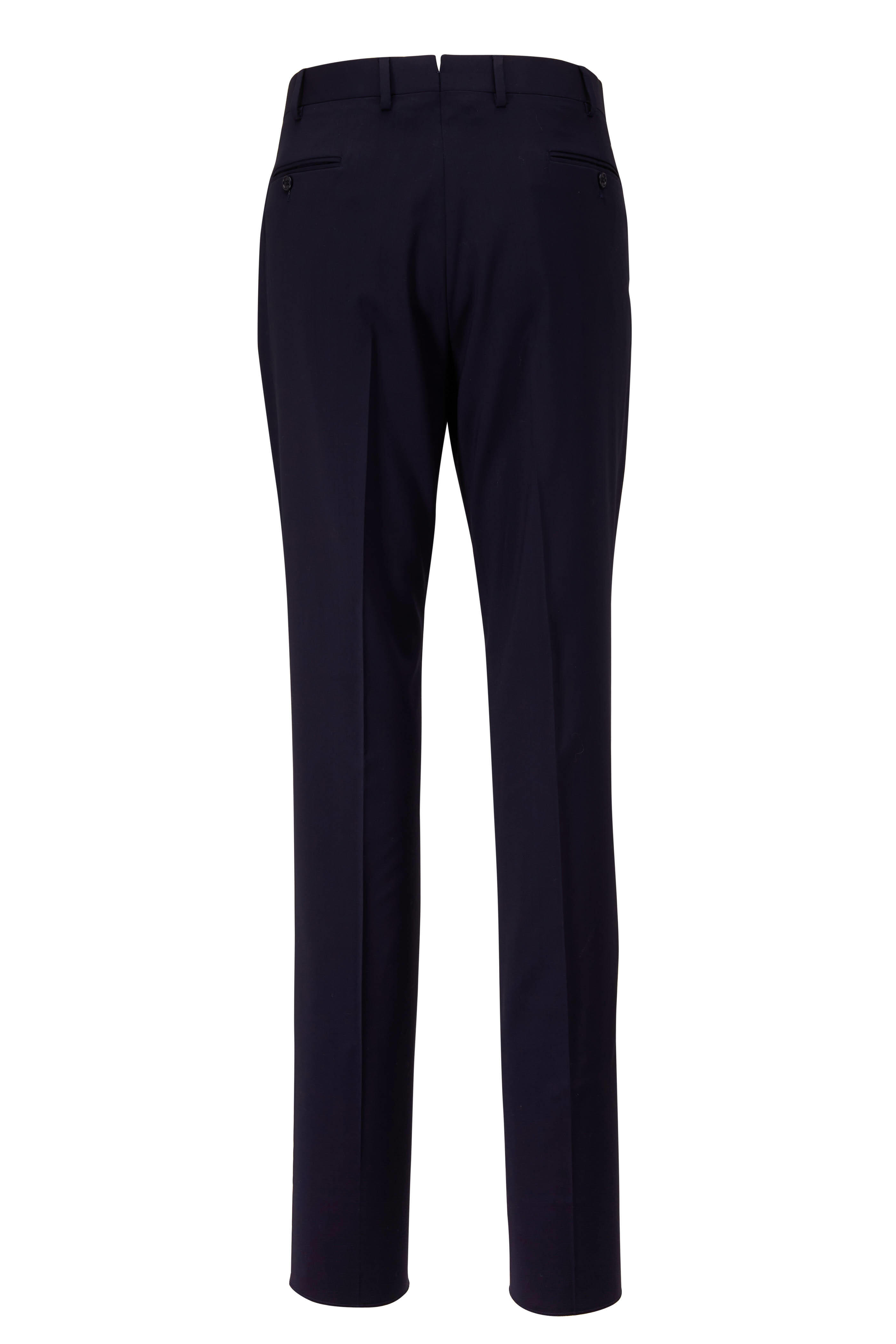 Front slash pockets. Back welt pockets. Made in Italy. 100% wool. Dry clean.