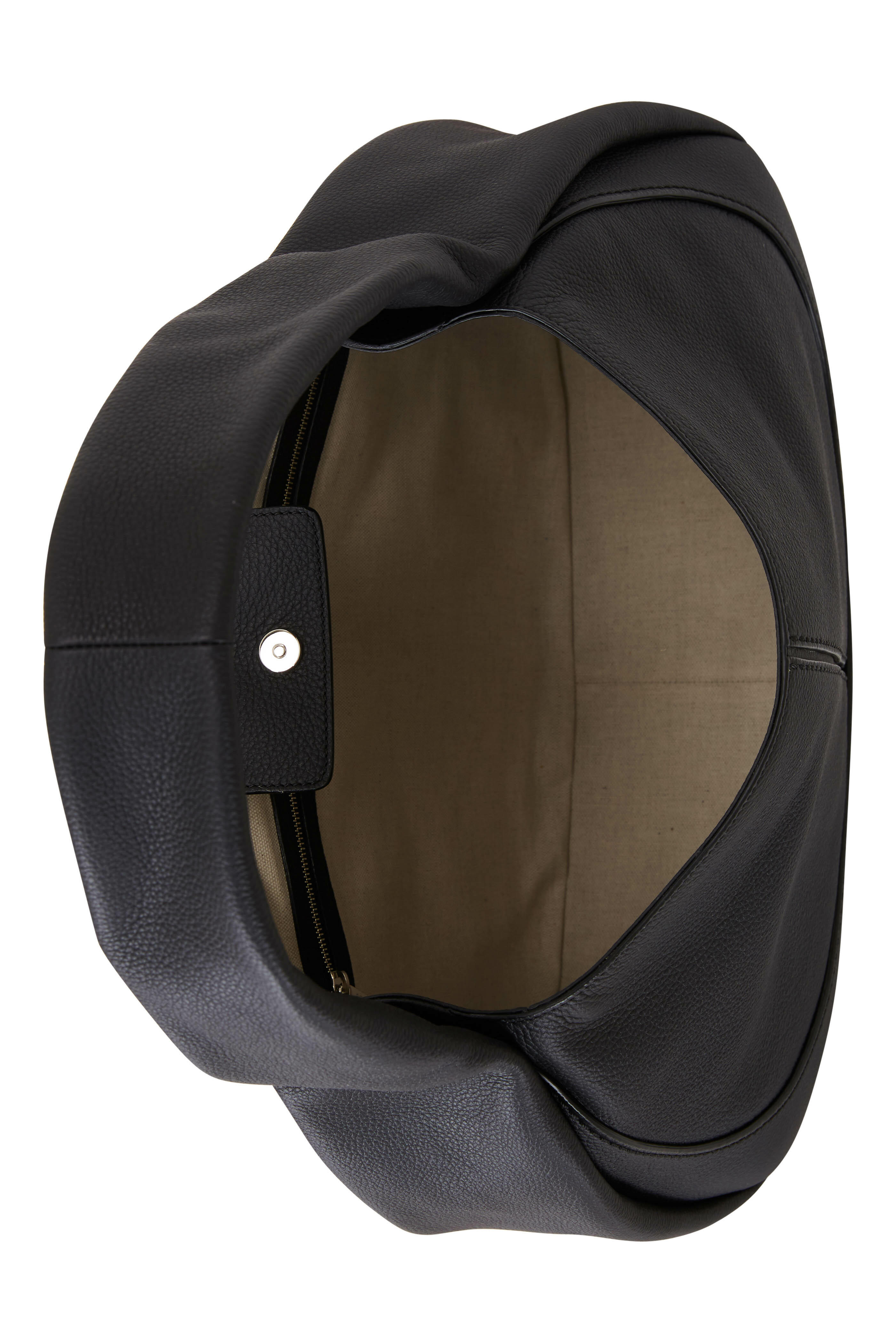 Hammered leather. Single top handle. Contrast stitching. Stamped logo detail. Made in Italy. 17" x 12.6" x 6".