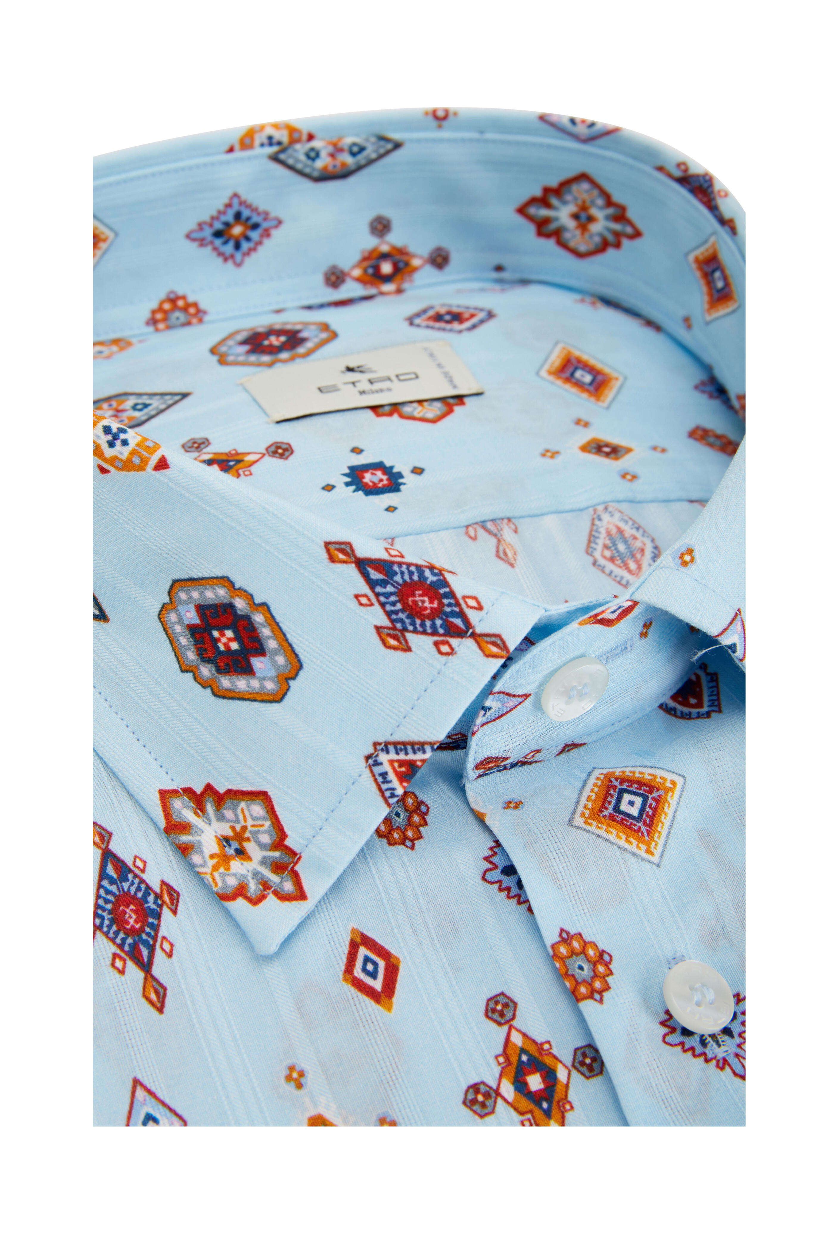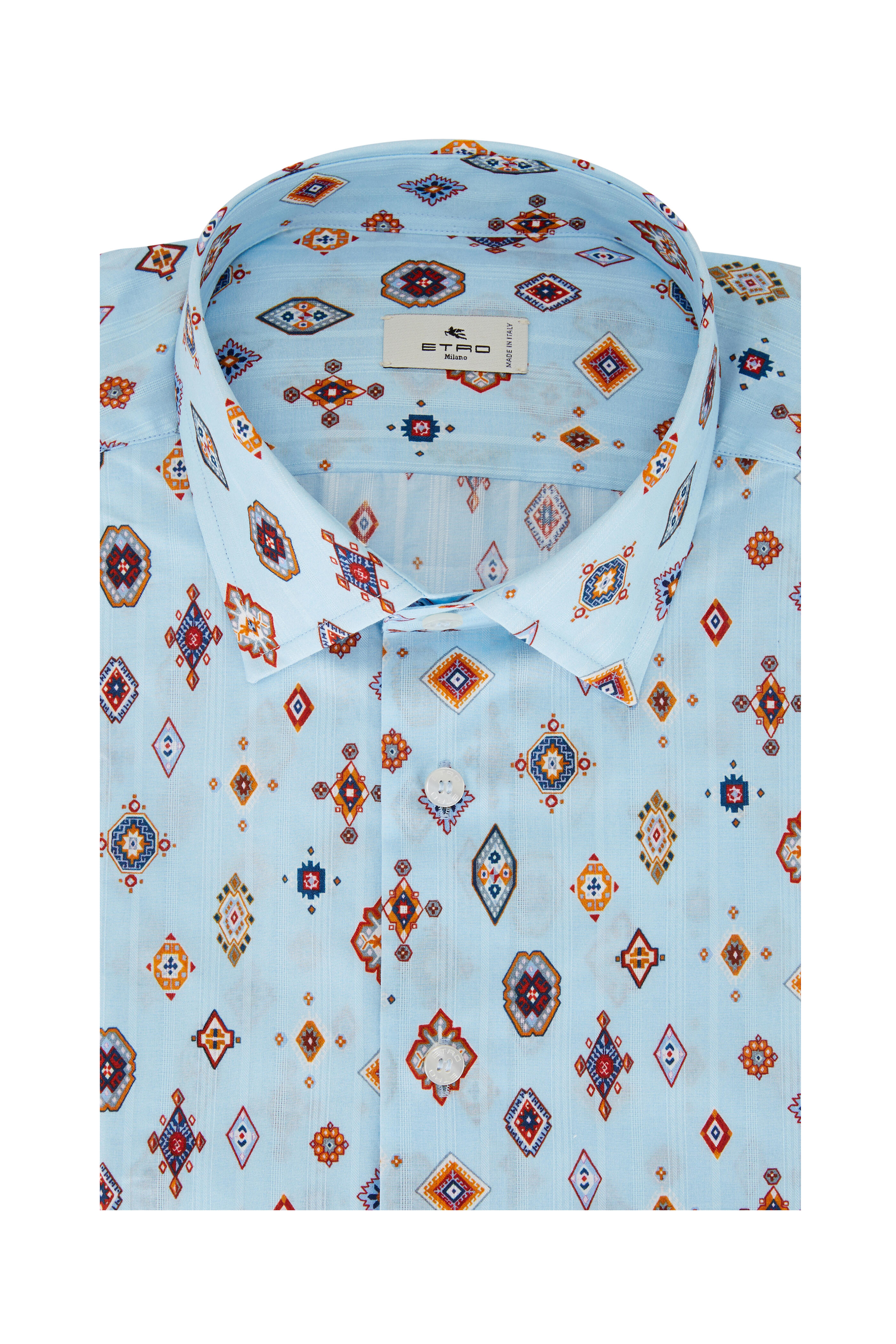 Spread collar. Single button barrel cuffs. Made in Italy. 100% cotton. Machine wash.