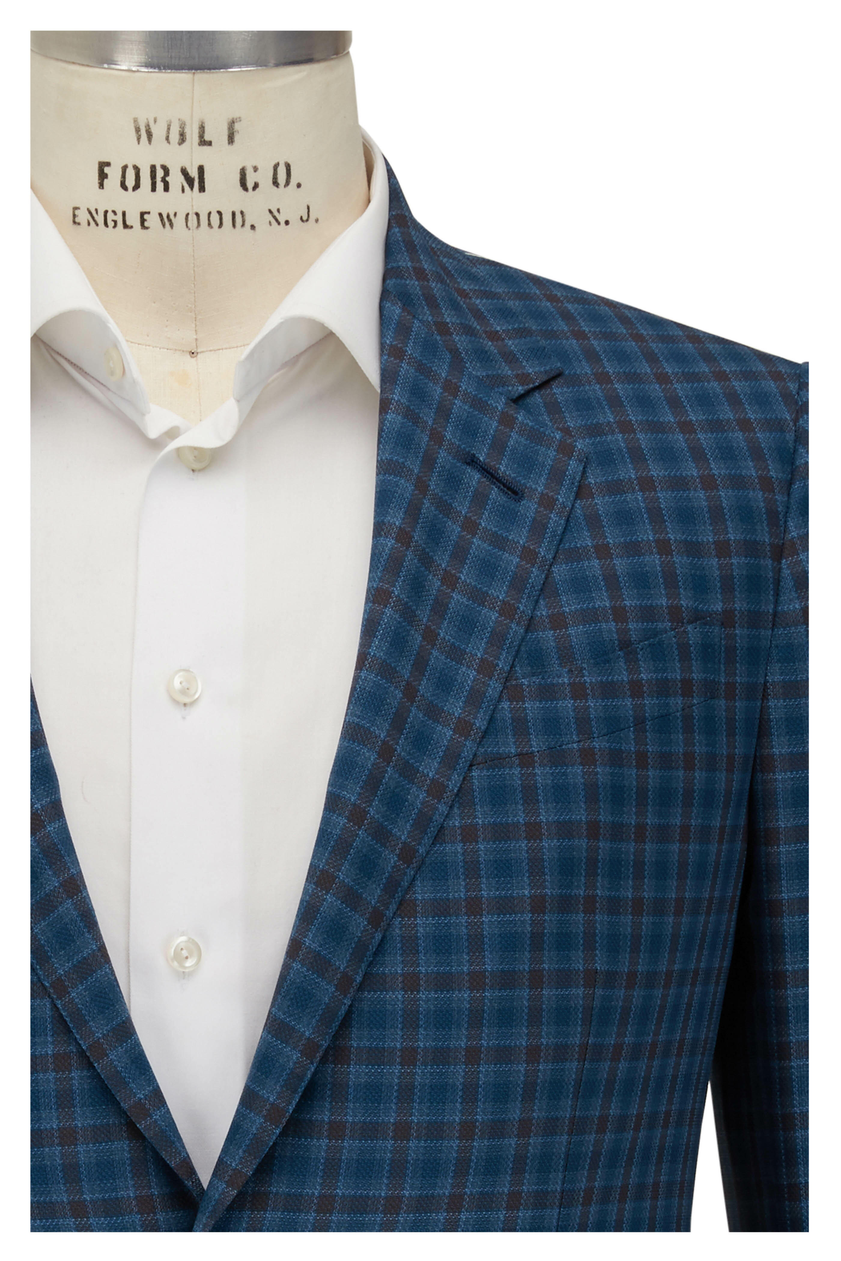 Notched lapels. Two button closure. Lower flap pockets; chest welt pocket. Double vent. Made in Italy. 100% wool; fully lined. Dry clean.
