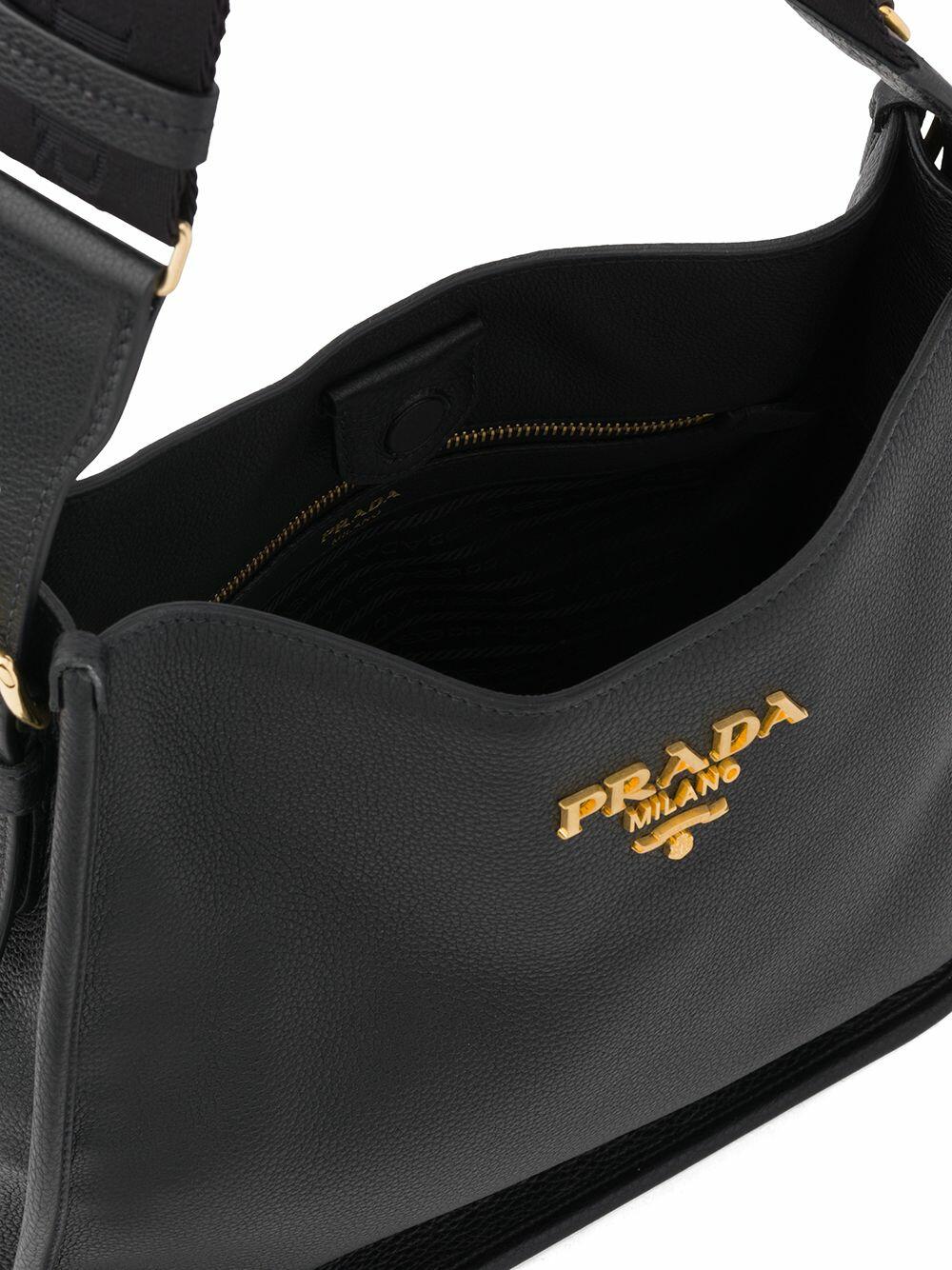 Calfskin leather. Detachable adjustable multicolor fabric shoulder strap. Open top with magnetic closure. One interior slip pocket and one interior zip pocket. Gold logo detail. Made in Italy. Depth: 4". Width: 11¼". Height: 10". Handle: 19".