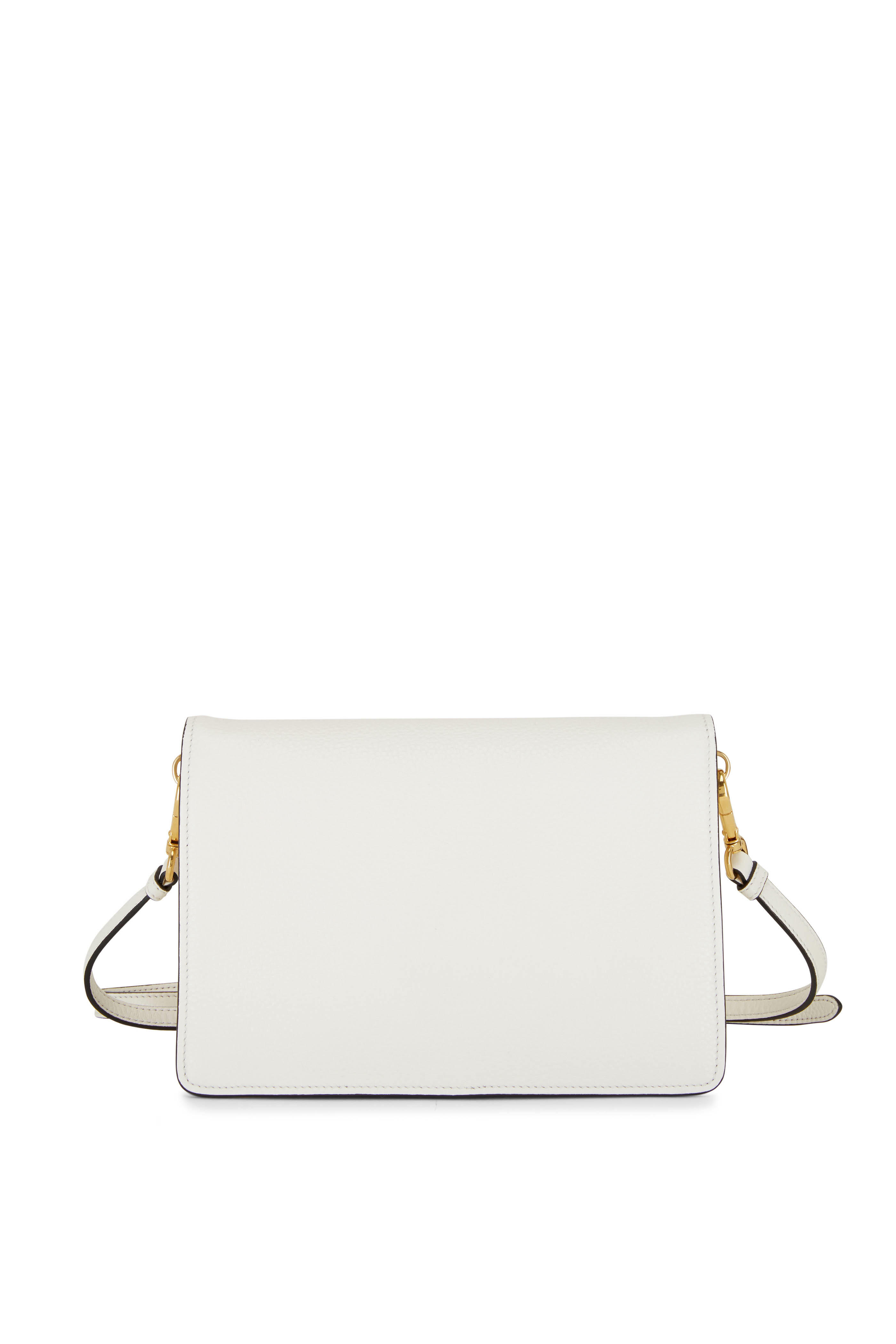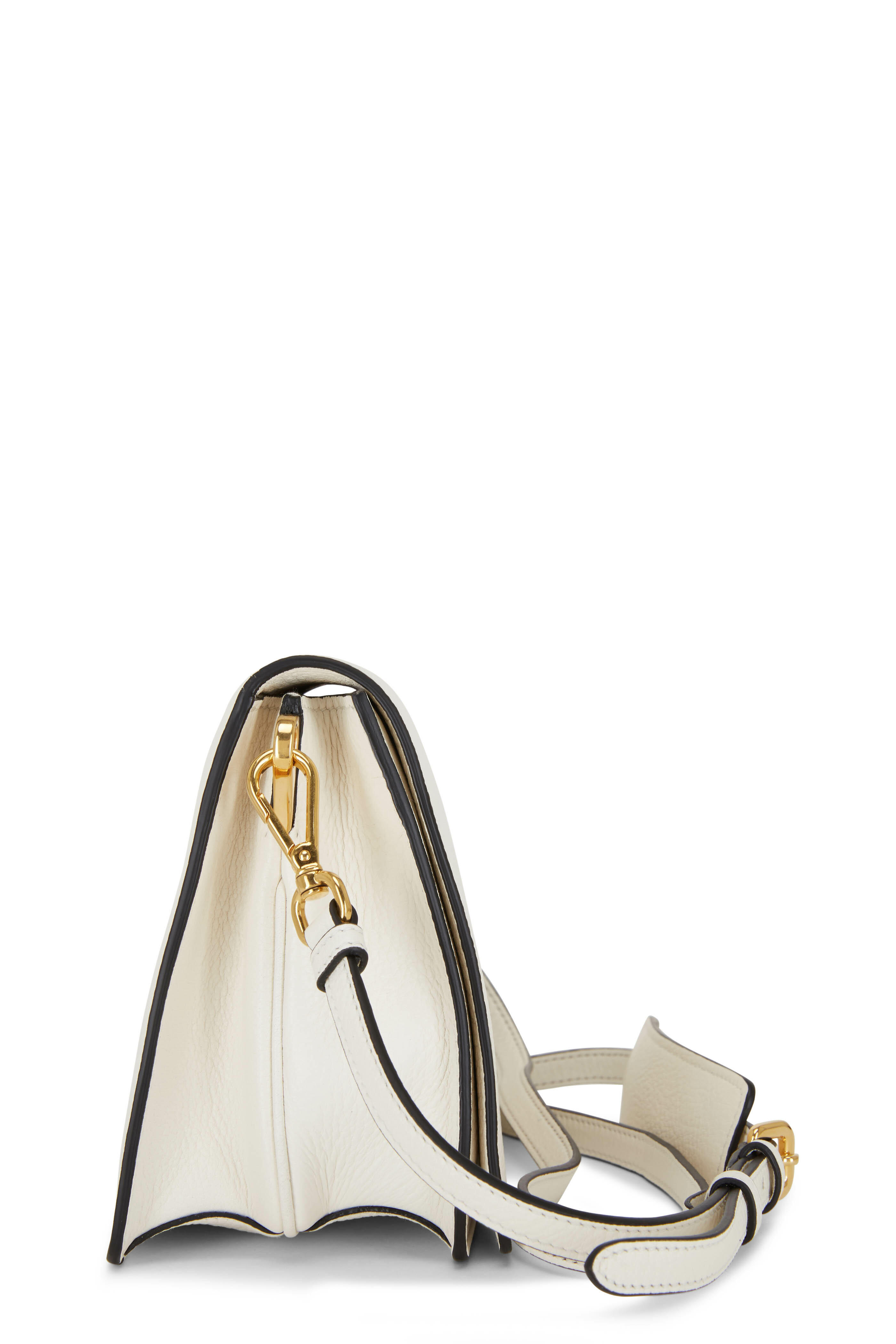 White Leather Front Flap Crossbody