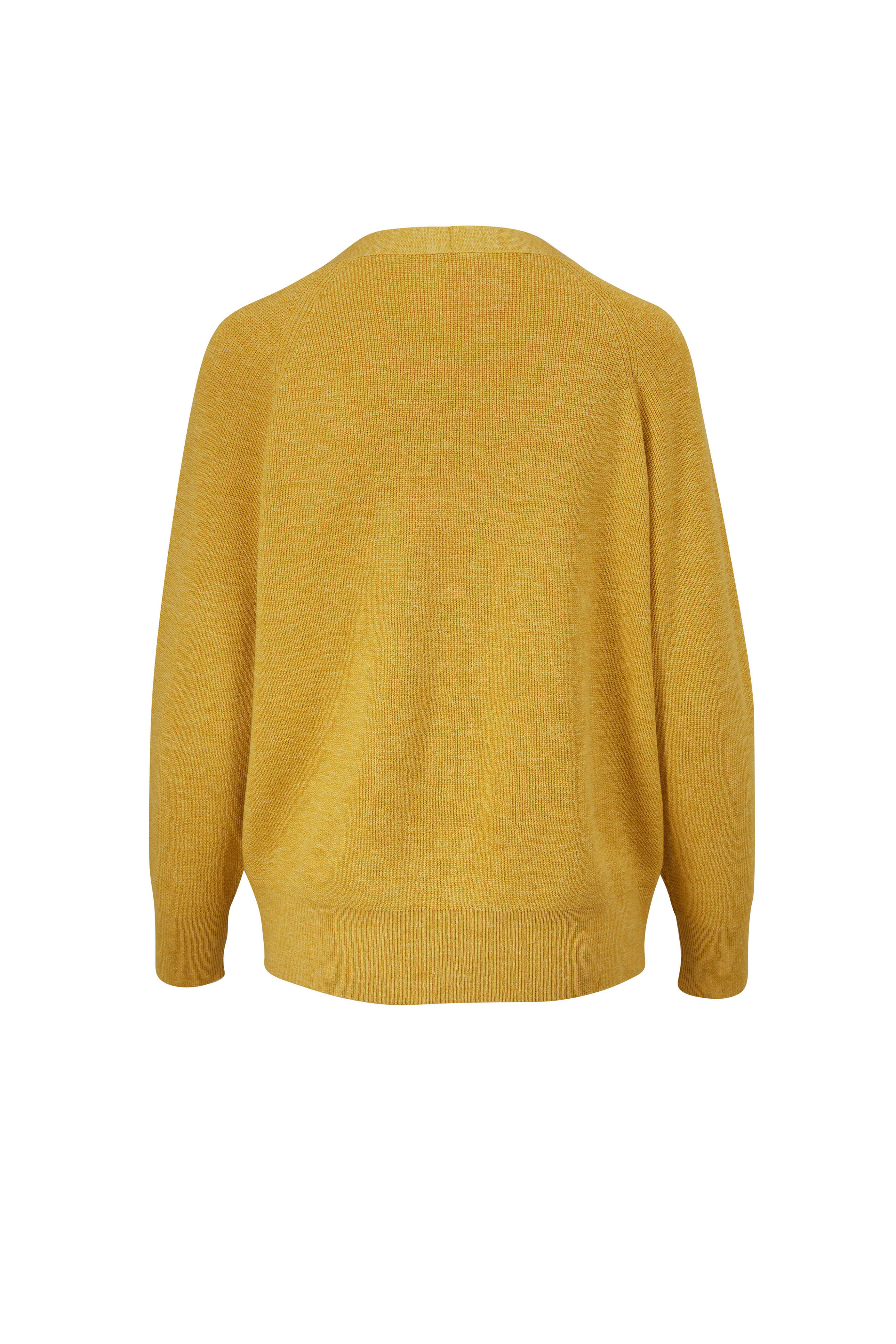 V-neckline. Button placket. Imported. 60% mulberry silk, 35% linen, 5% elastane. Dry clean.