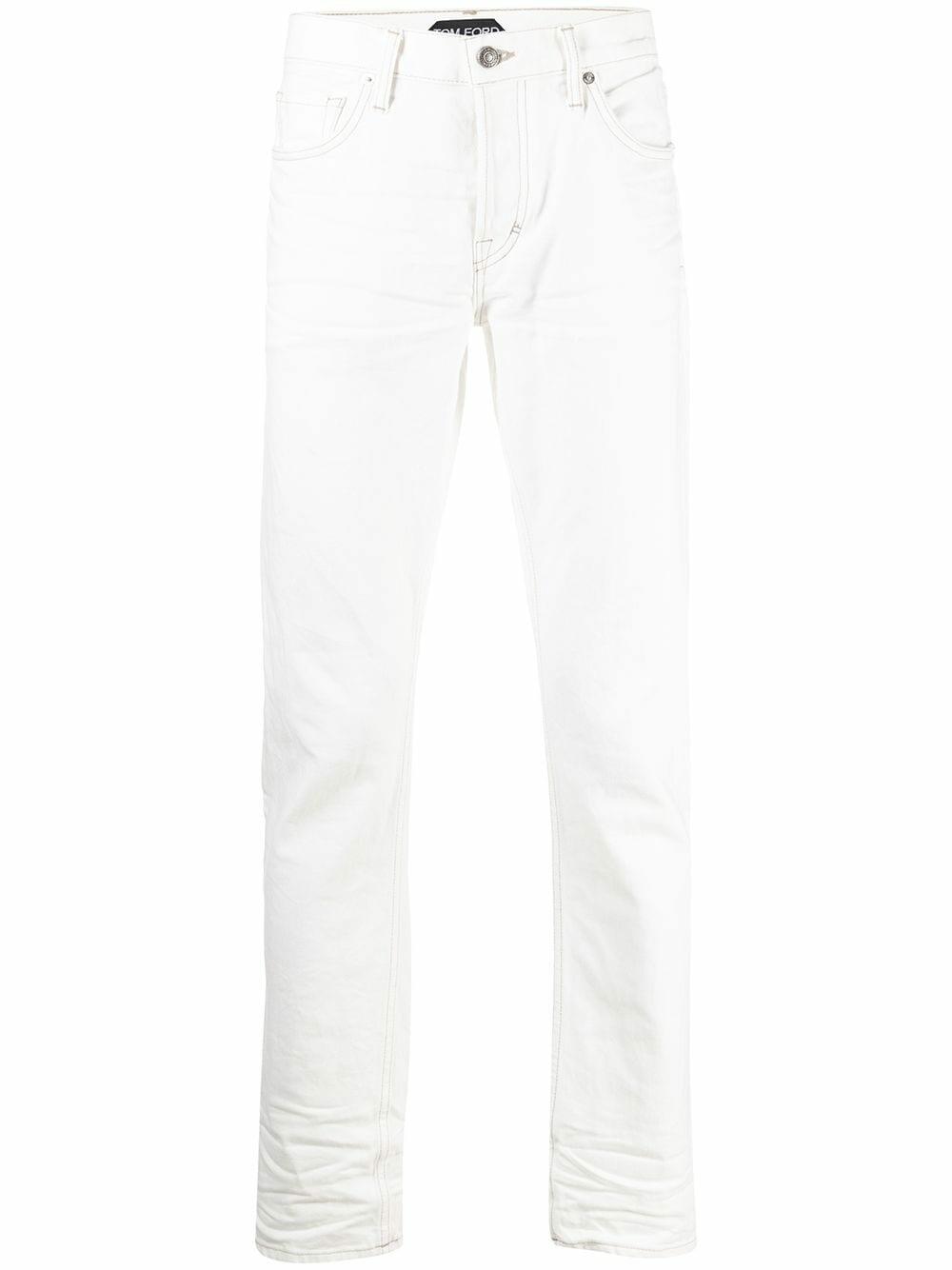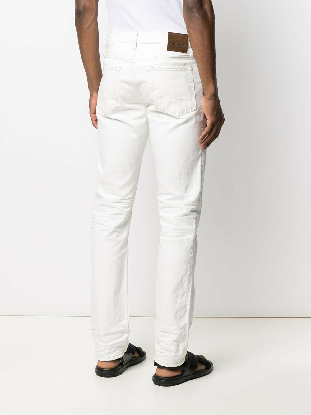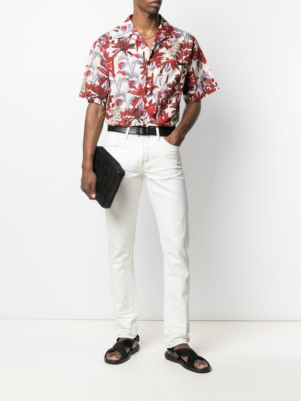 Concealed four button fly. Five pocket styling. Contrast stitching. Made in the USA. Slim fit. 31" inseam. 97% cotton, 3% elastane. Machine wash.