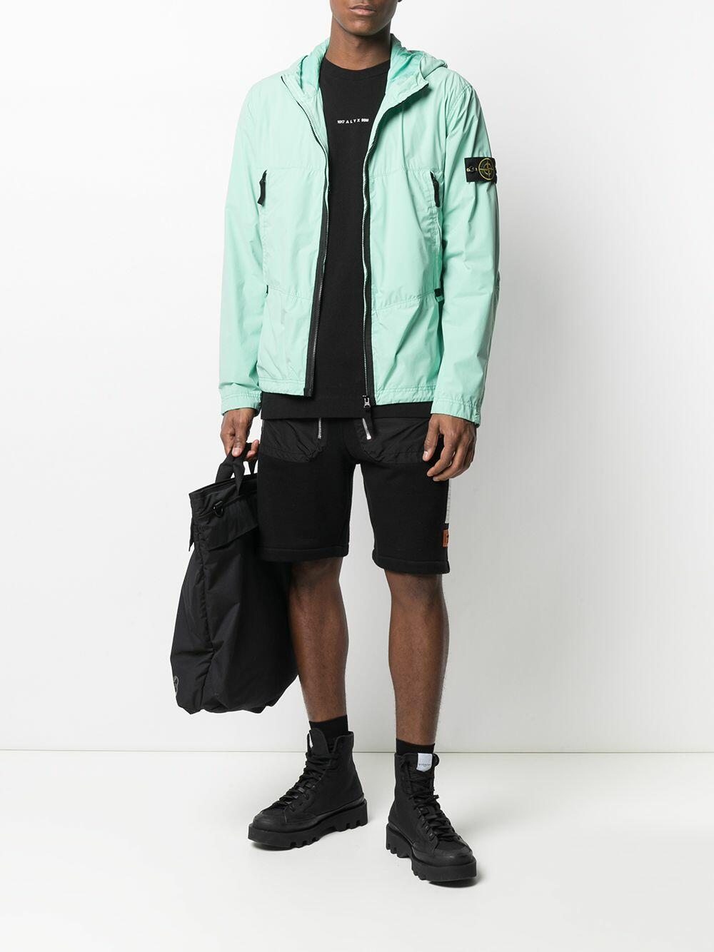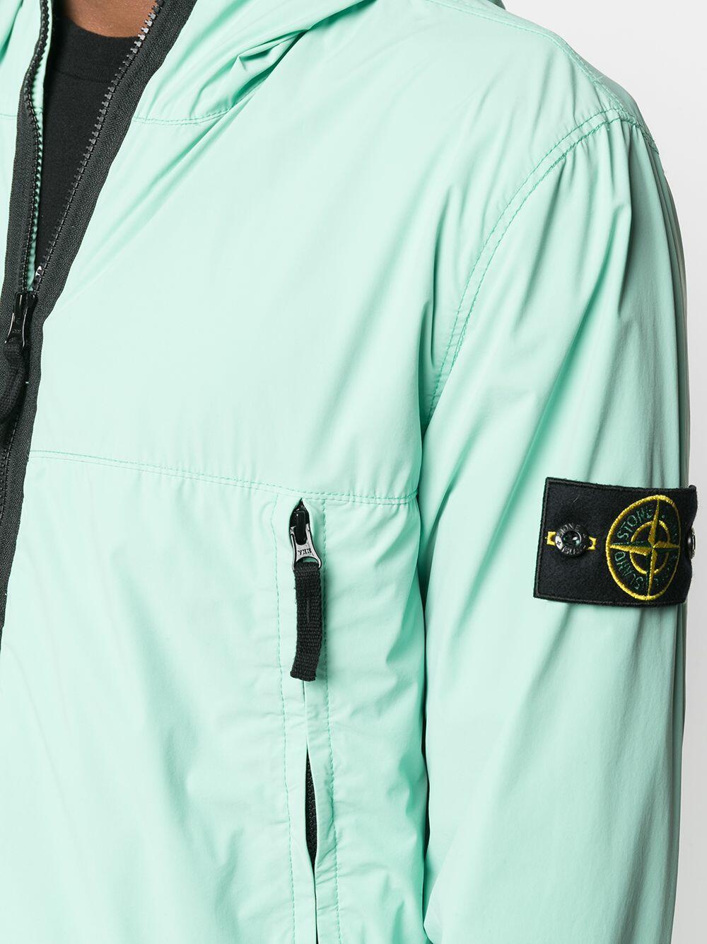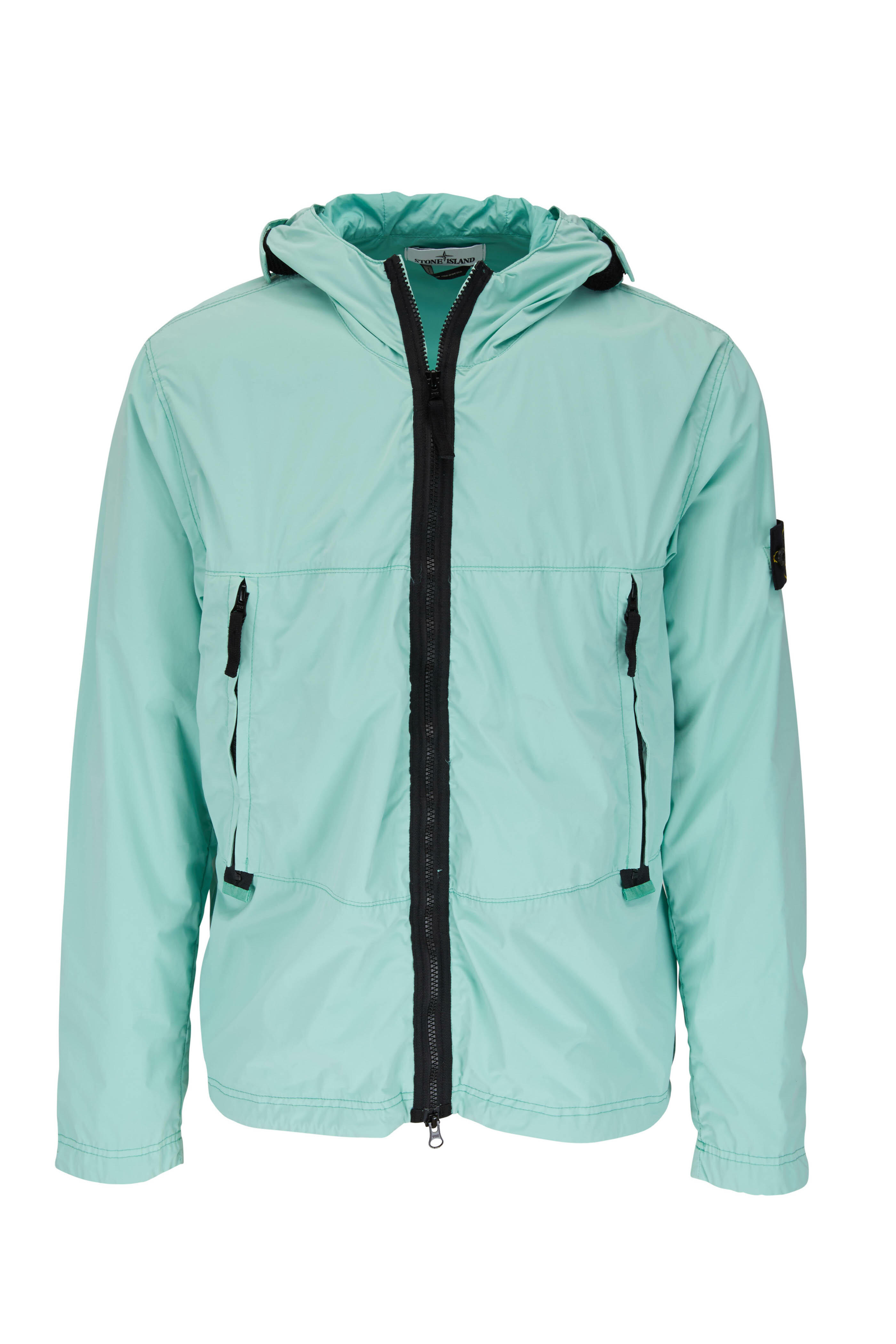 Attached hood. Front two-way zip. Adjustable snap cuffs. Front vertical zip pockets. Logo patch at left sleeve. Imported. 82% polyamide, 18% elastane. Machine wash.