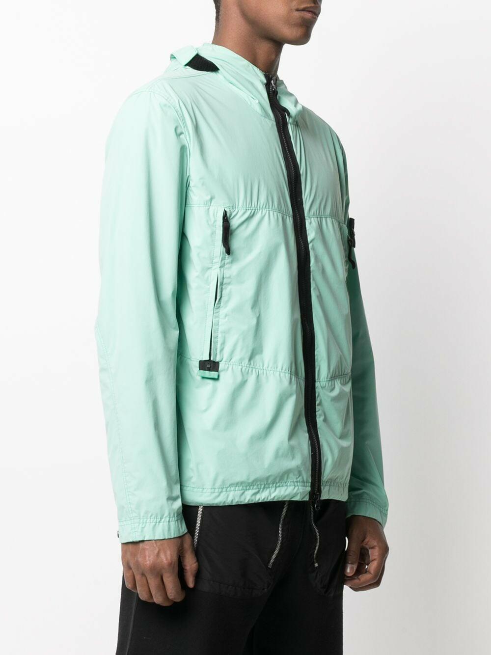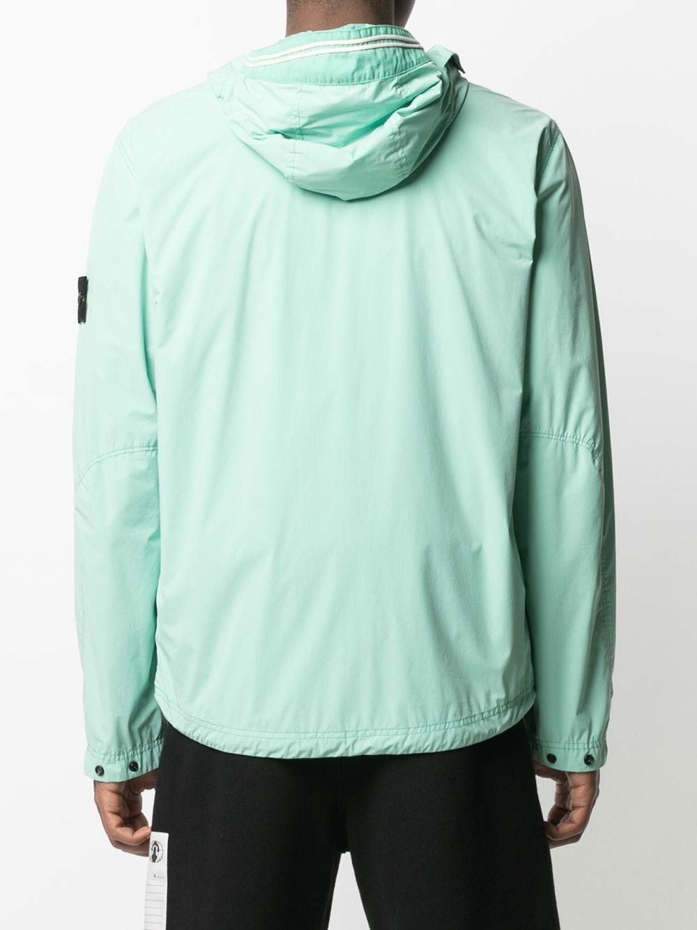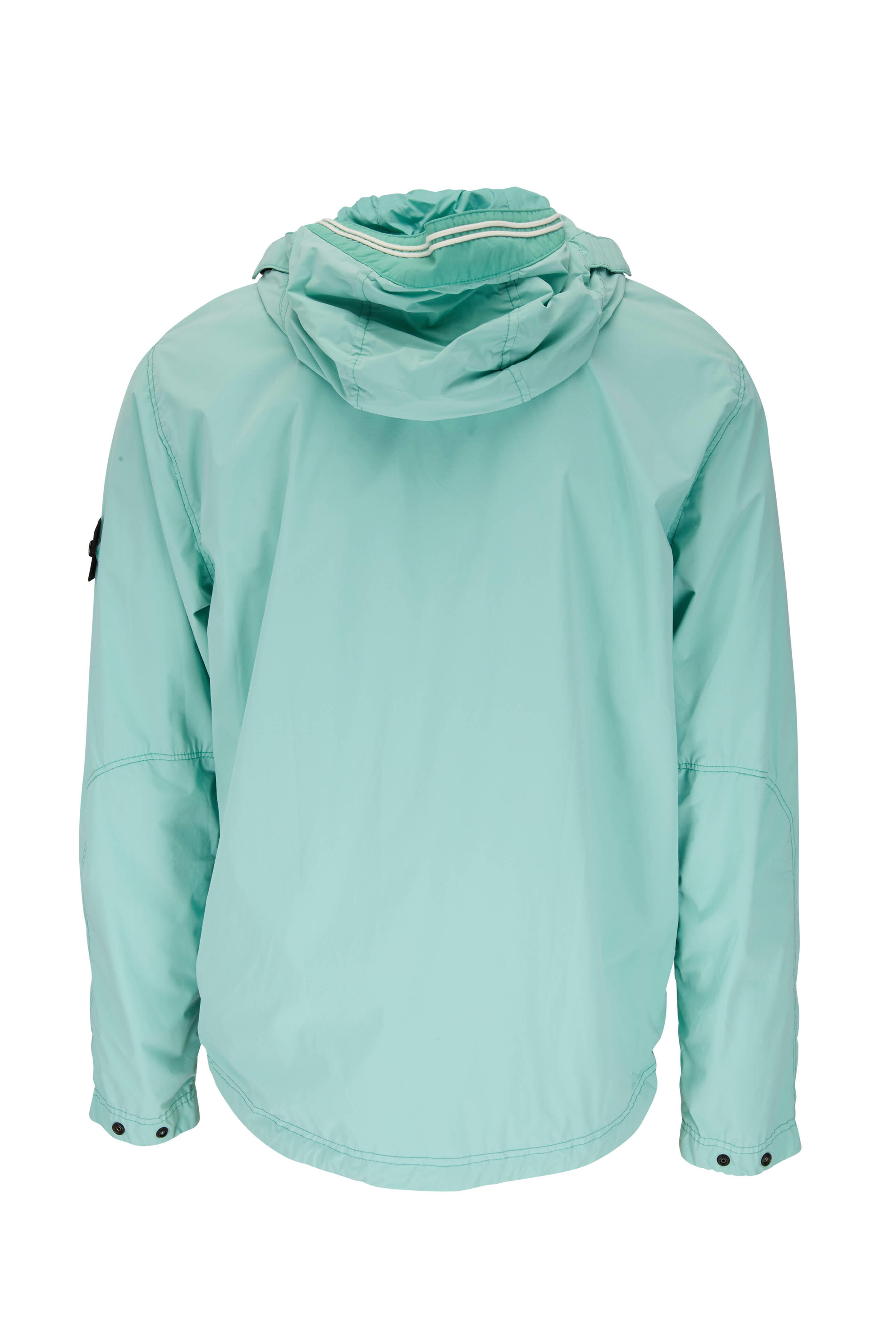 Attached hood. Front two-way zip. Adjustable snap cuffs. Front vertical zip pockets. Logo patch at left sleeve. Imported. 82% polyamide, 18% elastane. Machine wash.