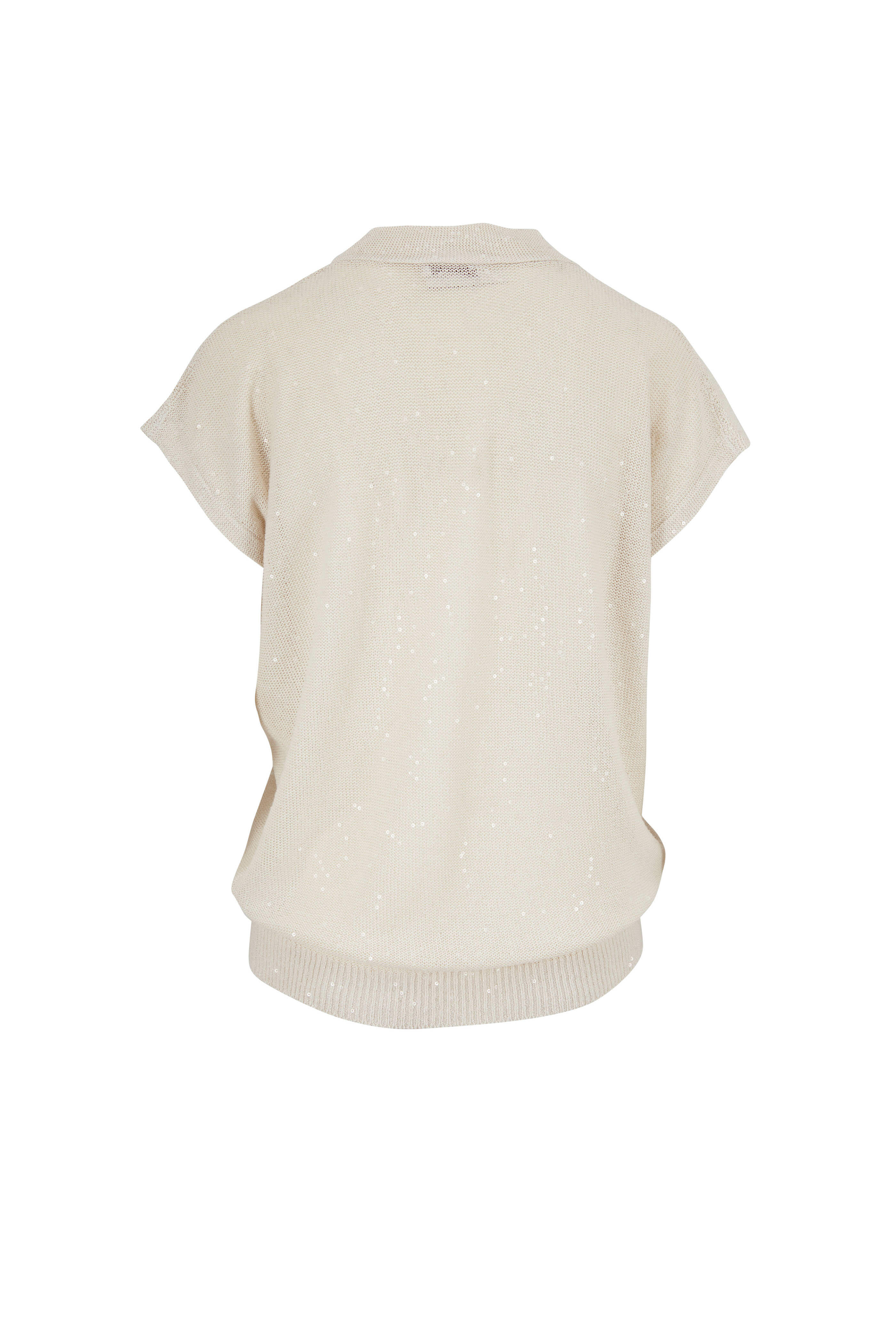 Oat Linen & Silk Paillette Cap Sleeve Knit Top