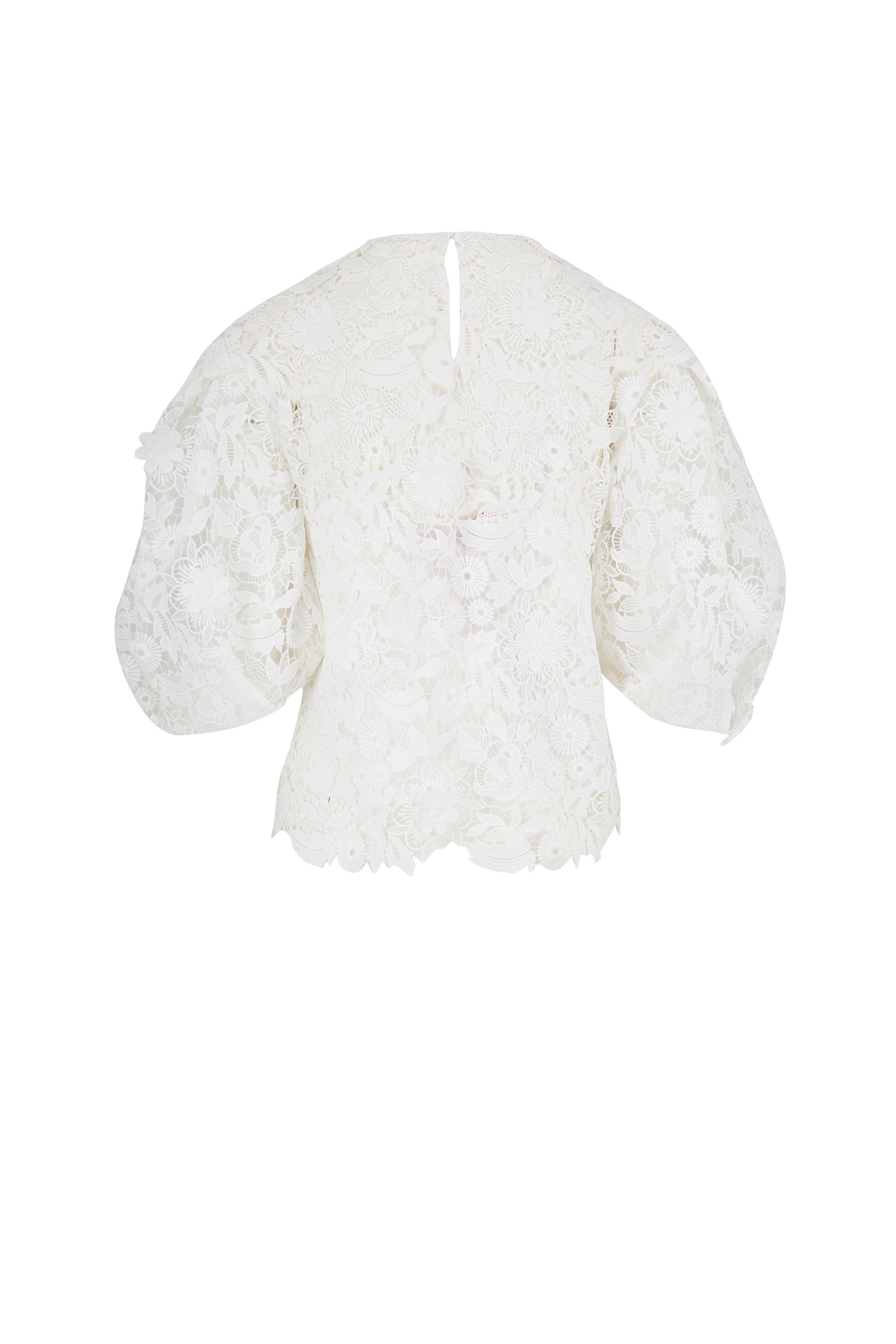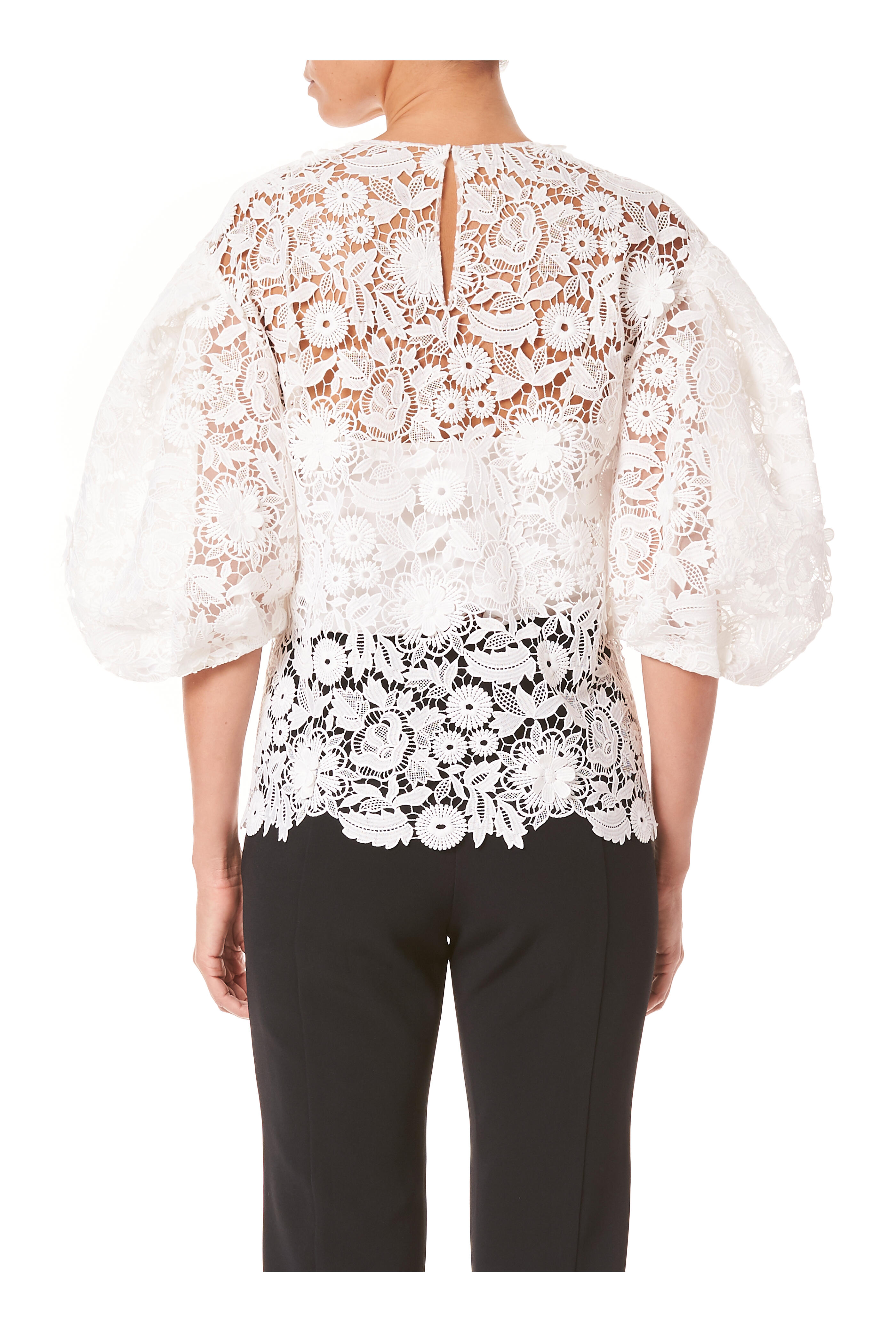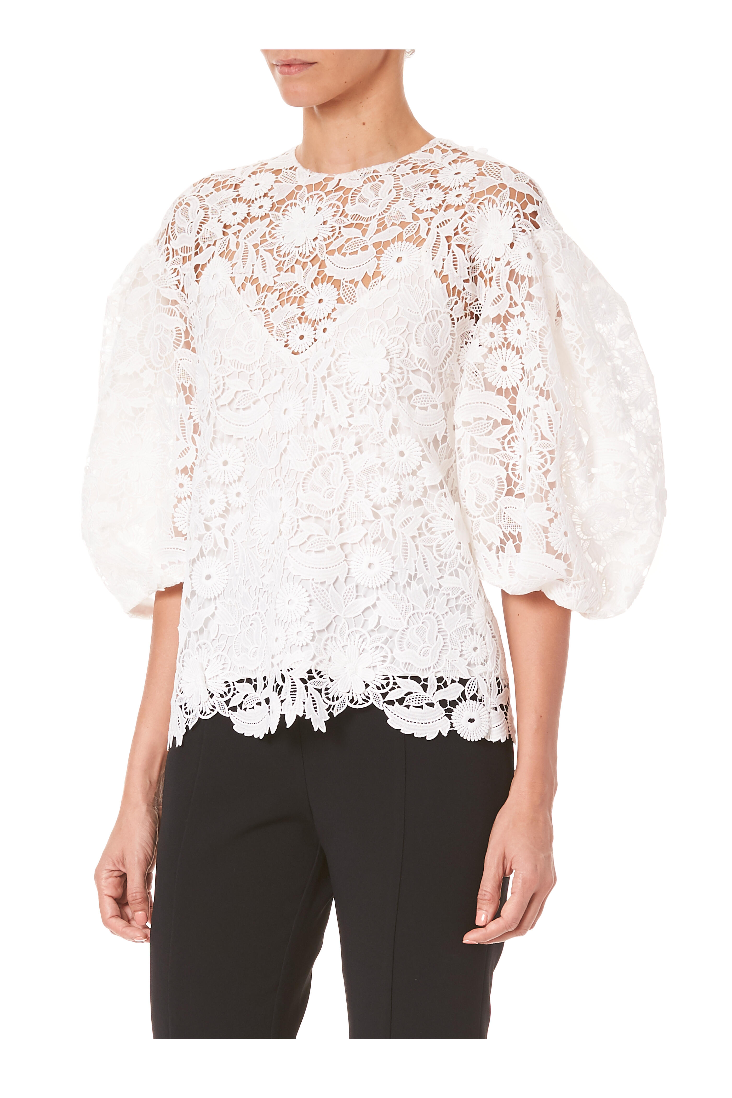 Crew neck. Puffed sleeves. Made in Italy. 100% polyester. Dry clean.