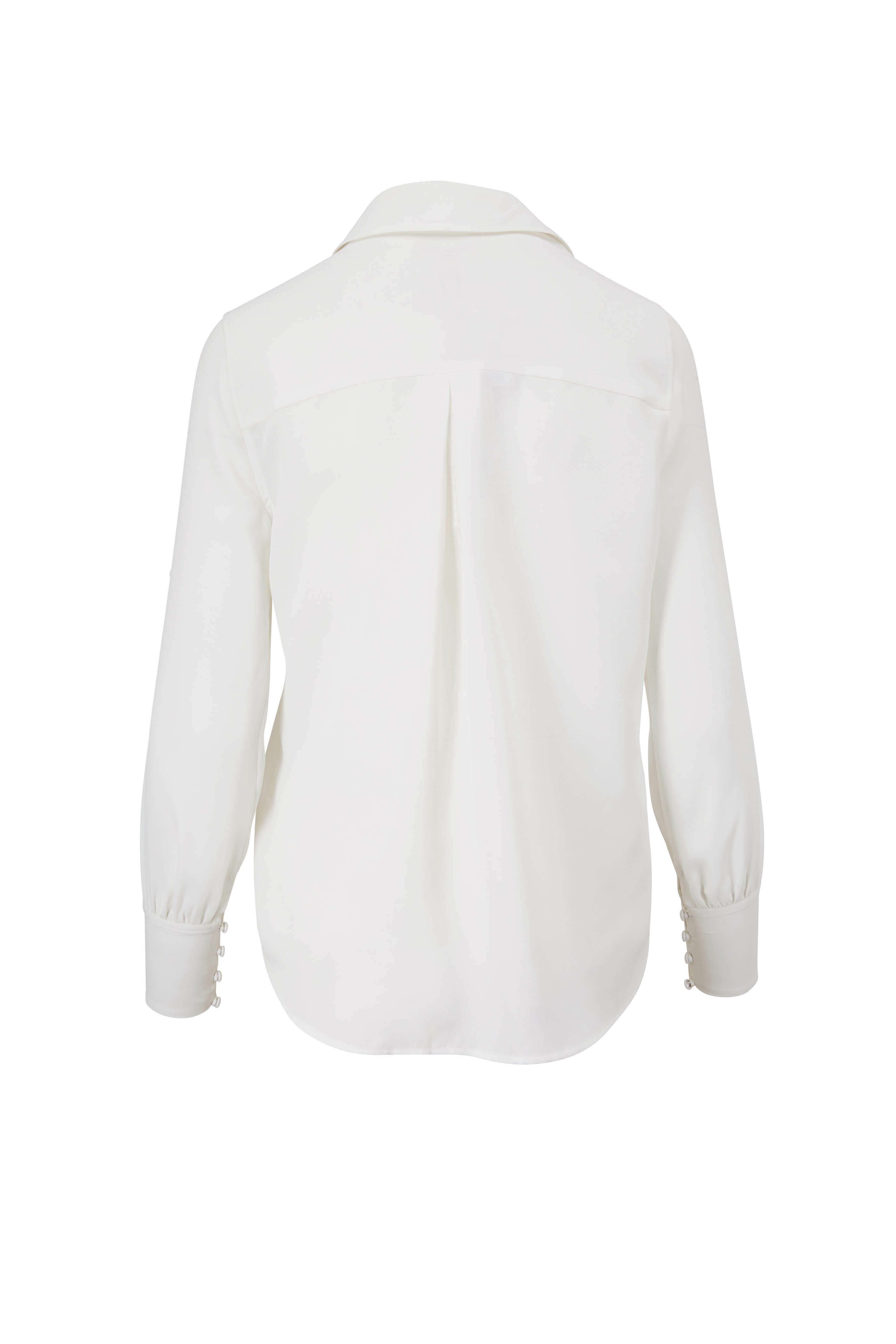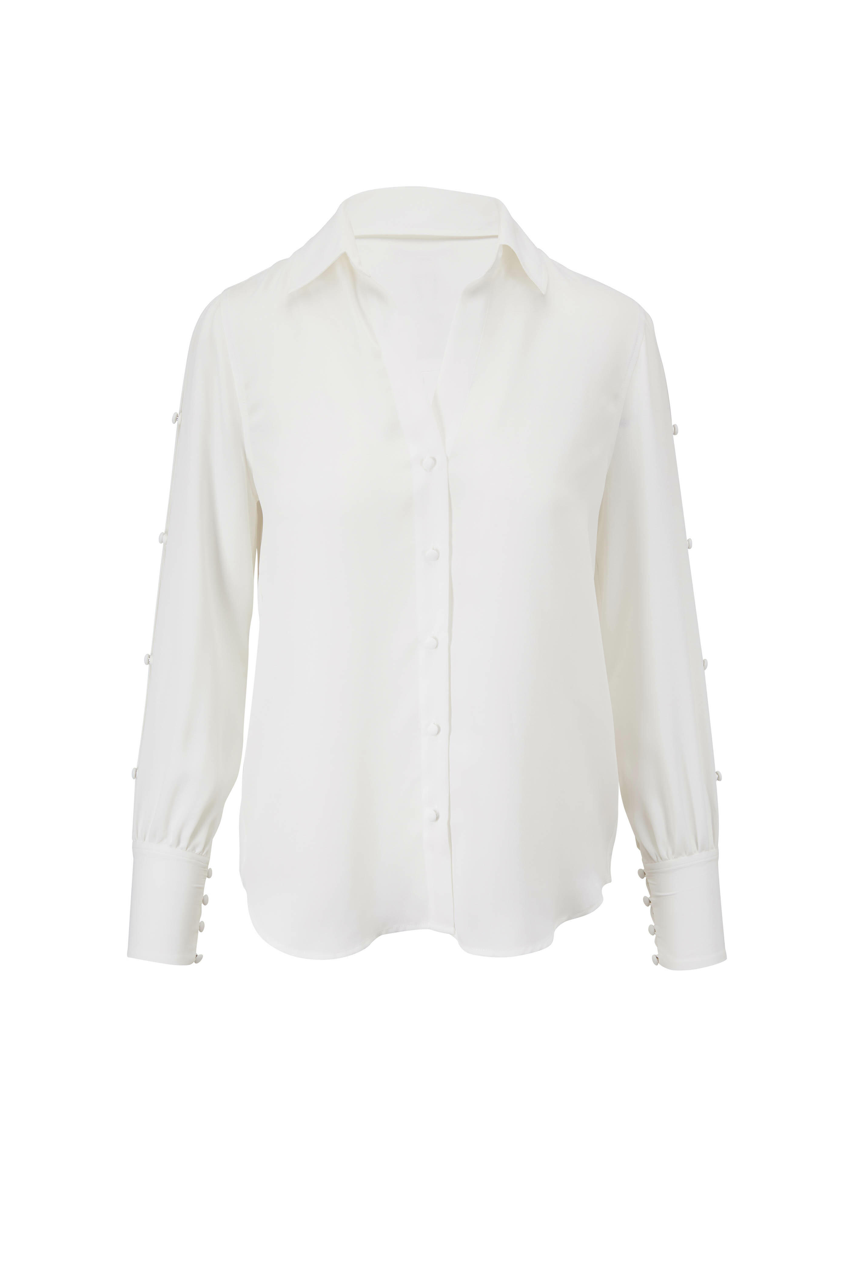 Spread collar. Front button placket. Split sleeves; button detailing. Button cuffs. Imported. 100% polyester. Dry clean.