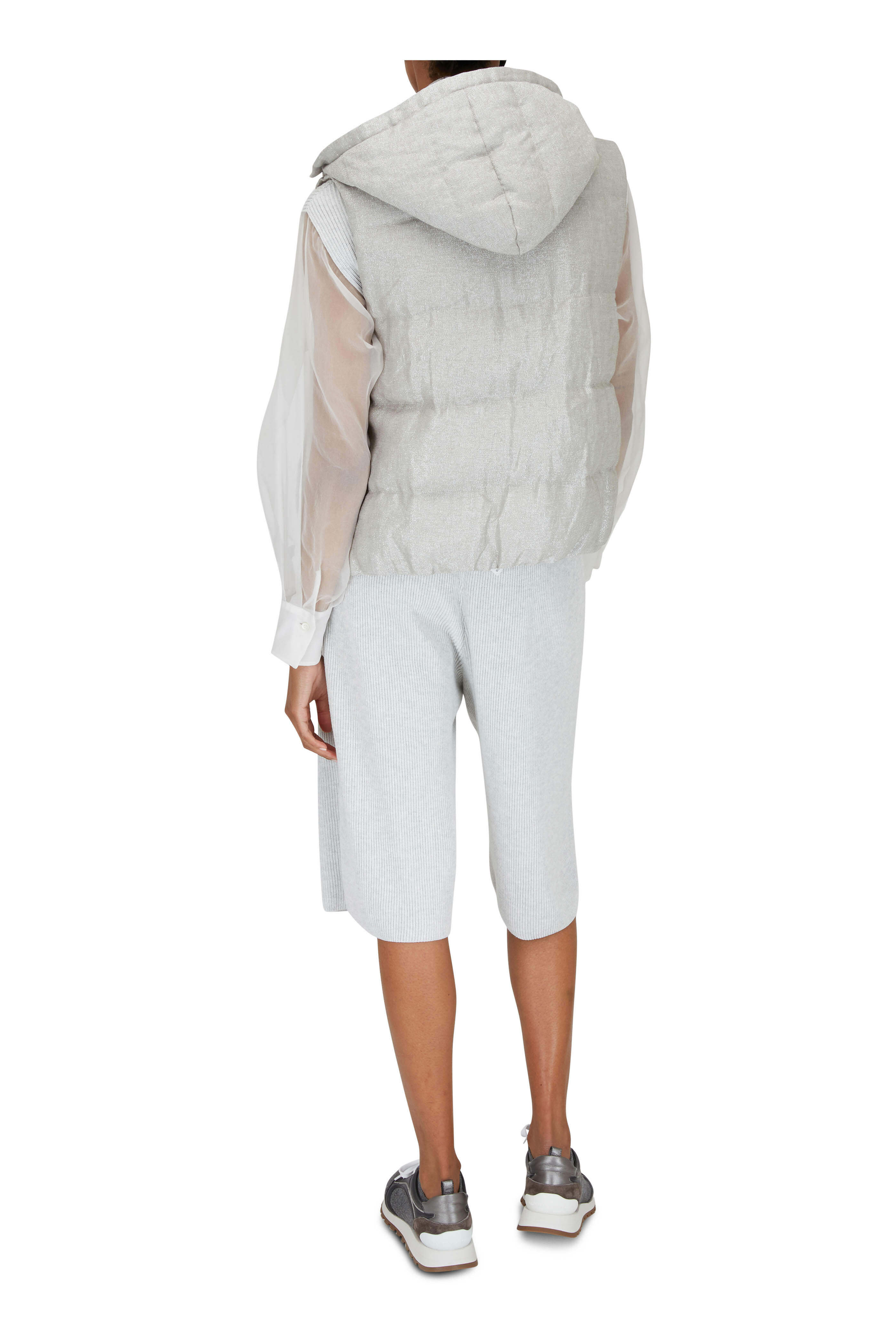 Silver Lurex Hooded Down Vest