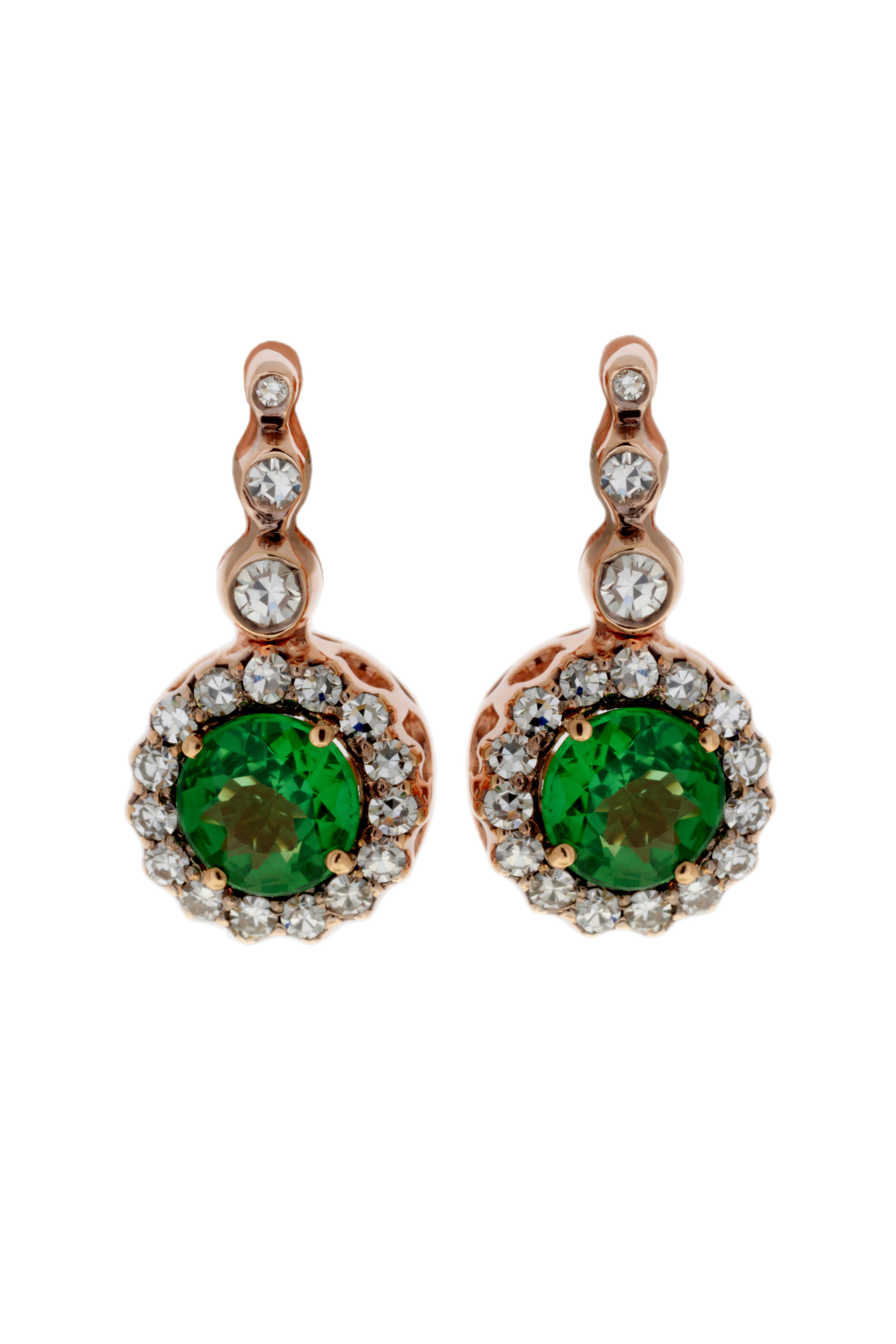 18K Rose Gold Diamond & Tsavorite Center Earrings