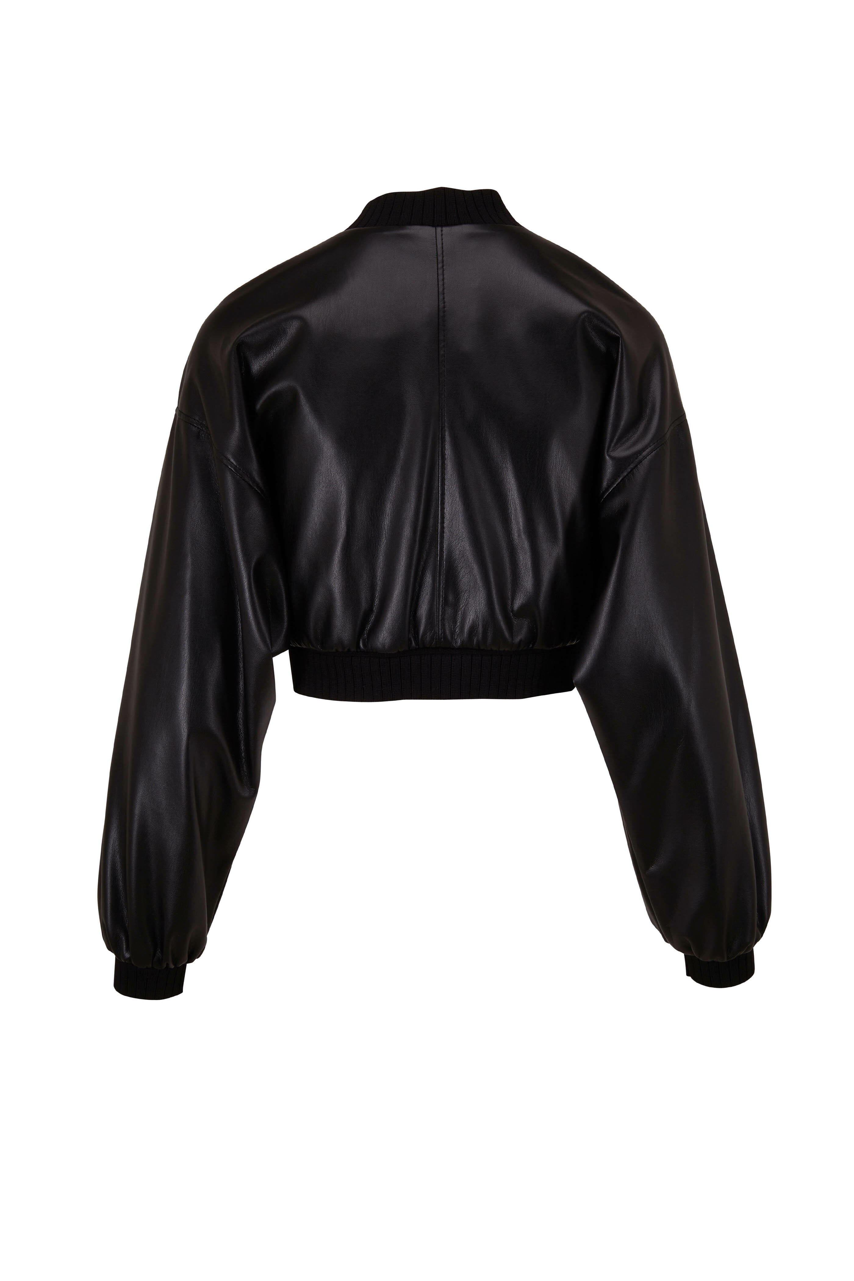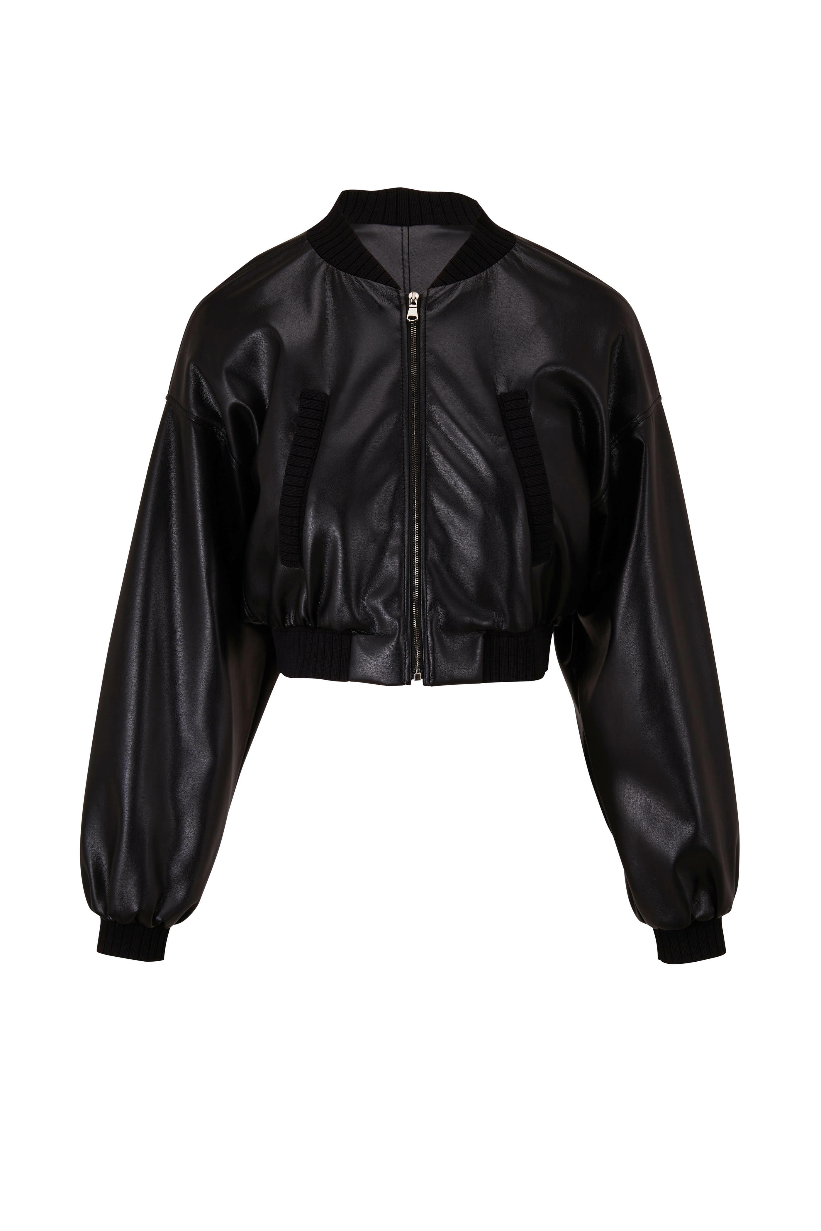 Baseball collar. Front two-way zip. Drop shoulders. Lower slip pockets. Knit ribbed trim. Imported. 65% polyester, 35% polyurethane. Dry clean.