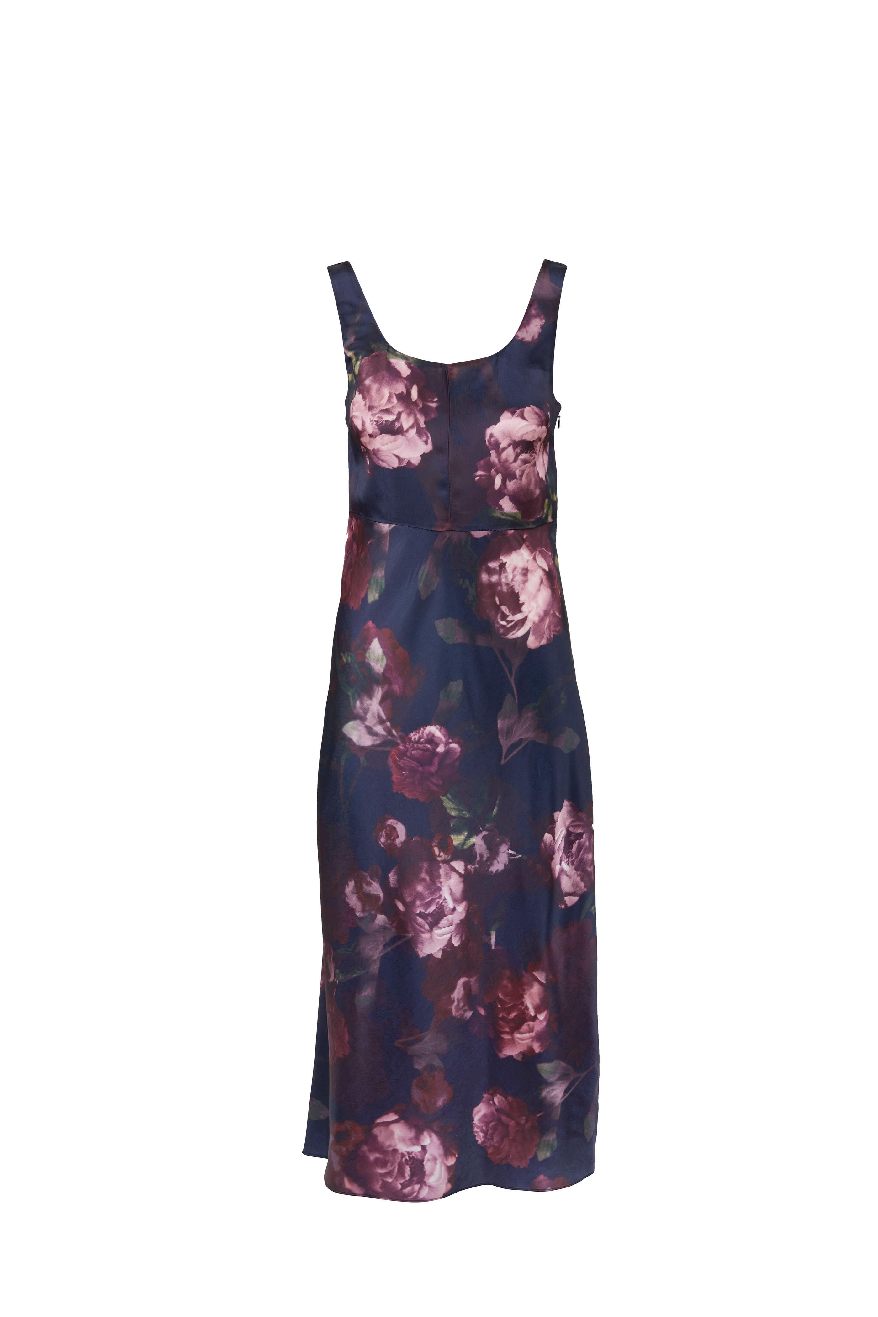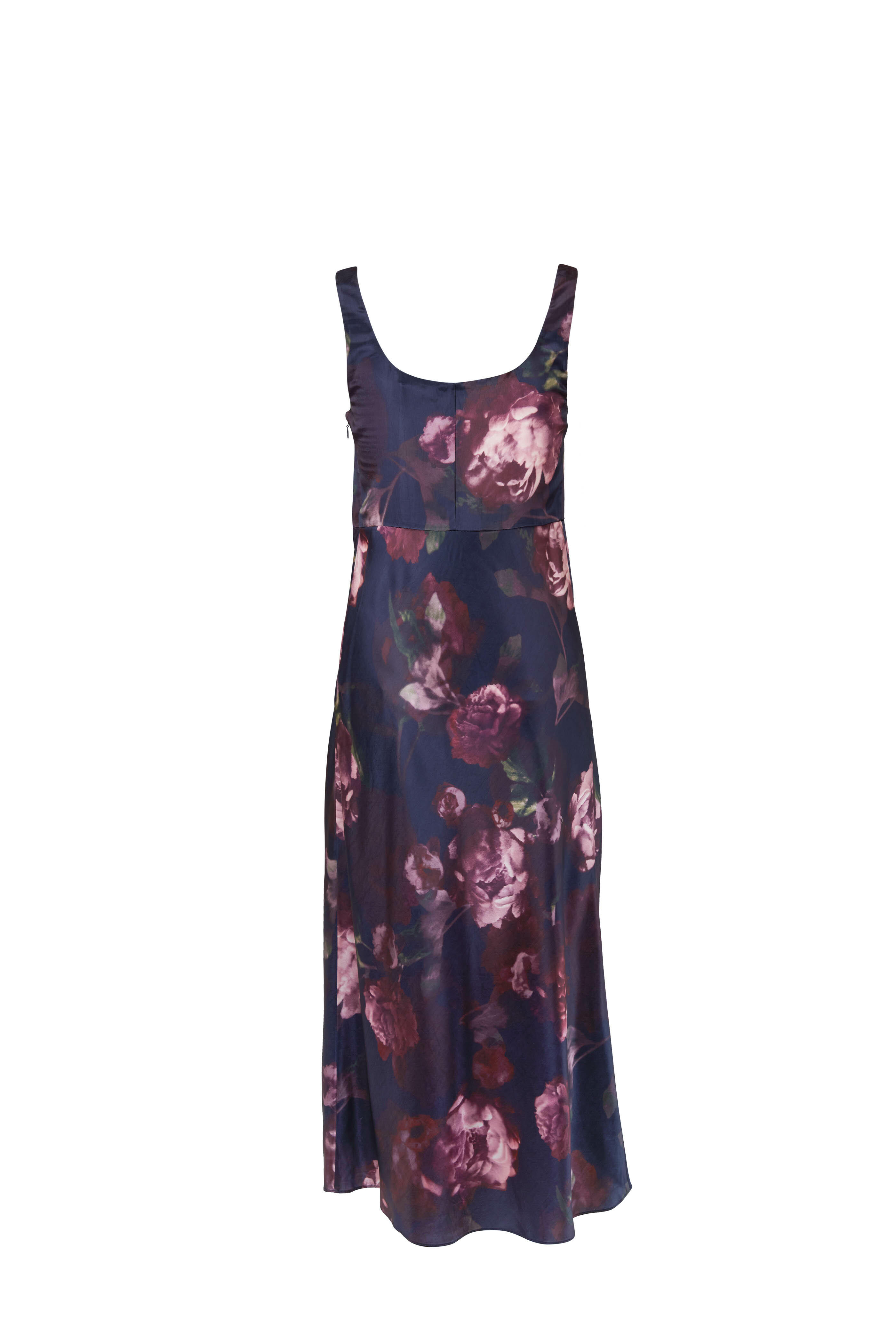 Square neckline. Slip over style. Imported. Mid-calf length. 100% acetate. Hand wash.