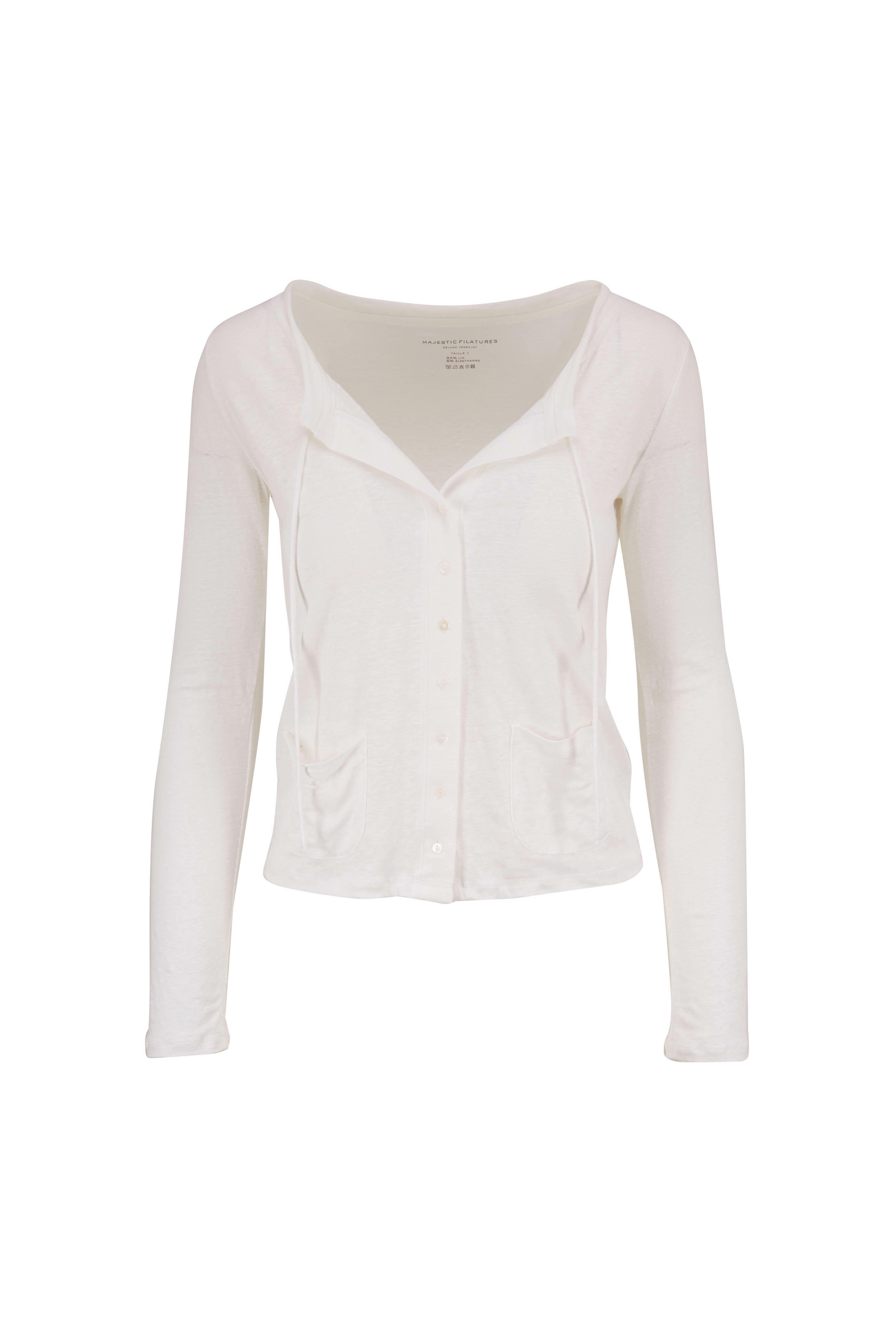 V-neckline. Button placket. Drawstring at neckline. Lower patch pockets. Made in Portugal. 94% linen, 6% elastane. Hand wash.