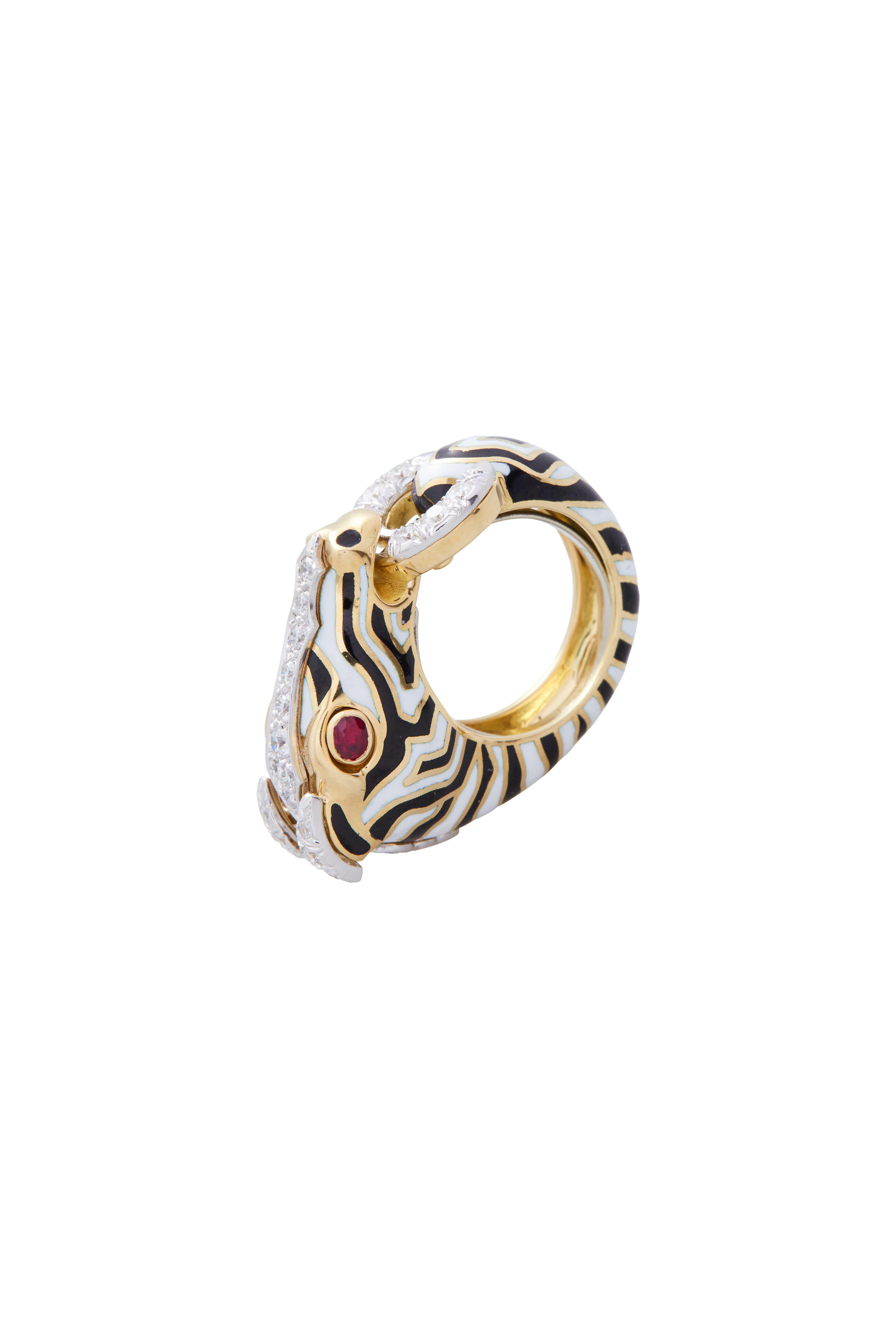 • David Webb - 18K Yellow Gold Diamond & Ruby Zebra Ring