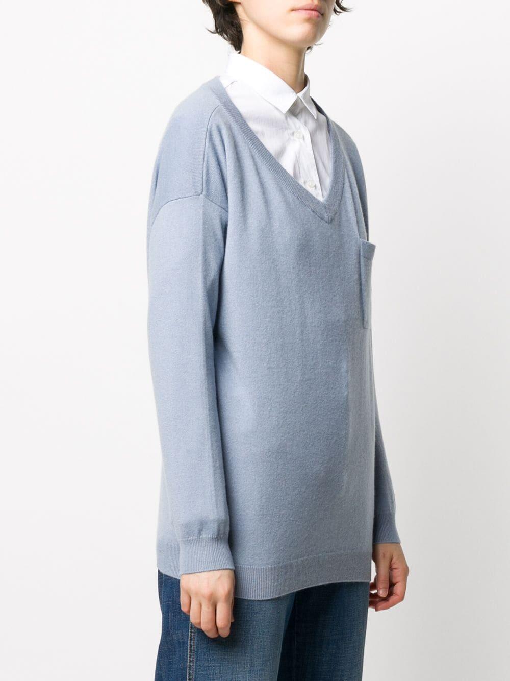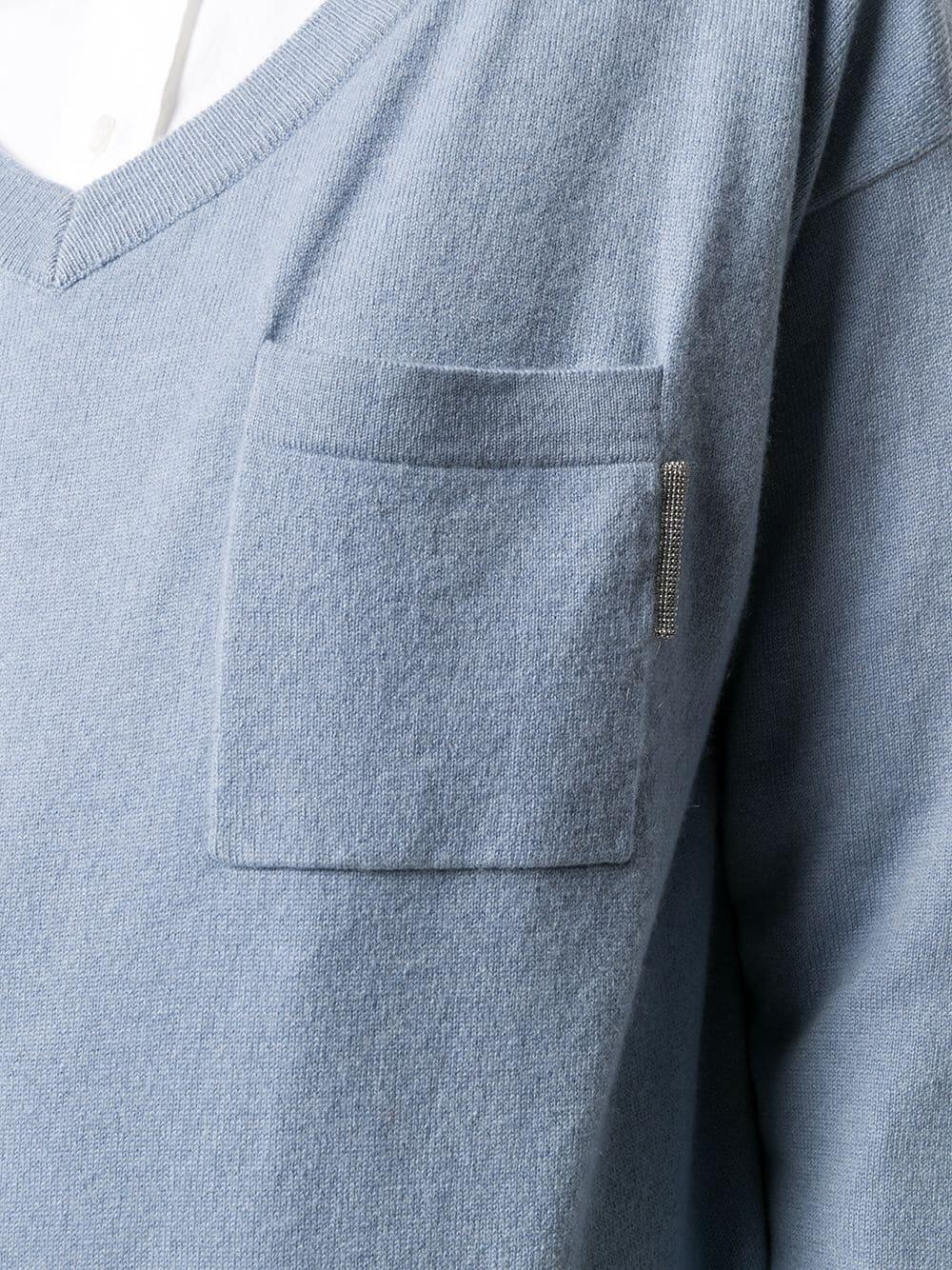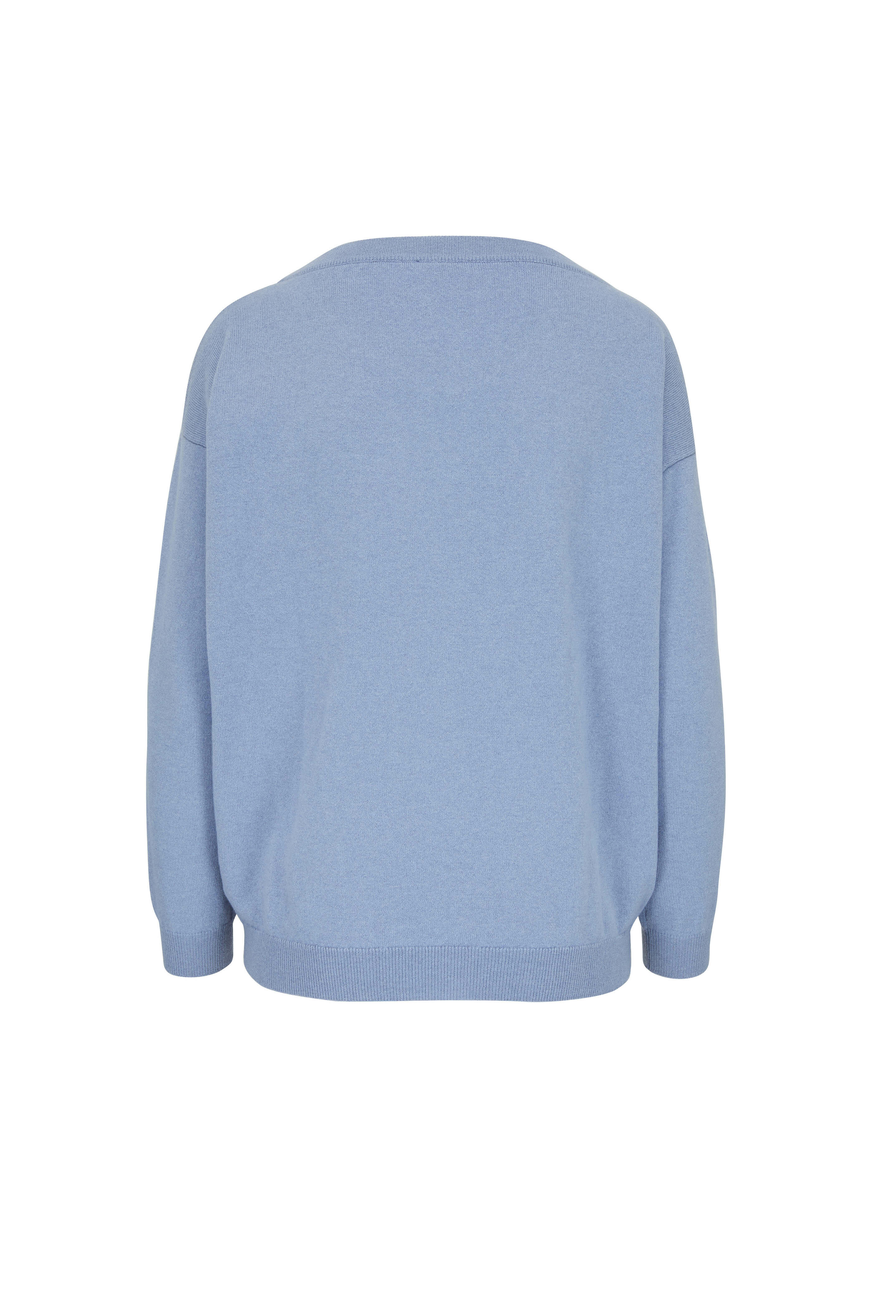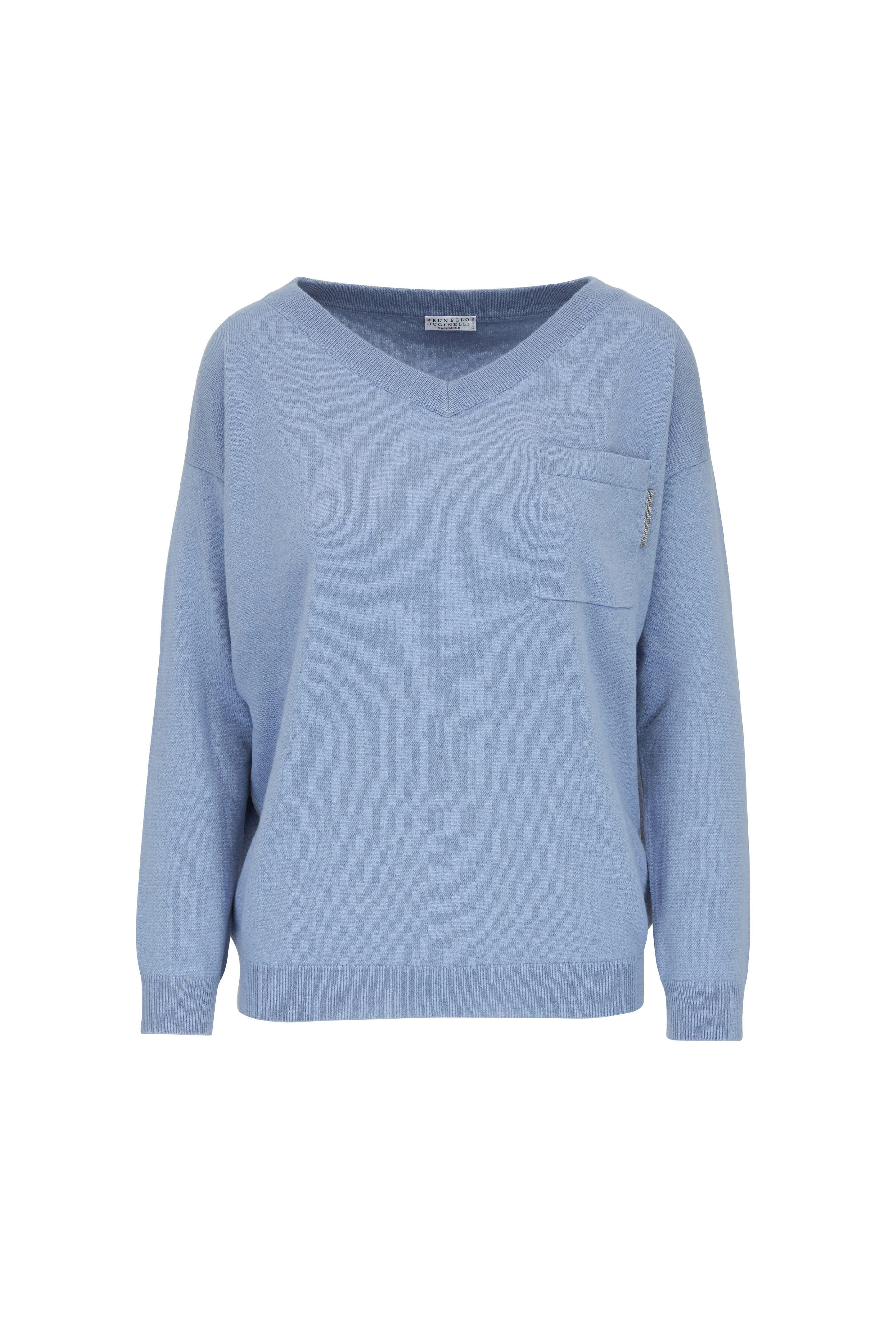Celadon Cashmere Patch Pocket V-Neck Sweater