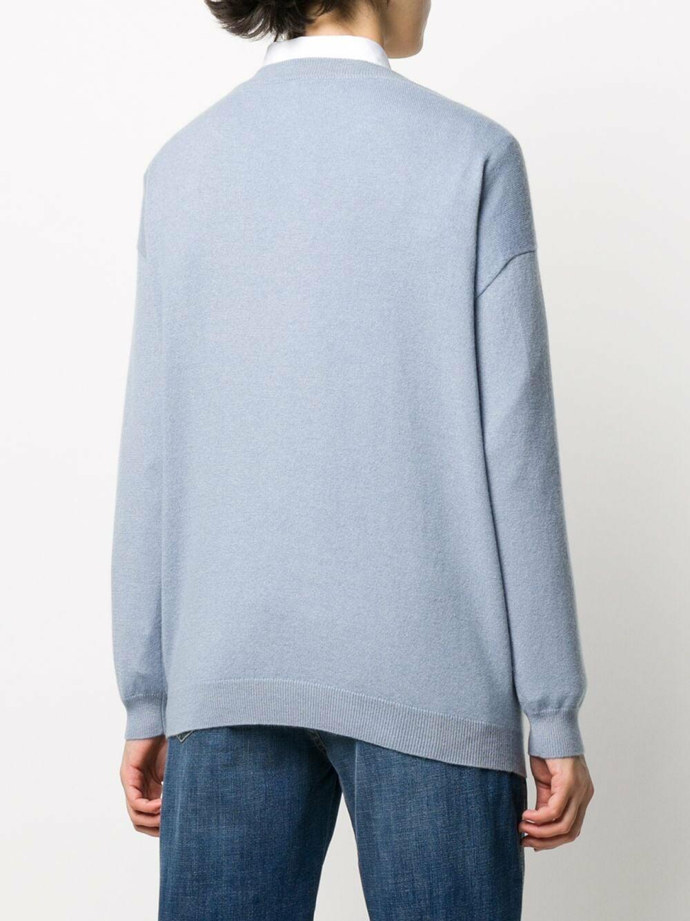 V-neckline. Patch pocket with monili detail. Ribbed trim. Made in Italy. 100% cashmere. Dry clean.