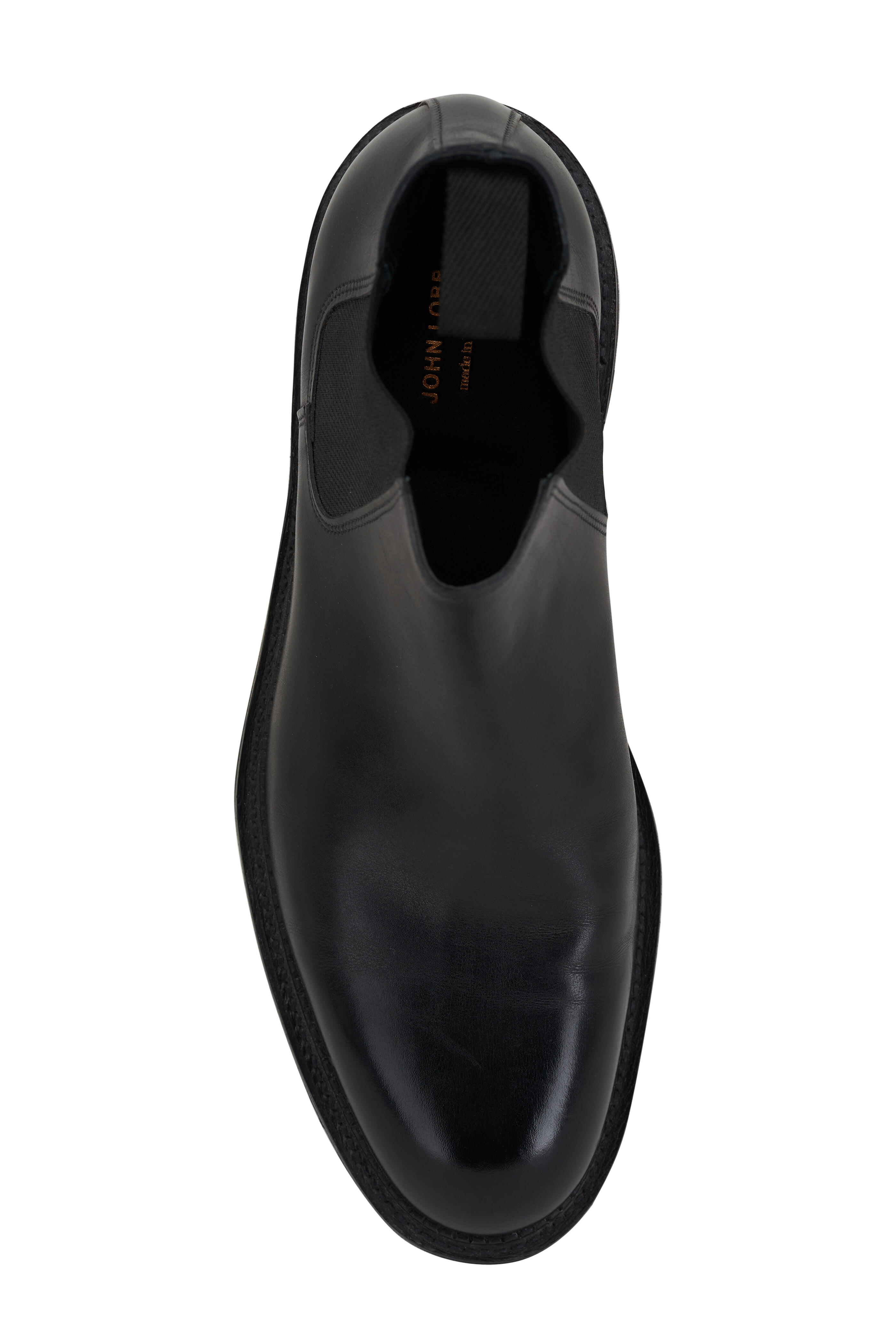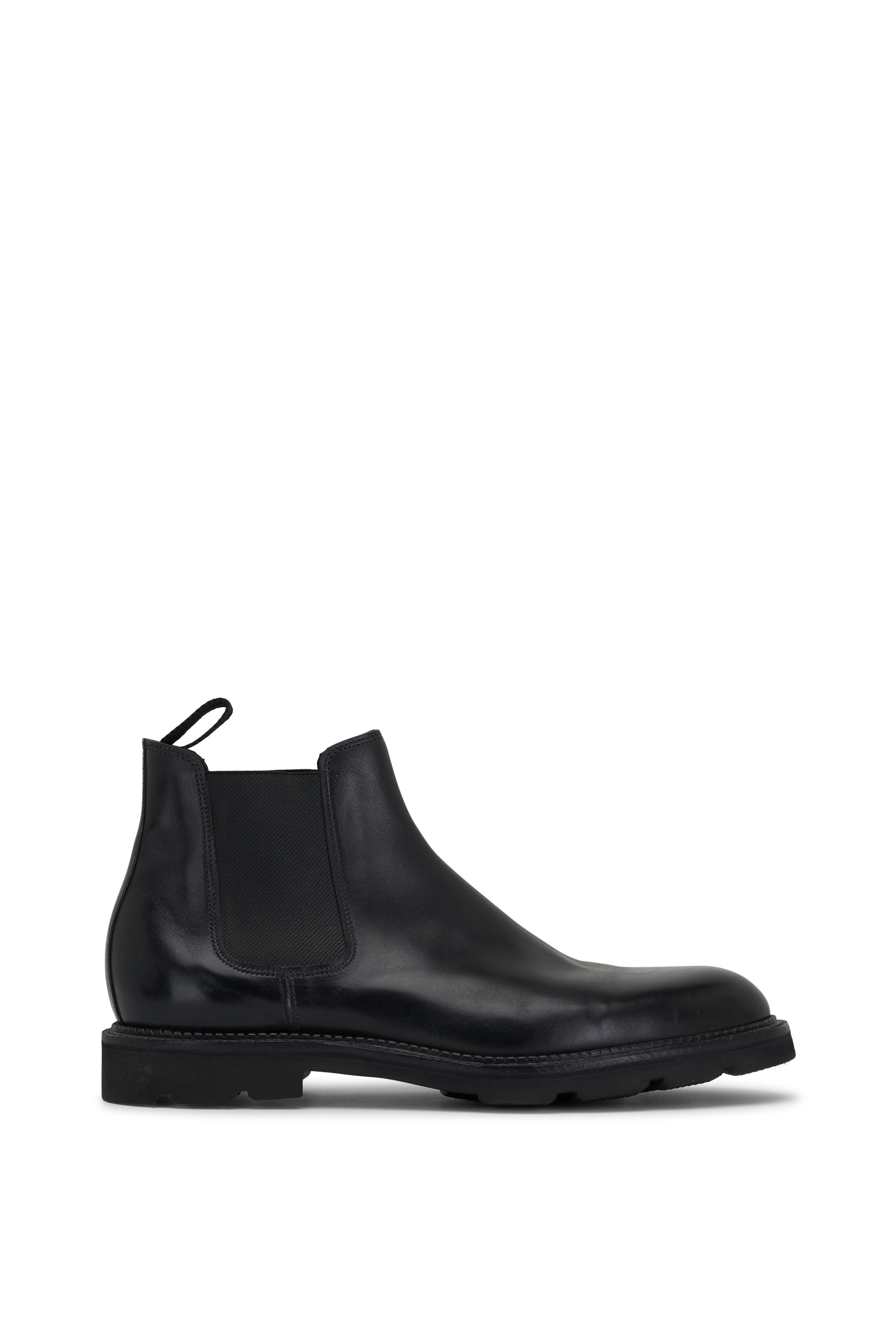 Leather upper. Round toe. Slip-on style. Back pull tab. Leather lining and insole. Rubber tread sole. Made in Italy.