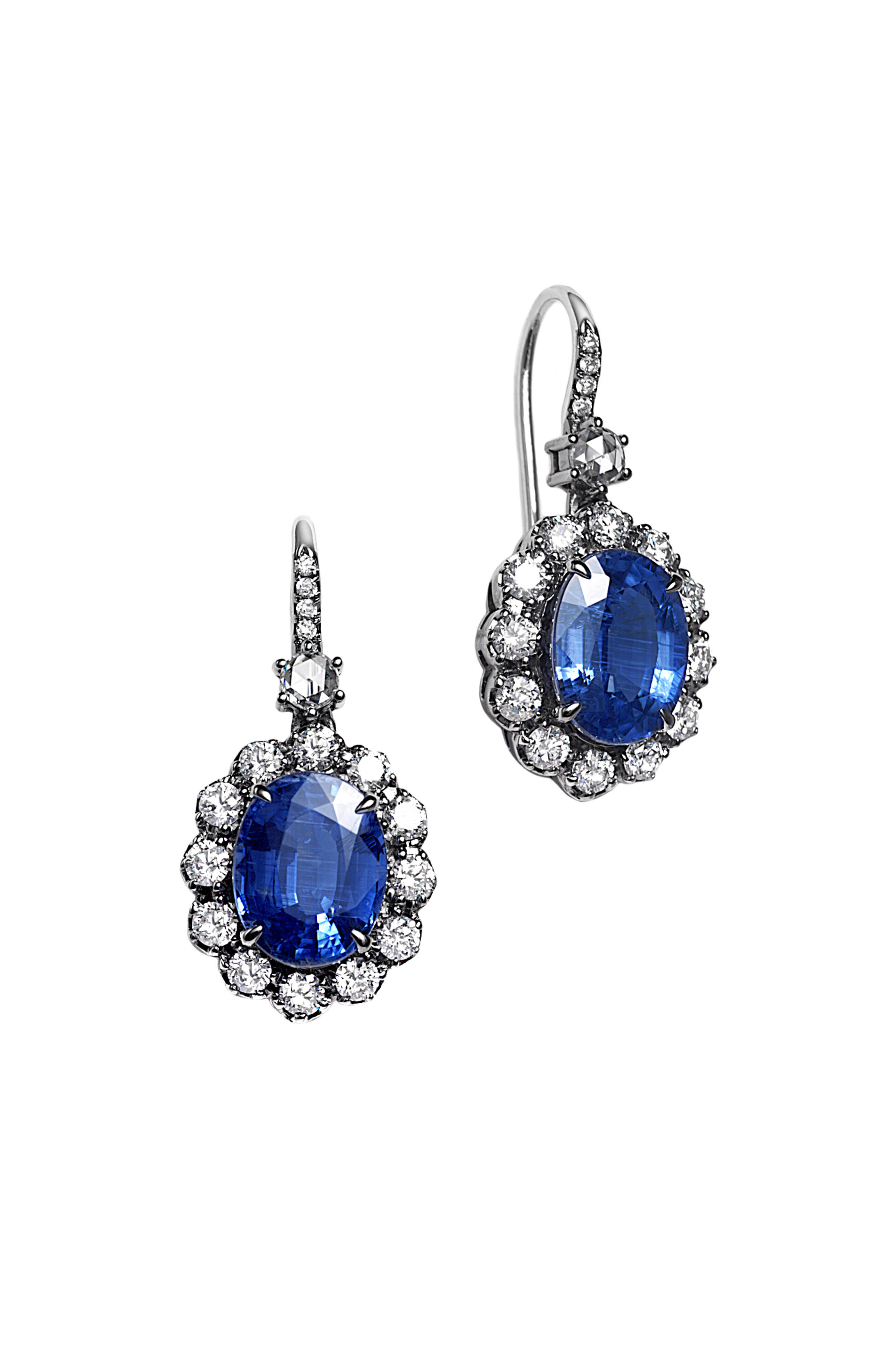 18K White Gold Vintage Kyanite Oval Drop Earrings