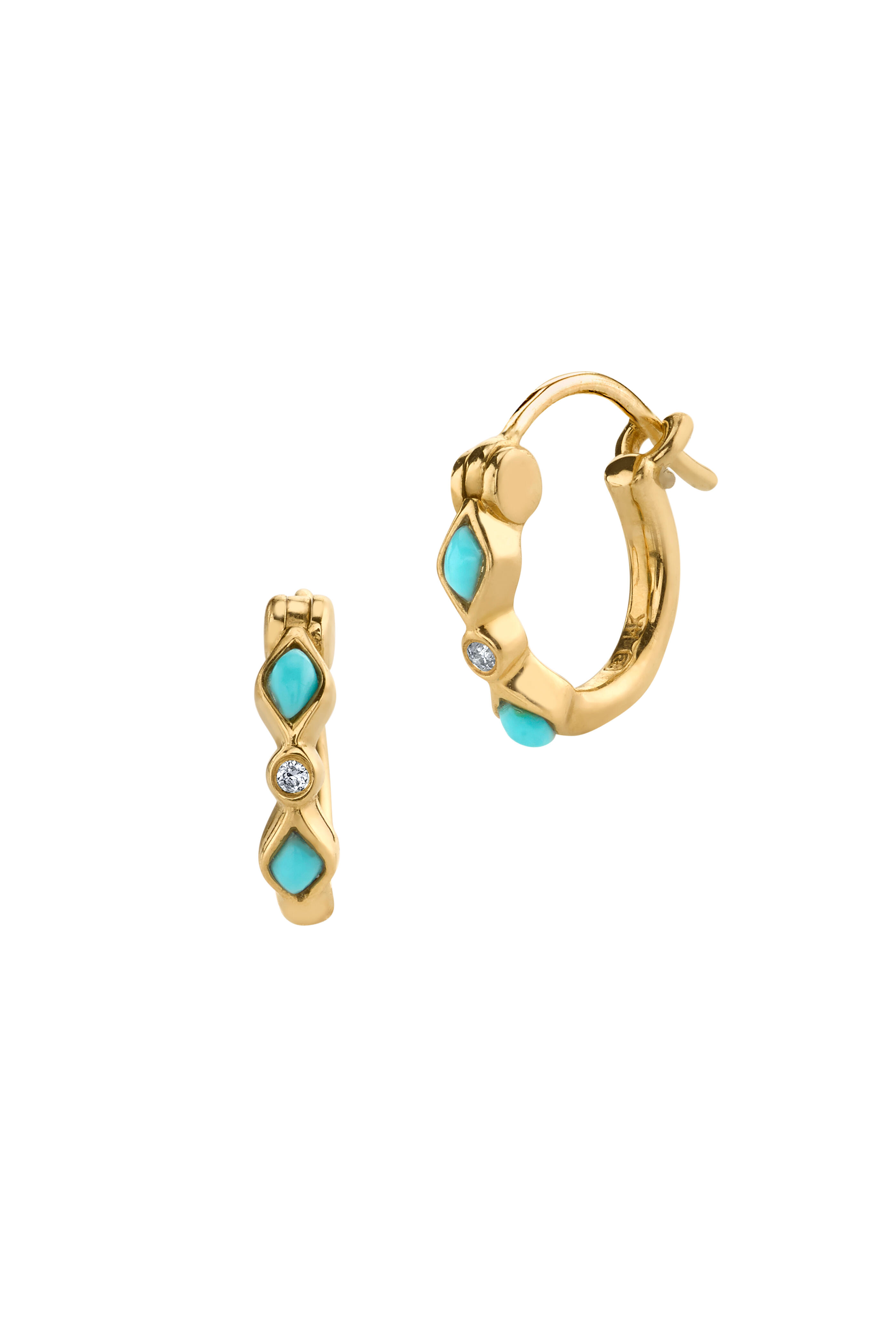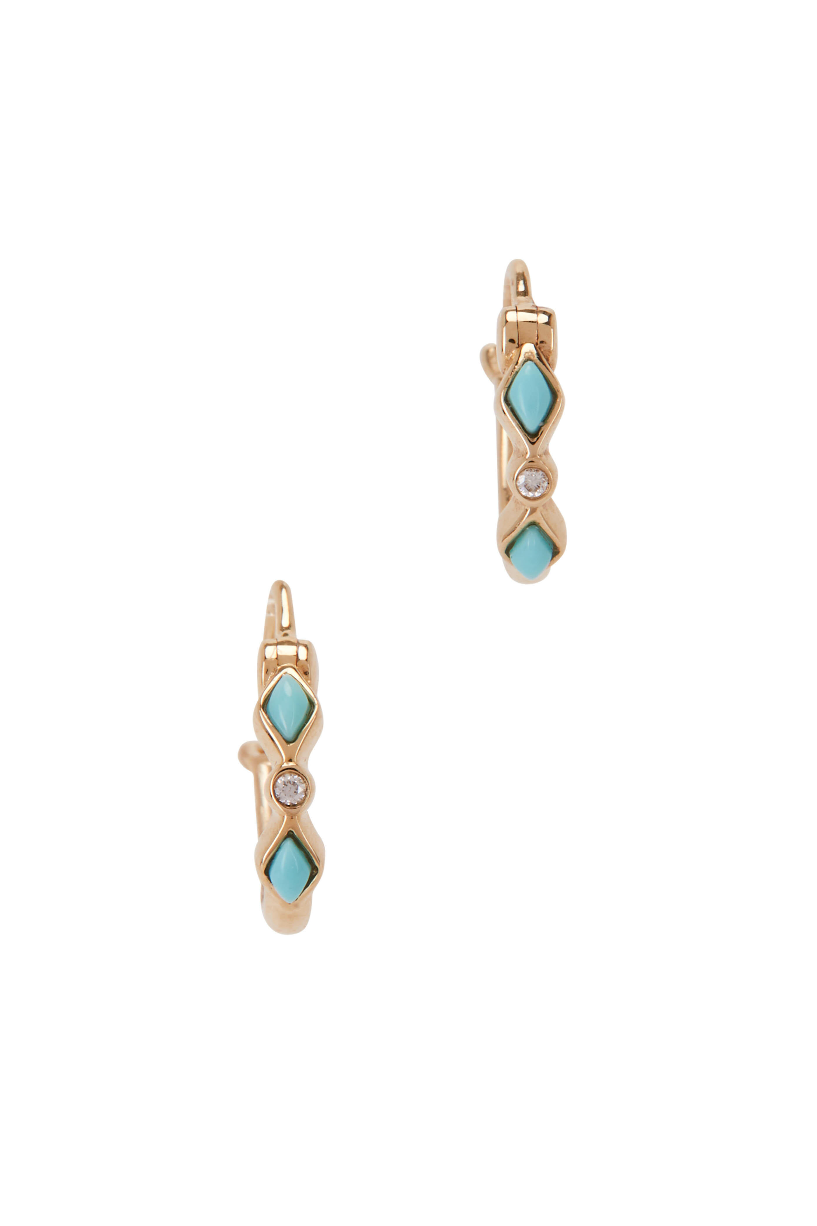 18K Yellow Gold Turquoise & Diamond Bezel Huggies