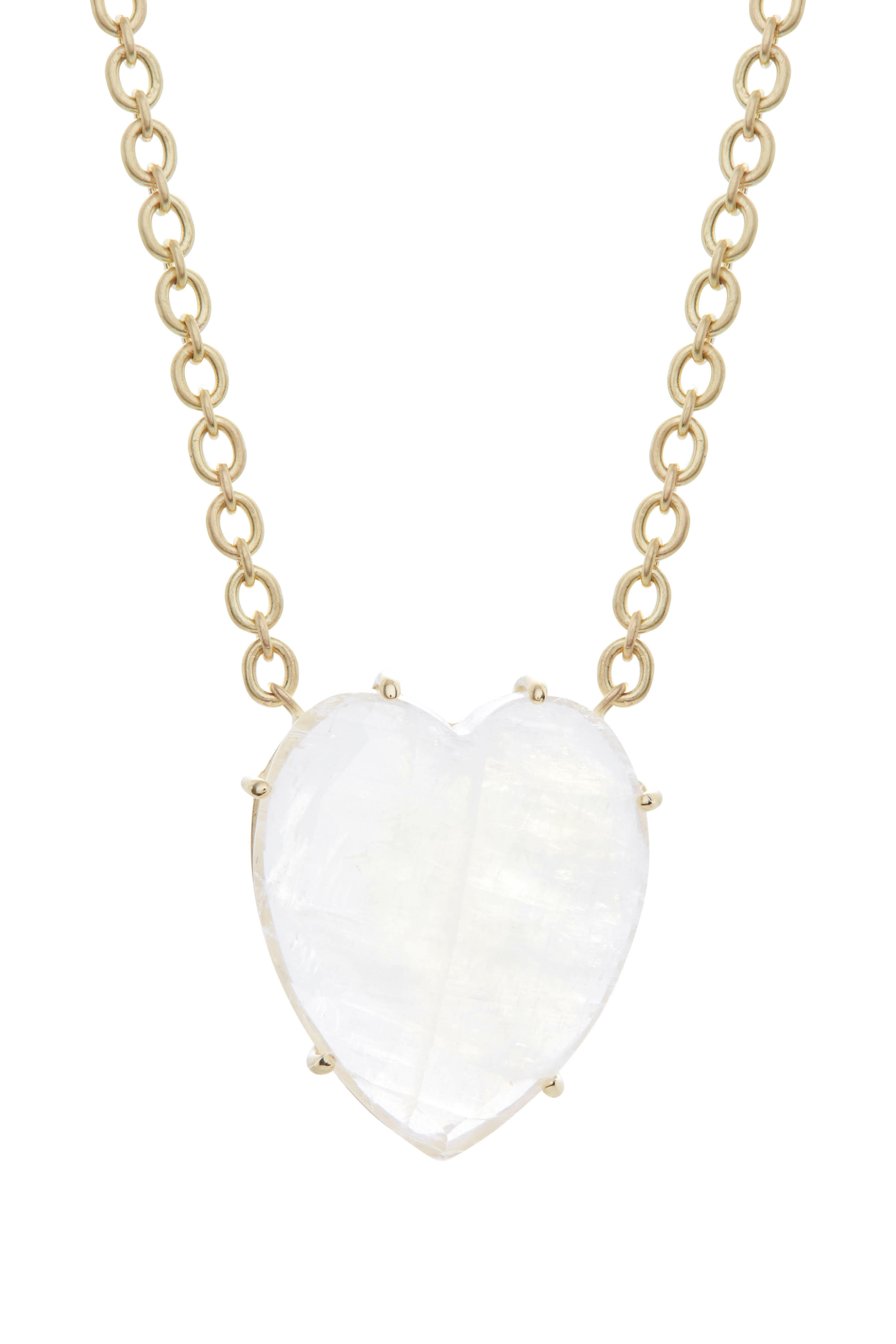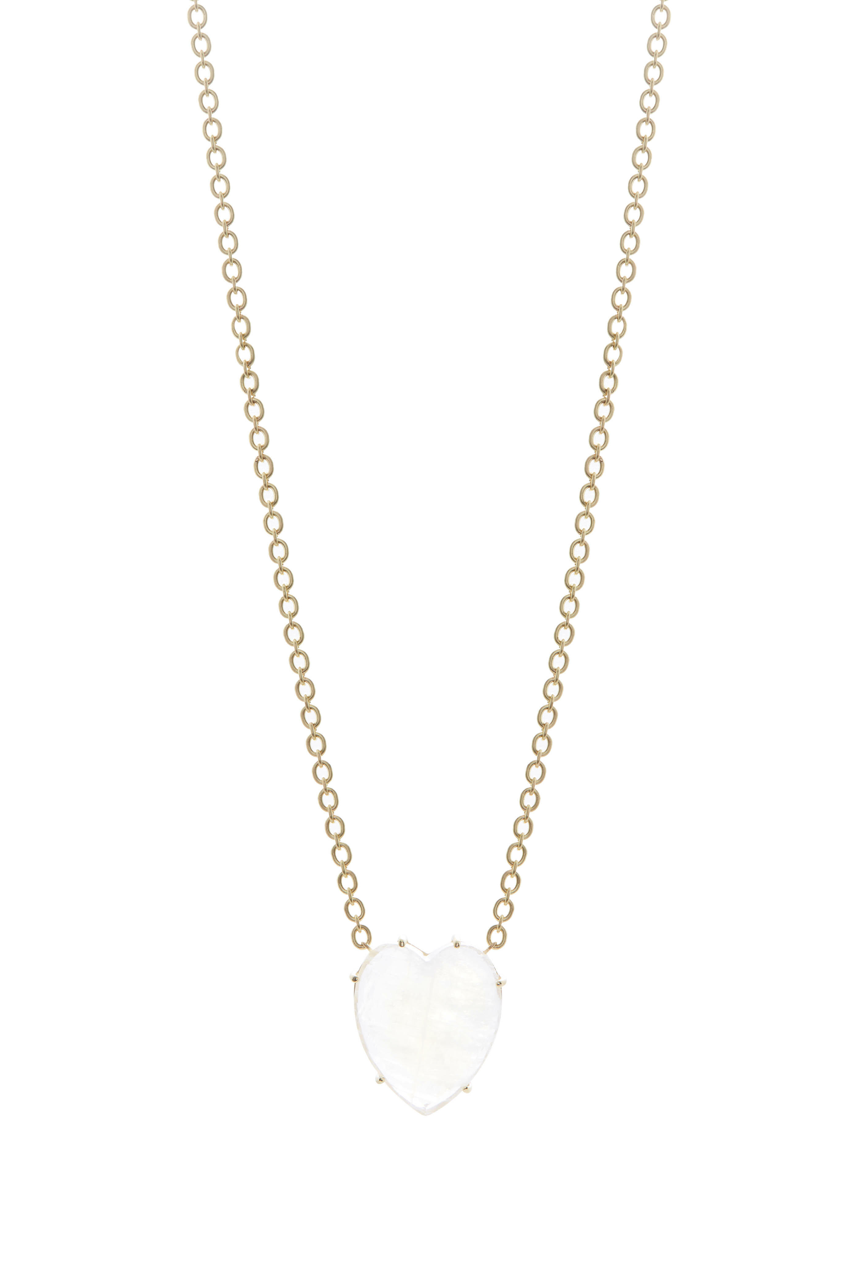 Yellow Gold Rainbow Moonstone Mini Heart Necklace