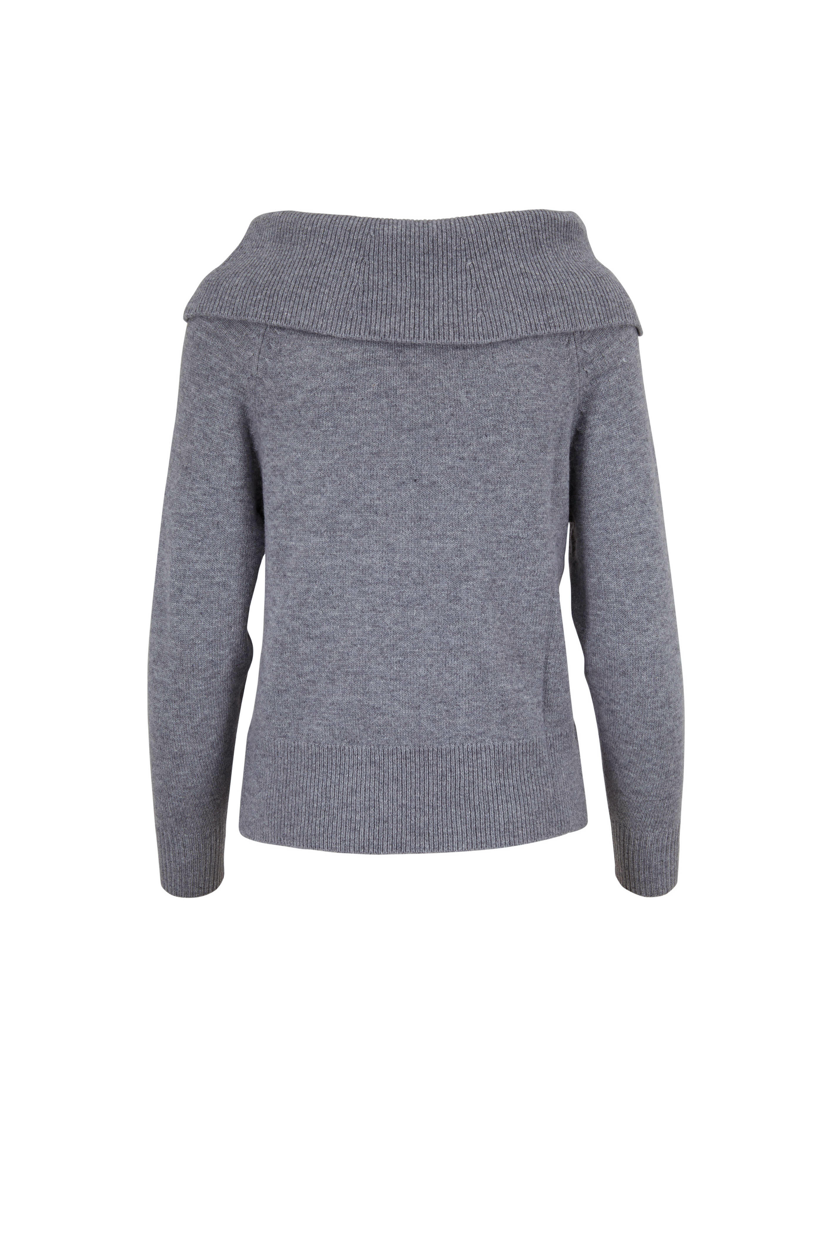 Off-the-shoulder styling. Ribbed trim. Imported. 70% wool, 30% nylon. Hand wash.